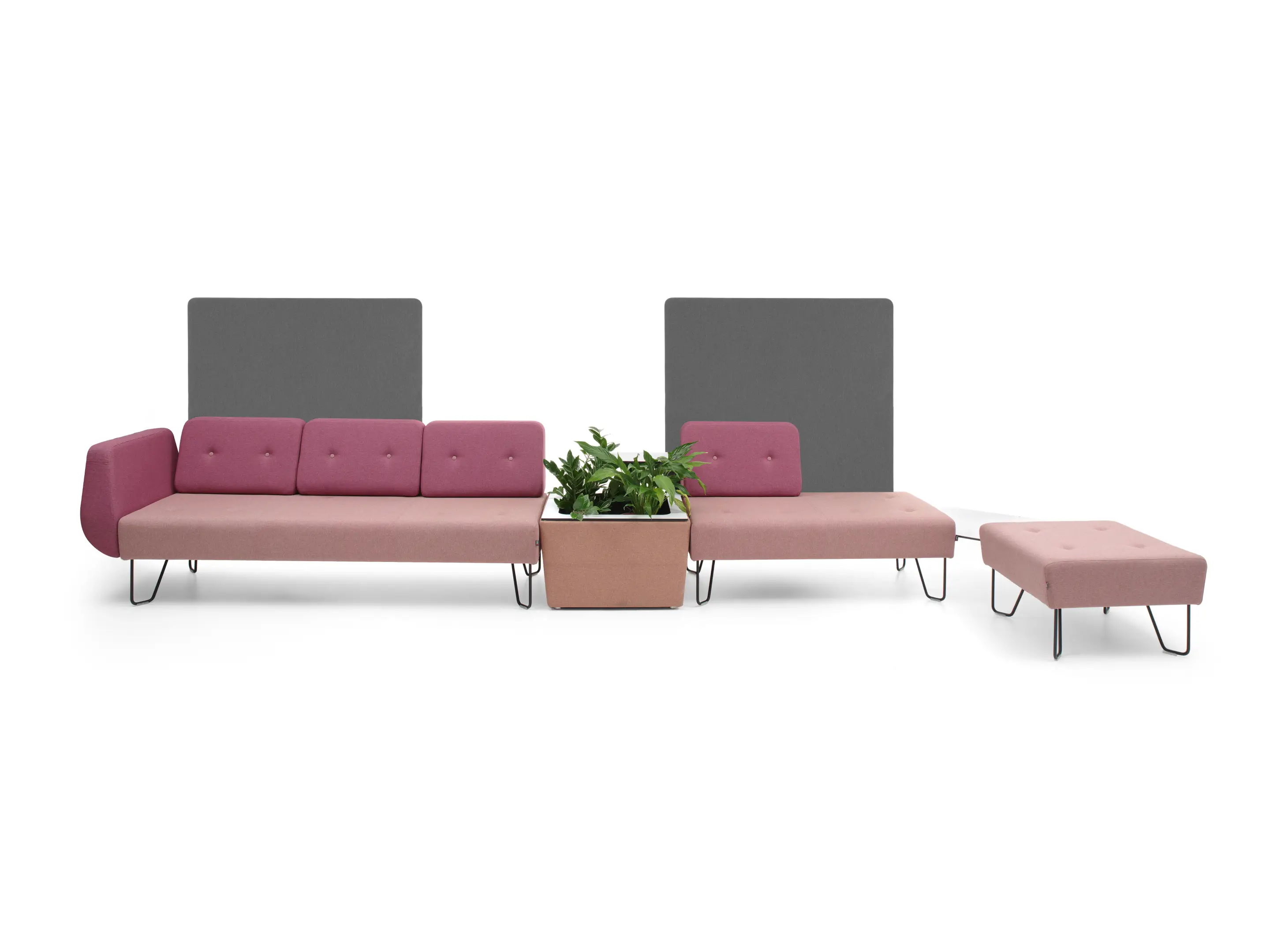 Volledig gestoffeerde 1820mm 3-zits modulair element met 4-poots frame, excl. armleuningen, inclusief rugleuning op 2 zitplaatsen