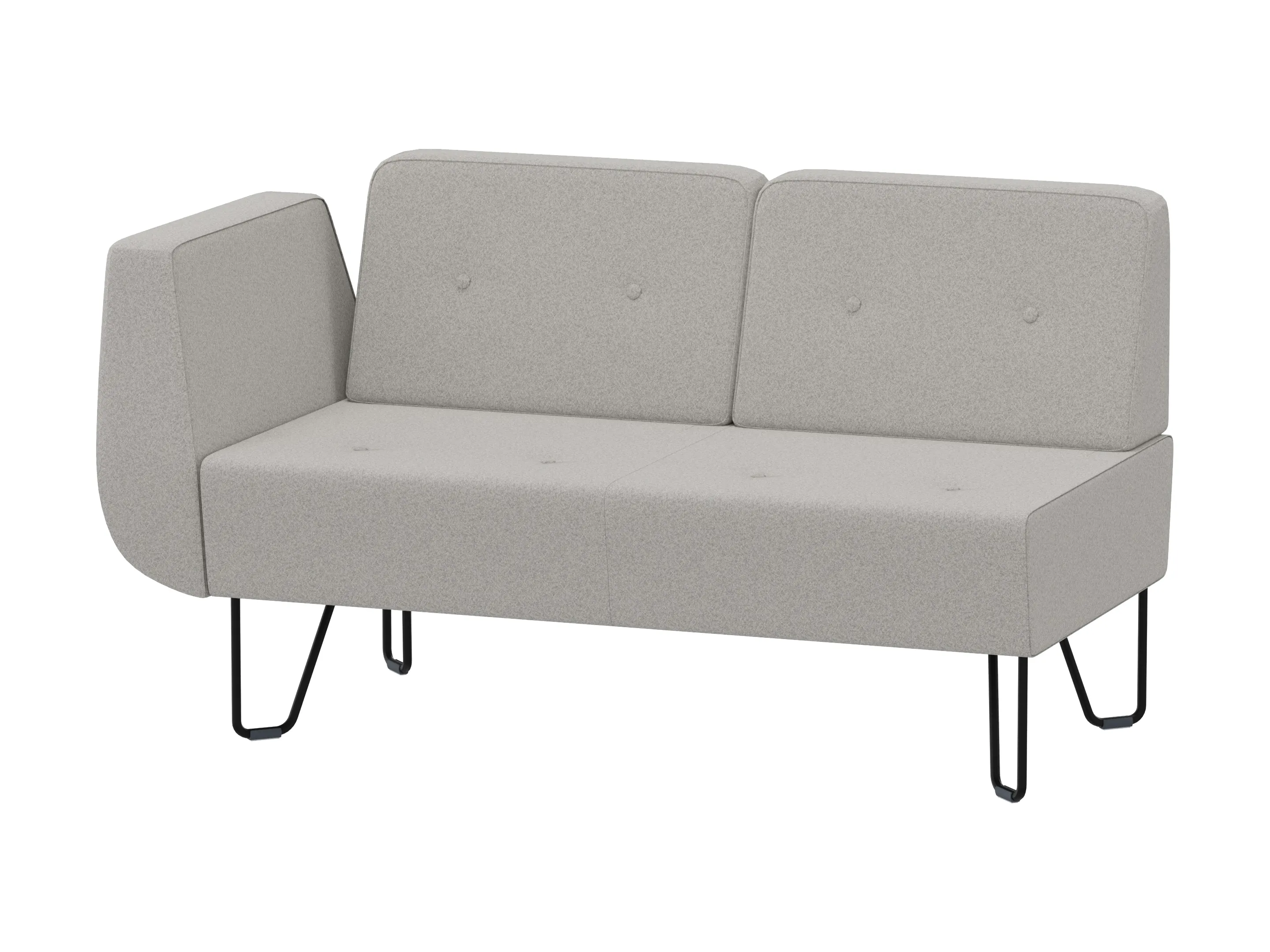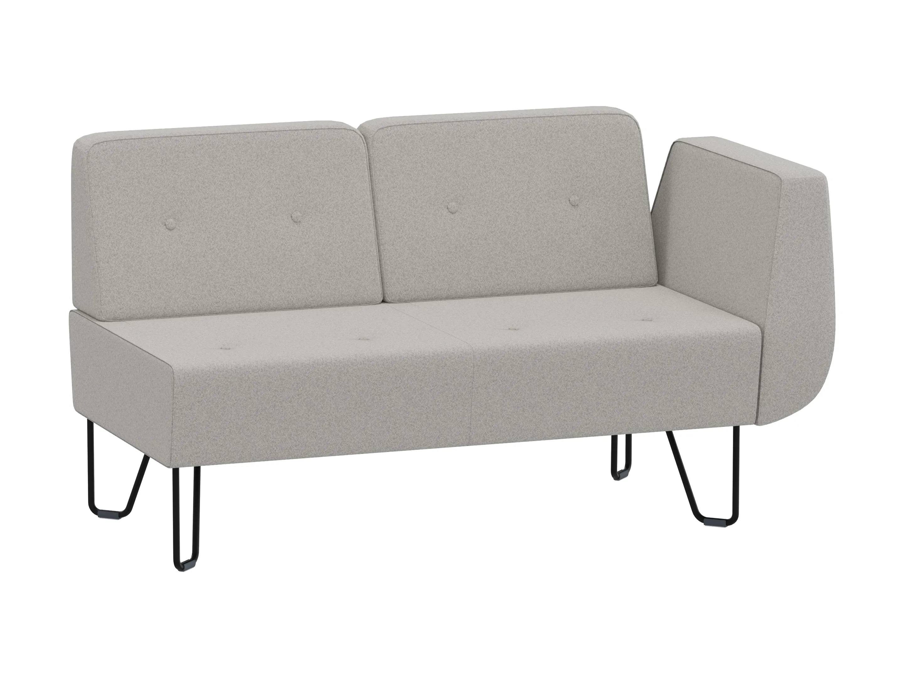 Volledig gestoffeerde 1388mm 2-zits modulair eindelement, voor het sluiten van opstelingen, met 4-poots frame, inclusief armleuning links, excl. rugleuning