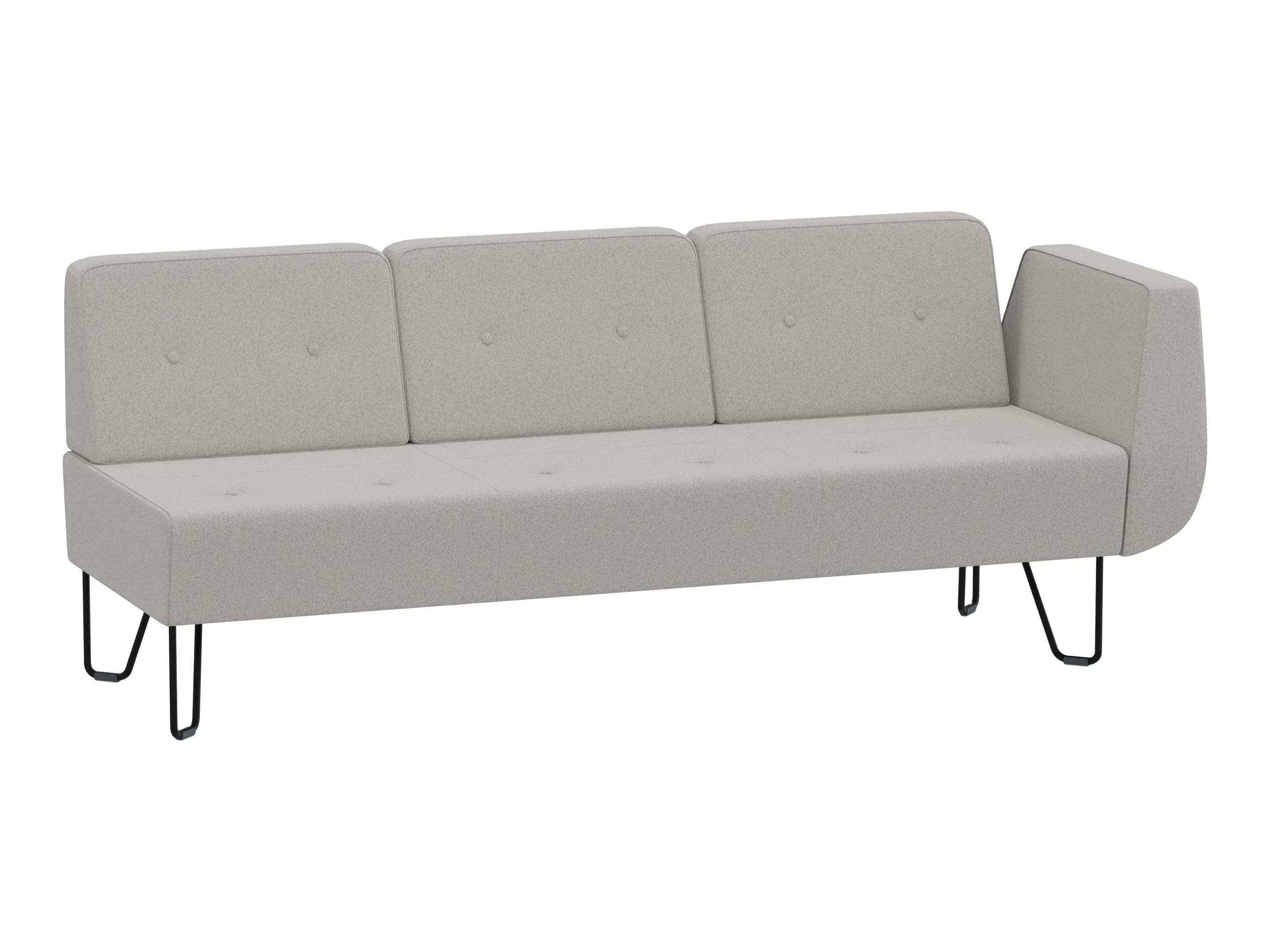 Volledig gestoffeerde 1990mm 3-zits modulair eindelement, voor het sluiten van opstelingen, met 4-poots frame, inclusief armleuning rechts, excl. rugleuning