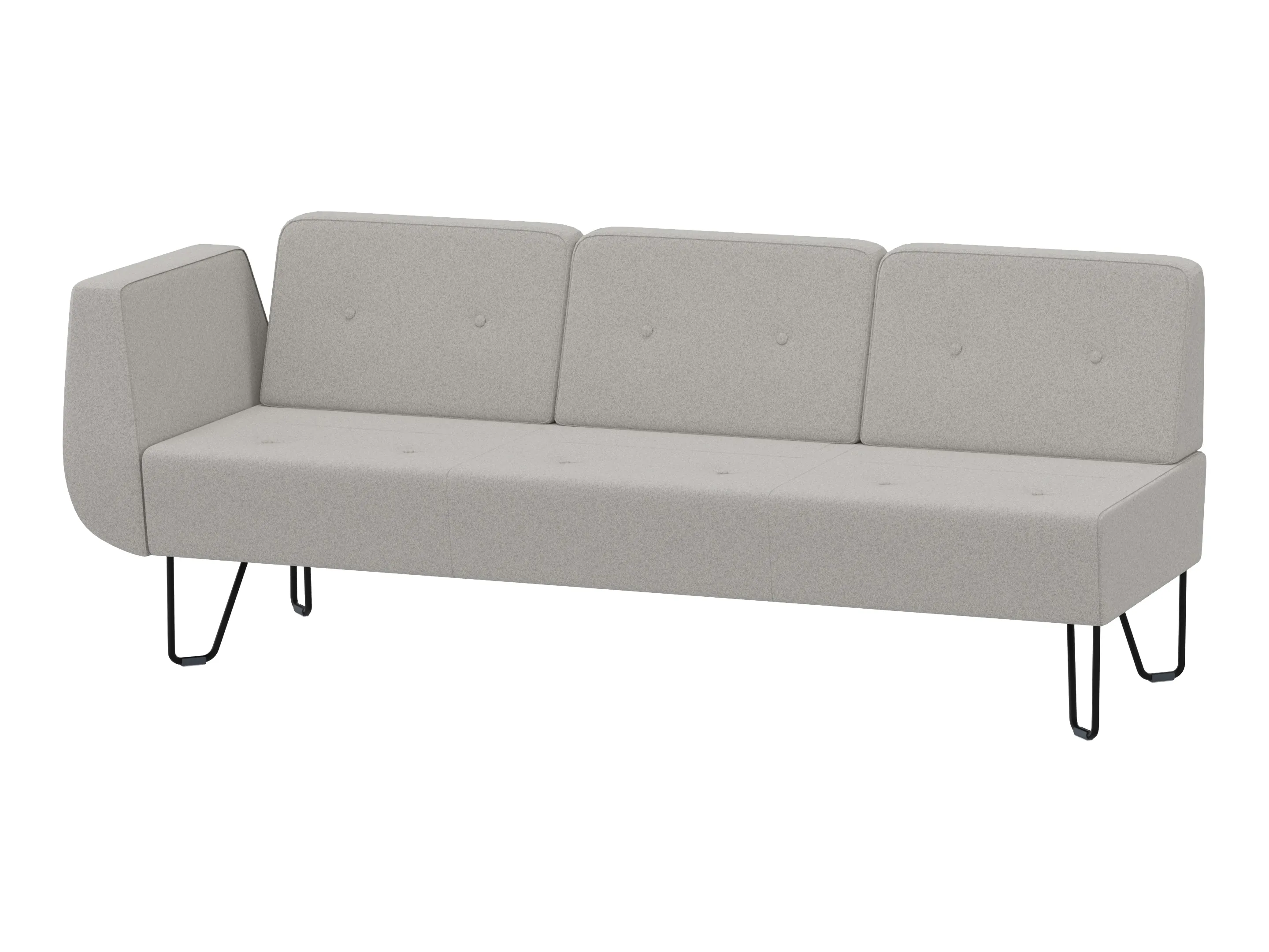 Volledig gestoffeerde 1990mm 3-zits modulair eindelement, voor het sluiten van opstelingen, met 4-poots frame, inclusief armleuning links, excl. rugleuning