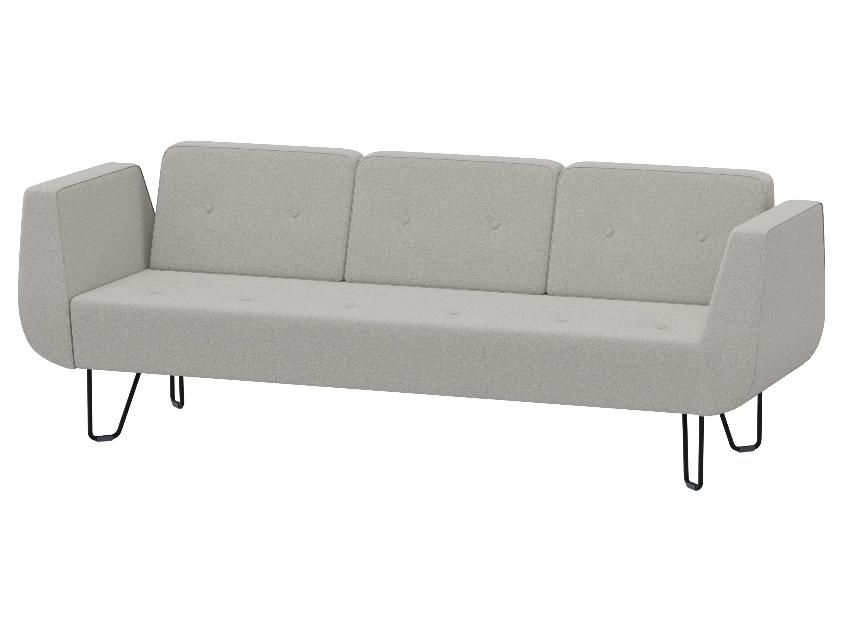 Volledig gestoffeerde 1990mm 3-zits modulair eindelement, voor het sluiten van opstelingen, met 4-poots frame, inclusief armleuning links, incl. rugleuning op alle 3 de zitplaatsen