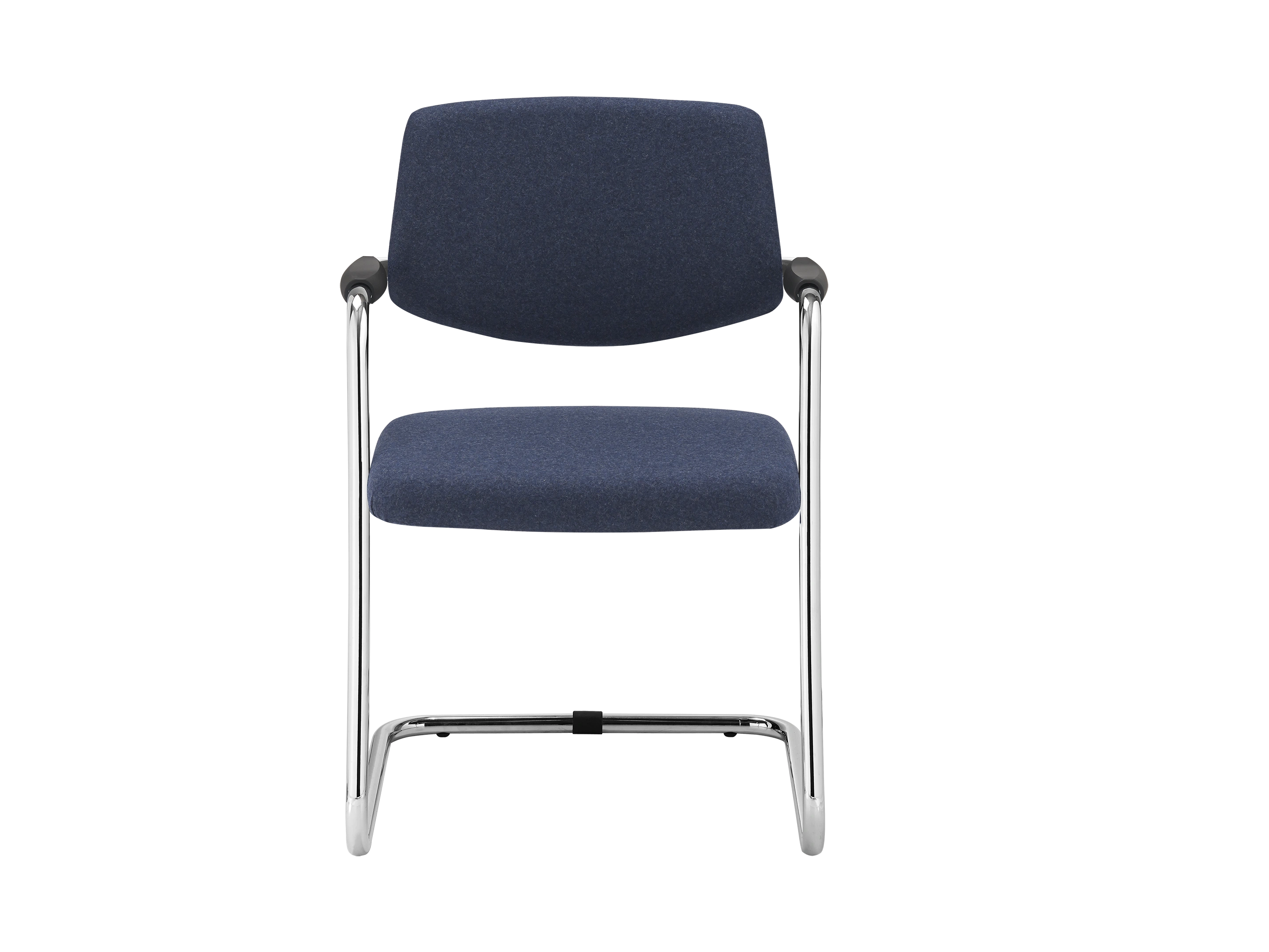 Vergaderstoel Uni met een volledig gestoffeerde zitting en medium rug, op een chrome sledeframe voorzien van armleggers.