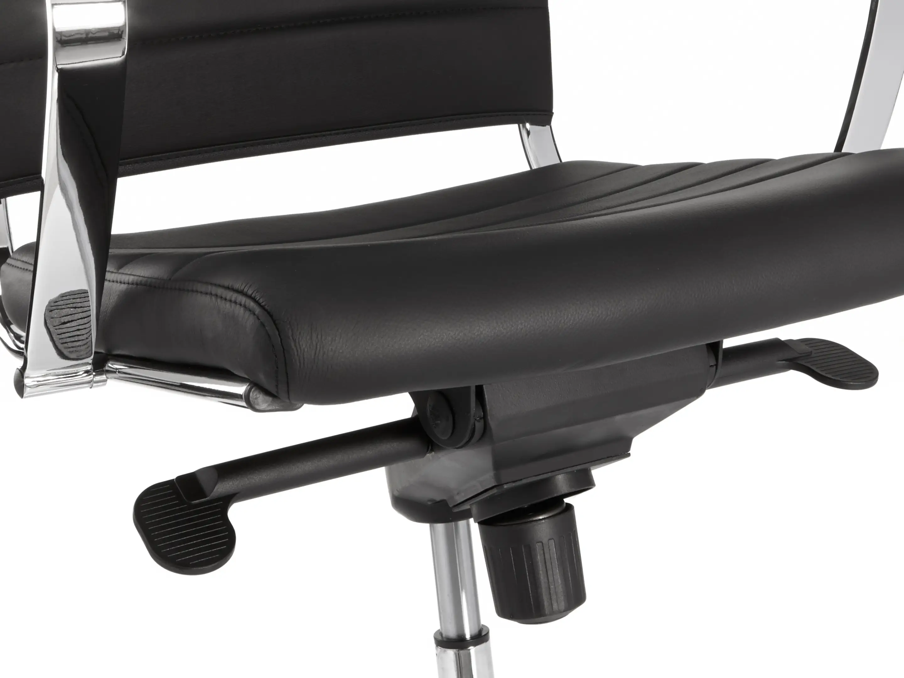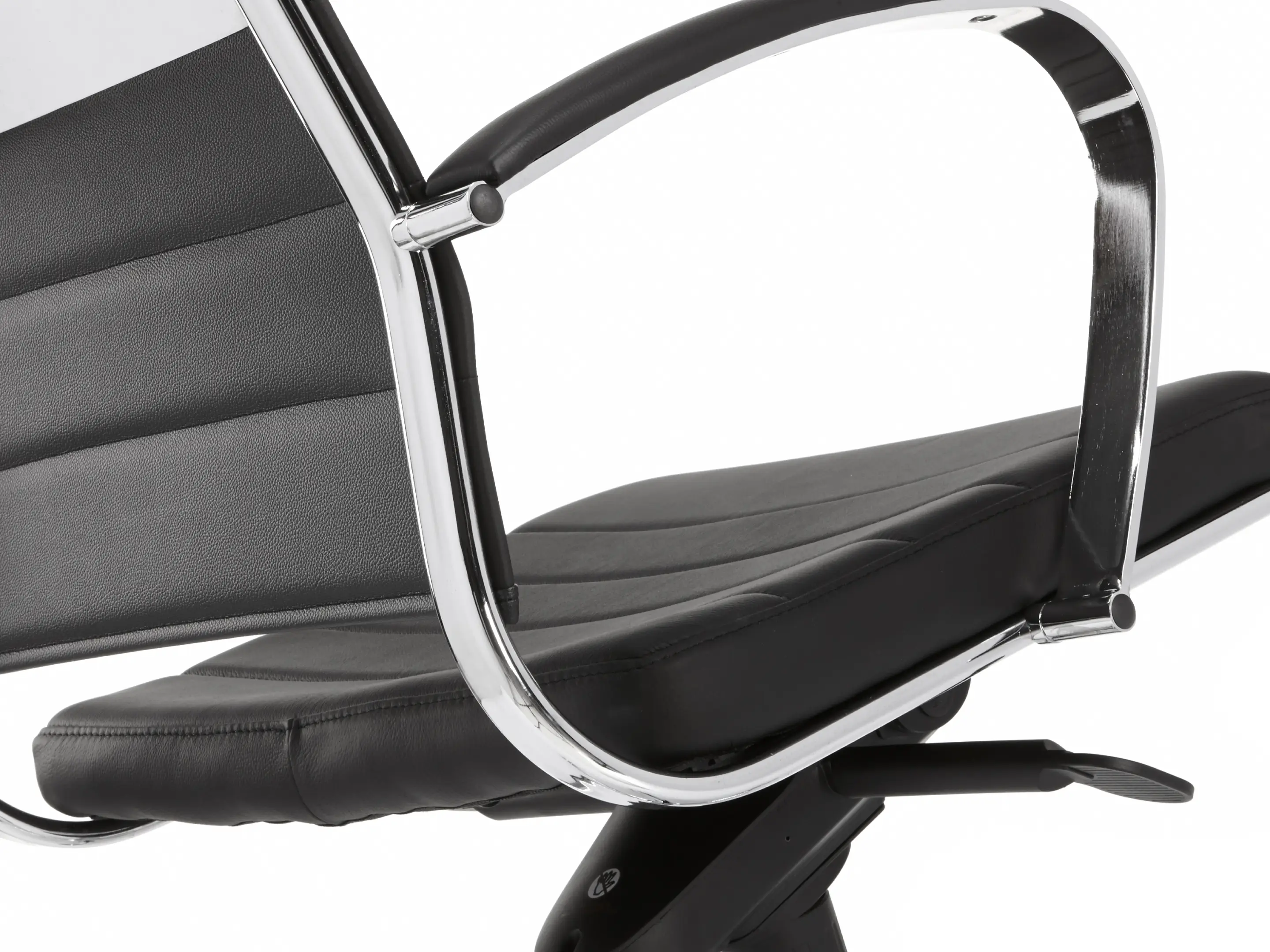 Verrijdbare vergaderstoel met zithoogte verstelling en gewichtsregeling - Met volledig gestoffeerde kuip en armleuningen in kunstleder.