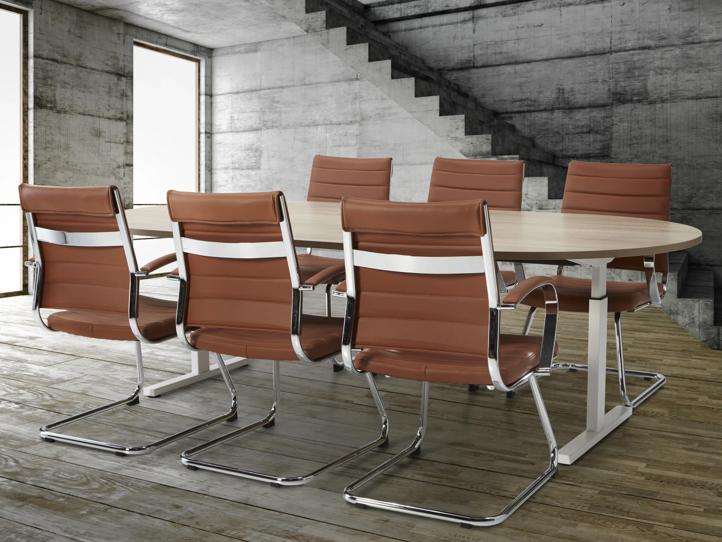 Vergaderstoel met volledig gestoffeerde kuip en armleuningen in kunstleder - Frame voorzien van vloerbeschermers.