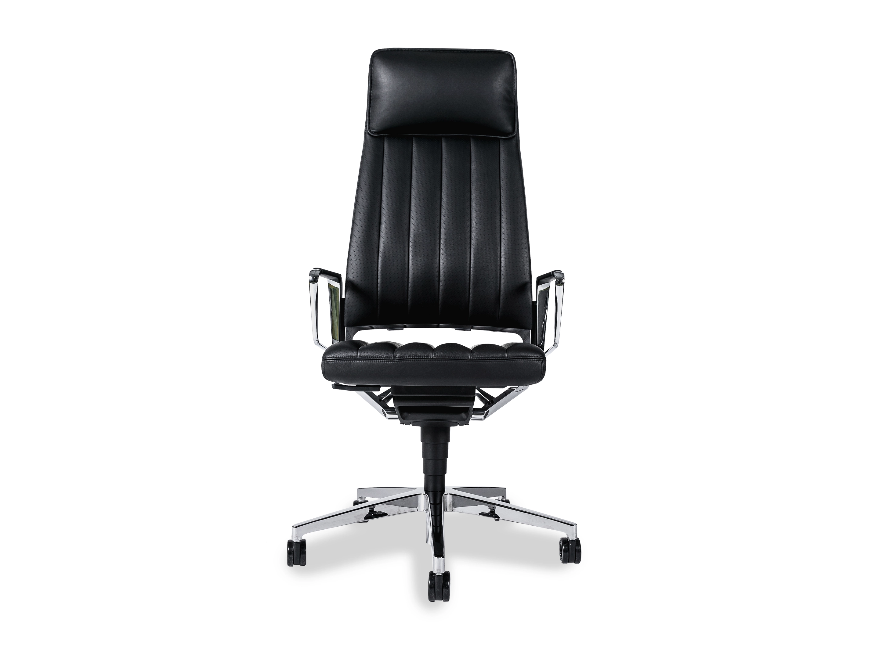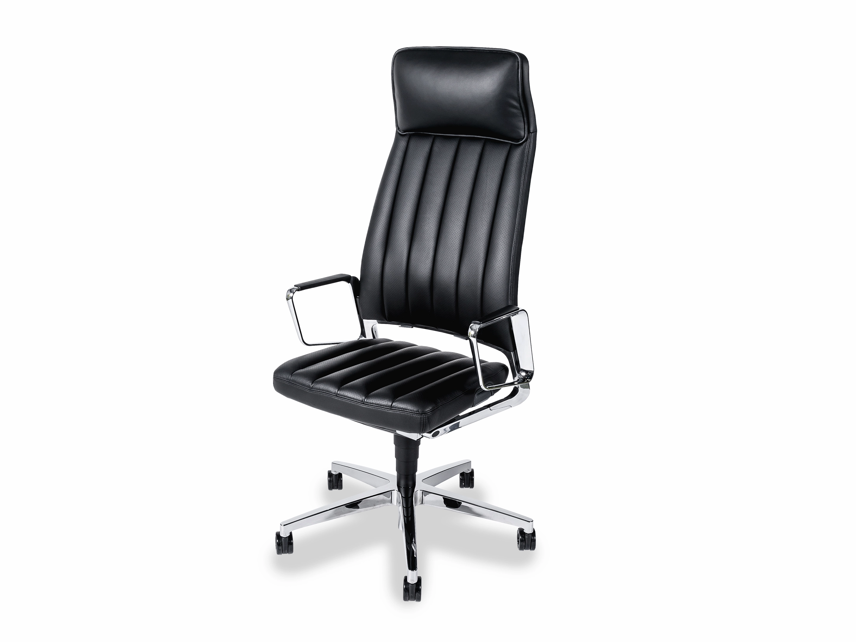 Bureaustoel met hoge rug, zitting en rugleuning met luxe "padding", incl. geintegreerde hoofdsteun. Smart Motion Technology synchroonmechaniek (vergrendelbaar), Gewichtsregeling verstelbaar, Zithoogte- &, Zitneigverstelling en Verstelbare lendensteun .