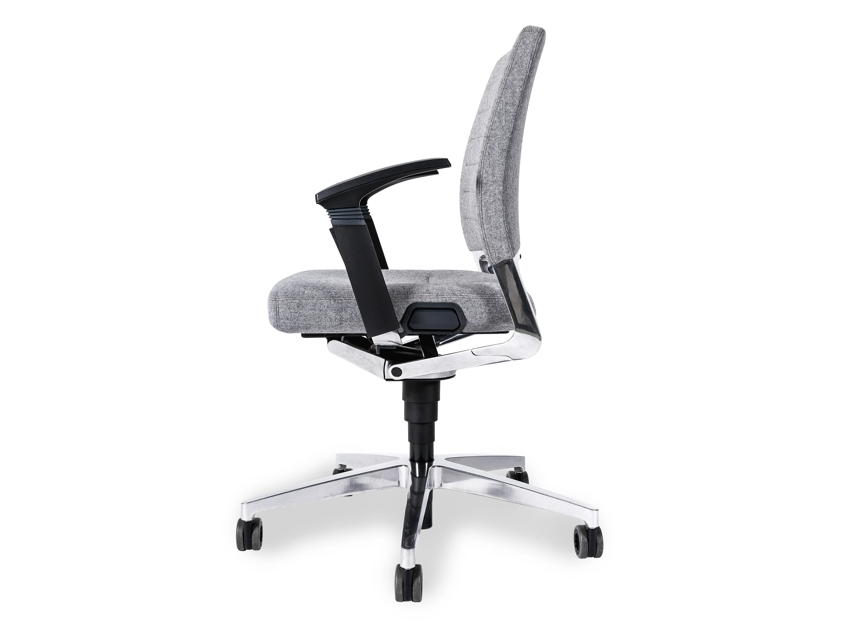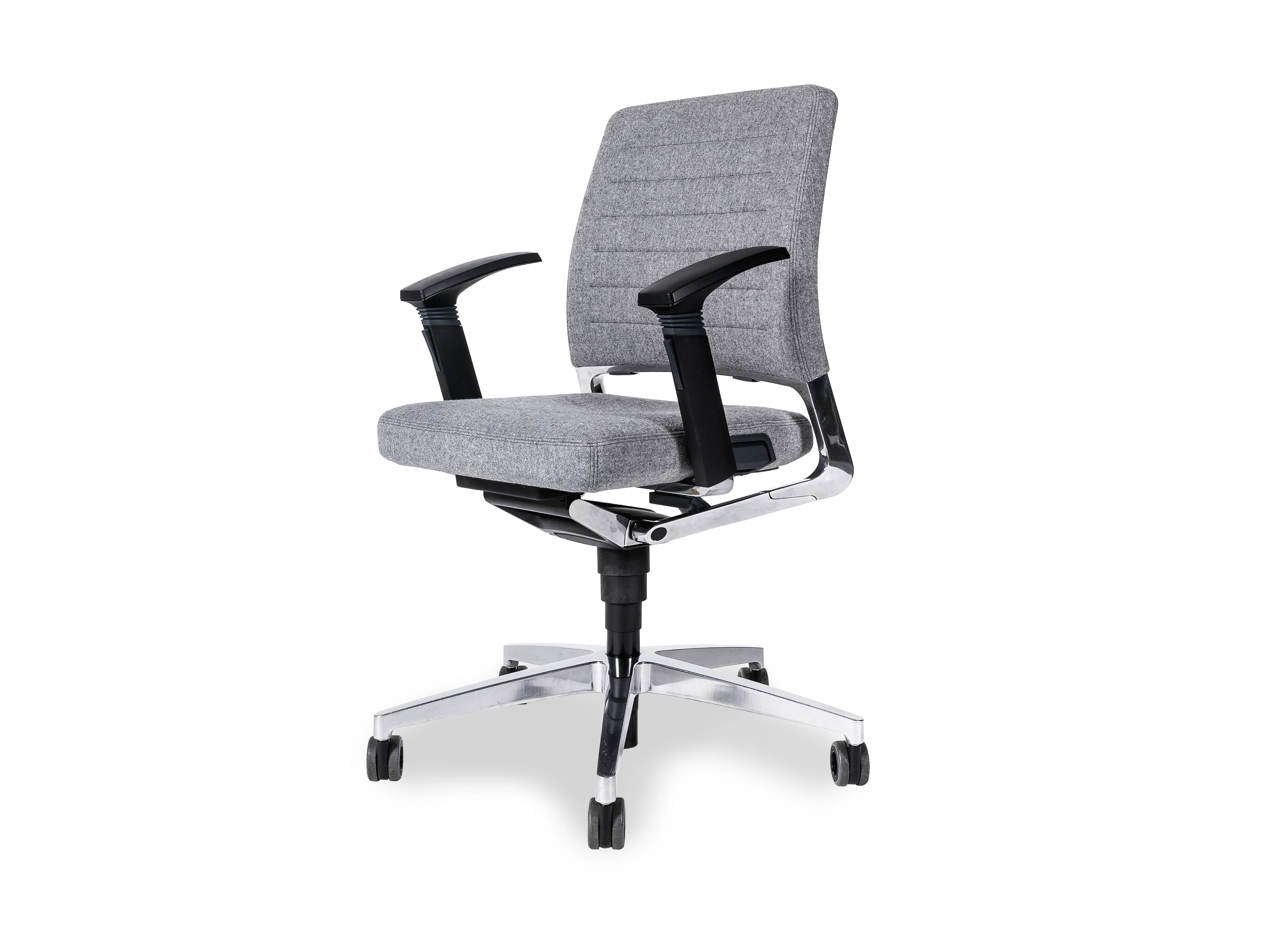 Bureaustoel met middelhoge rug, zitting en rugleuning met standaard stoffering. Smart Motion Technology synchroonmechaniek (vergrendelbaar), Gewichtsregeling in stappen verstelbaar, Zithoogte verstelling, Zitneigverstelling.