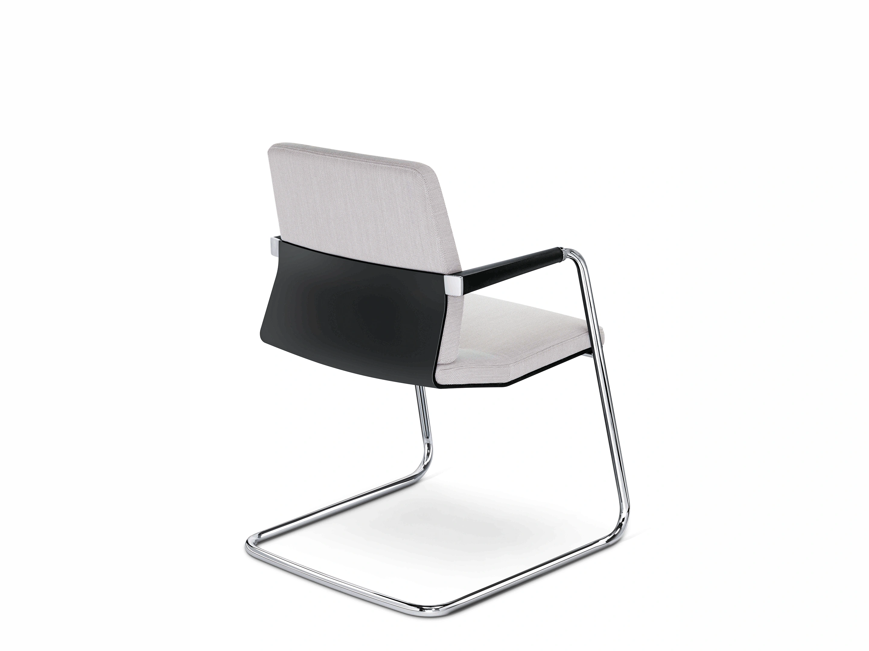 Vergaderstoel met sledeframe (standaard poedercoating), zitting en rugleuning gestoffeerd.
