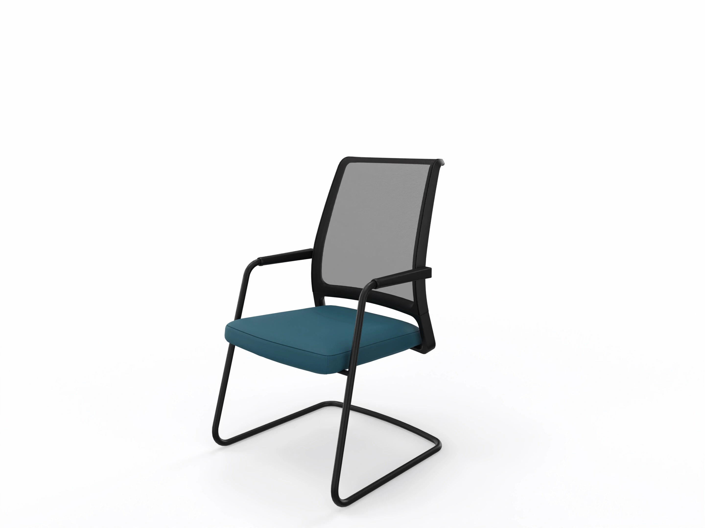 Vergaderstoel met sledeframe (standaard poedercoating), zitting gestoffeerd, rug in netbespanning.