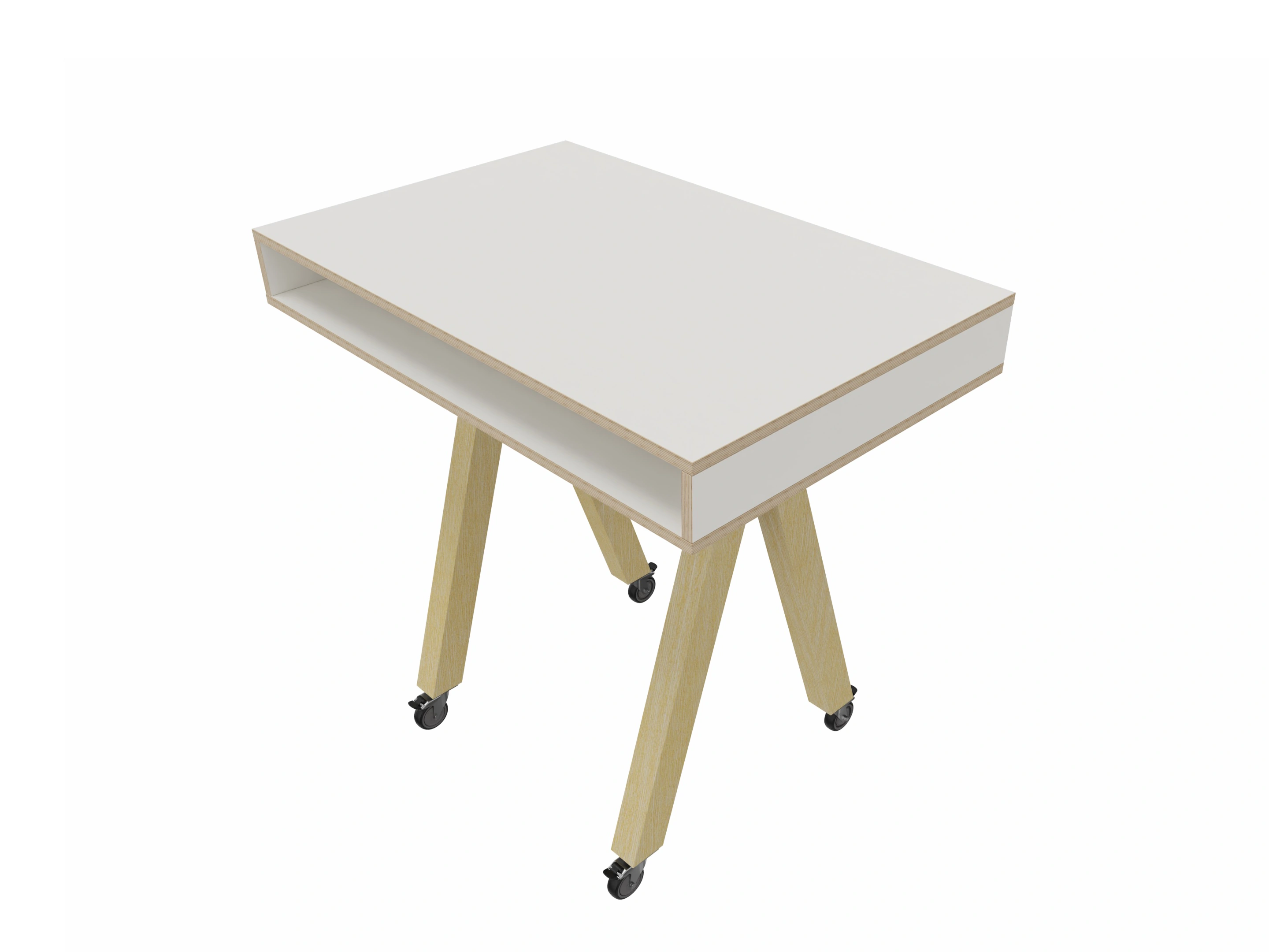 Verrijdbare statafel met MDF met melaminetoplaag, bladranden berken multiplex, wielen met rem.