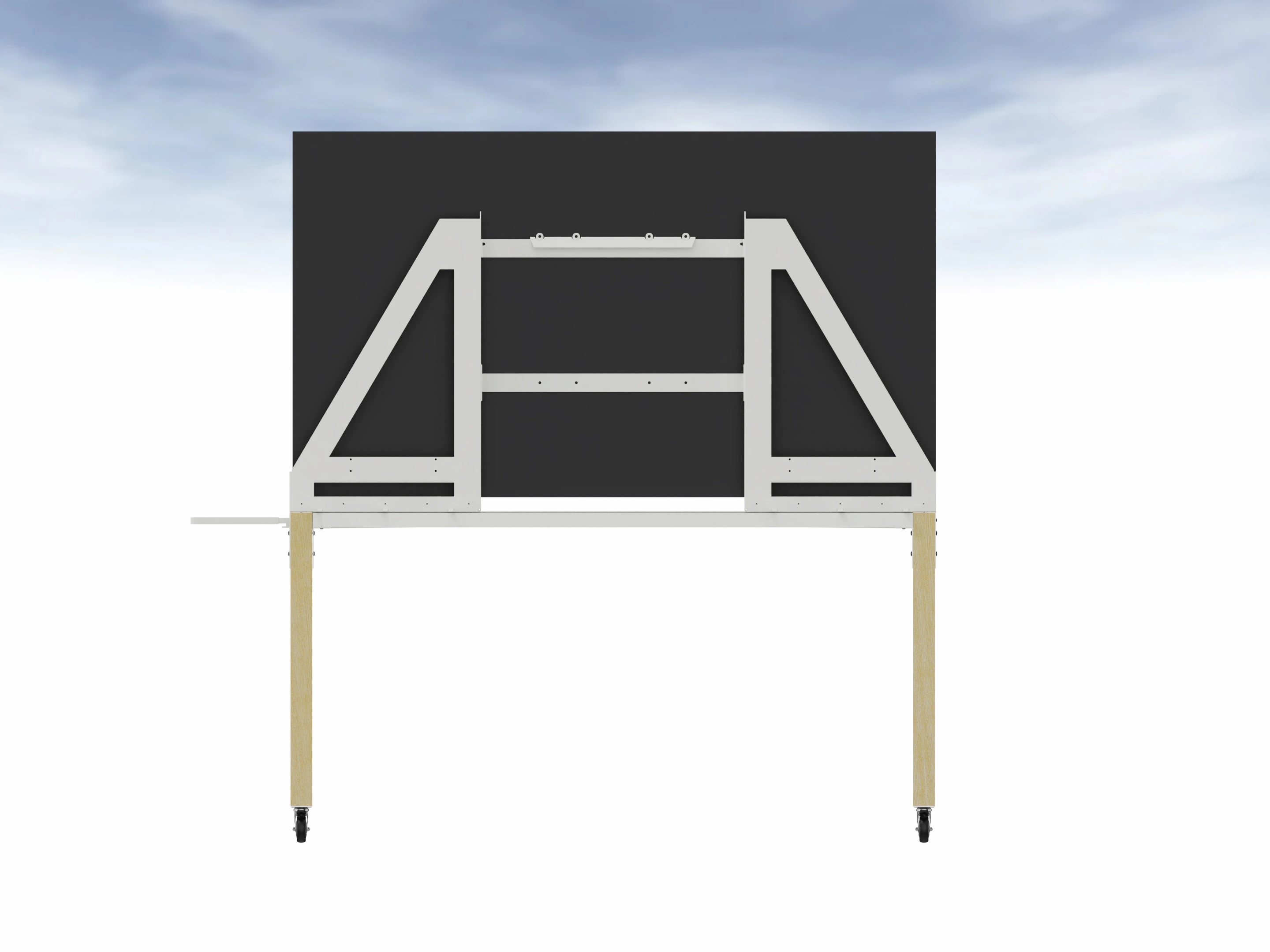 Incl. vesa voorbereiding voor monitoren van 55" tot 75", laptophouder an de zijkant. Afmeting: 1770 mm x 1730mm x 710mm (BxHxD)