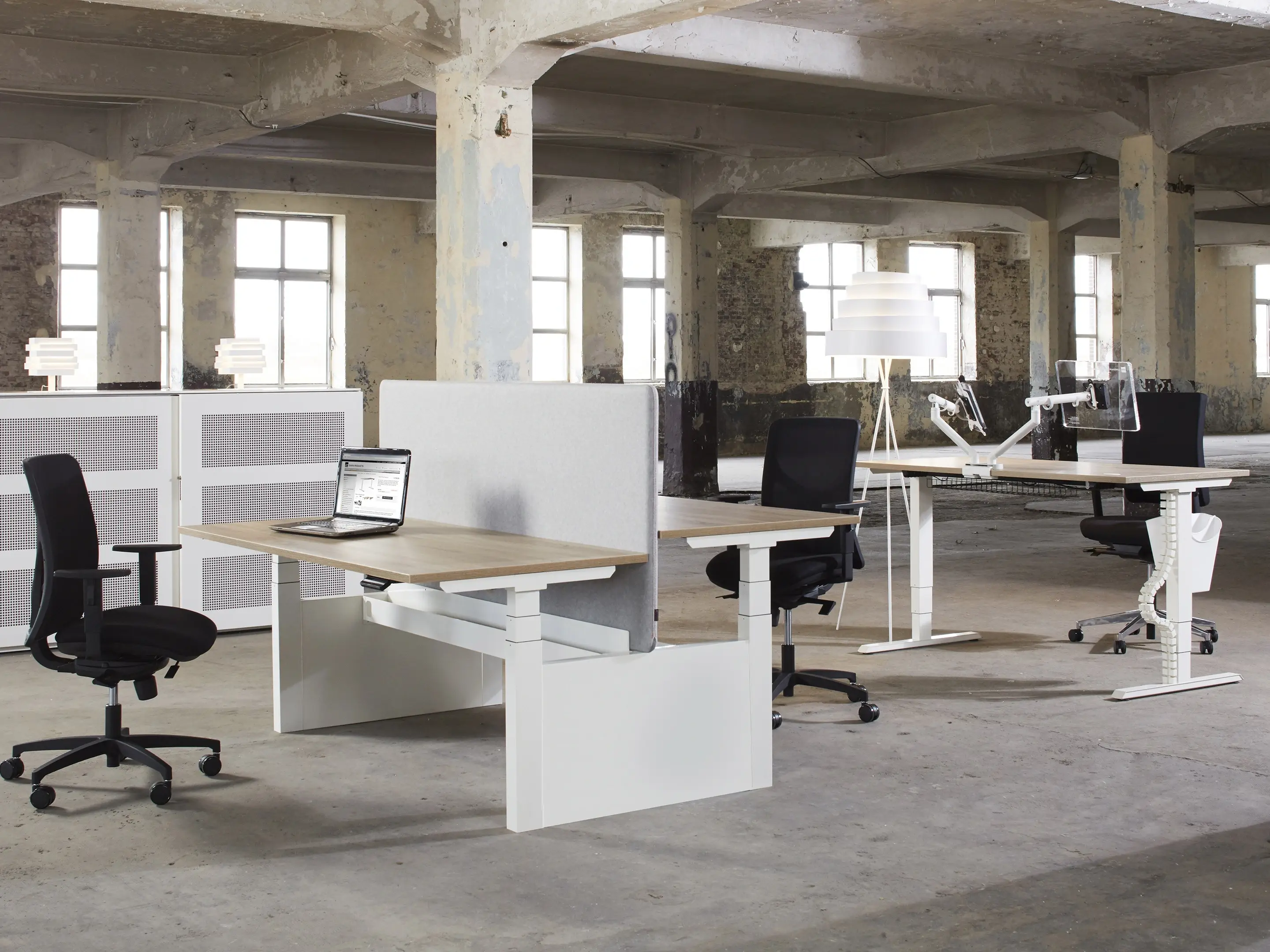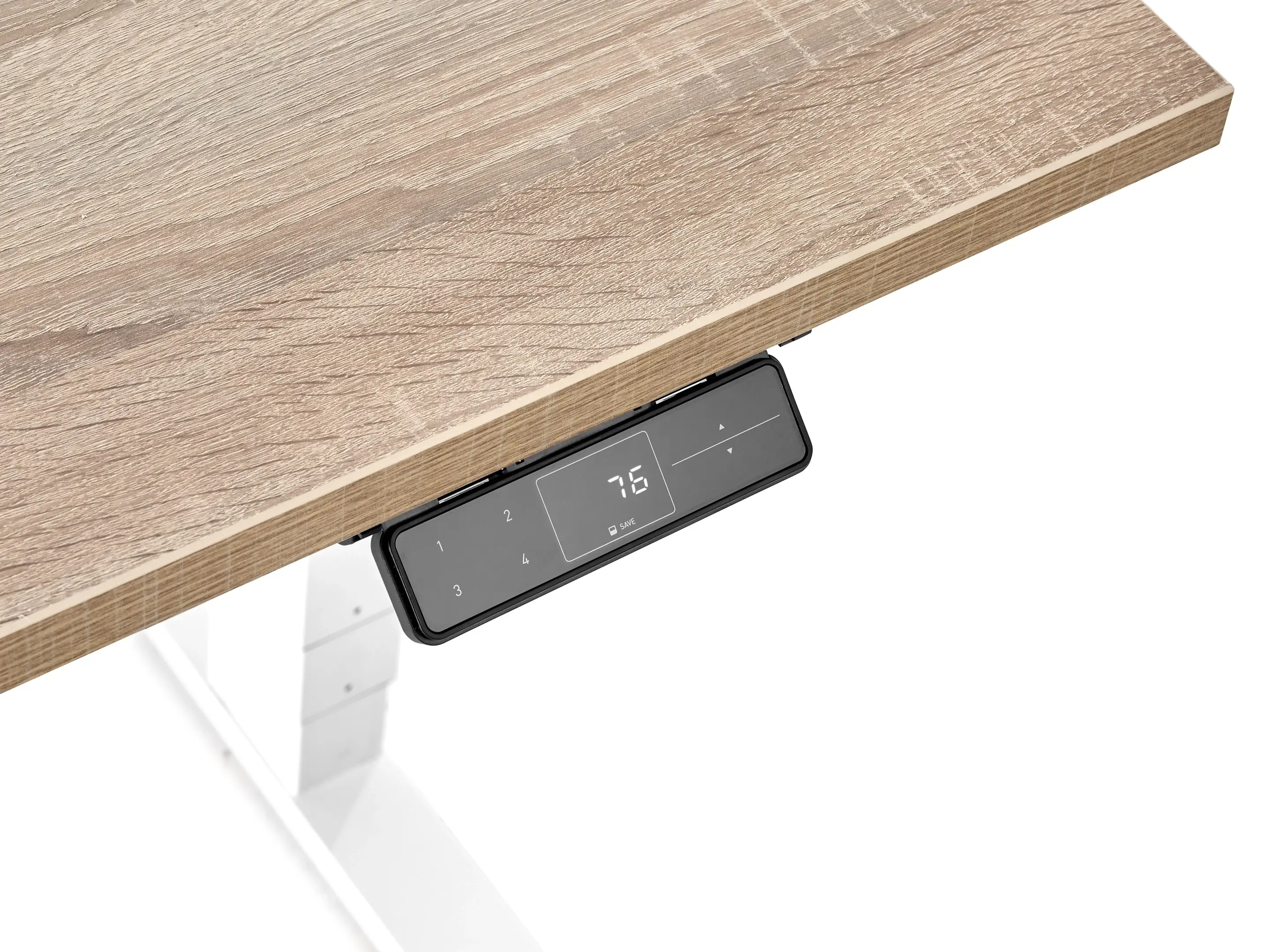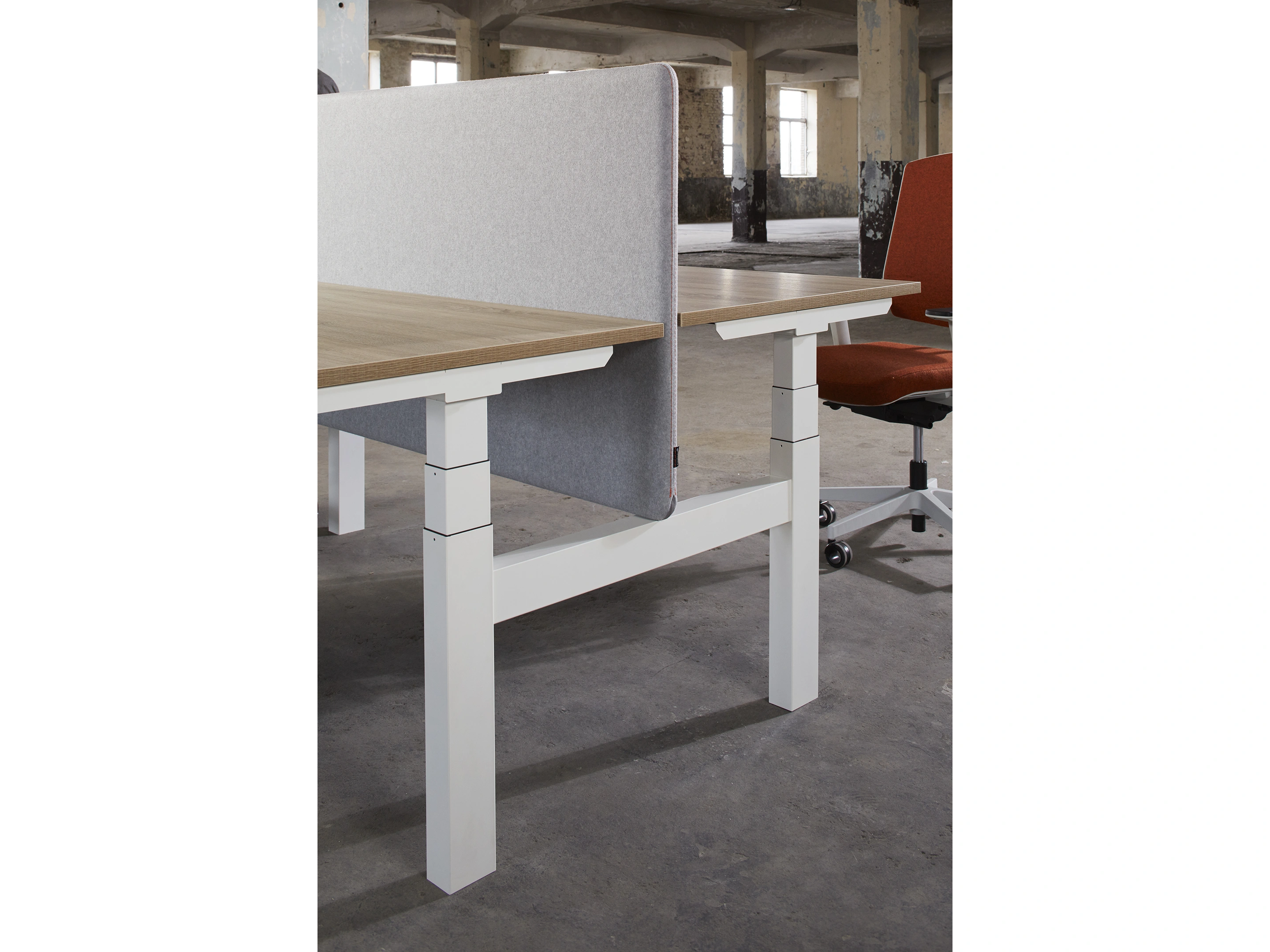 Elektrisch verstelbaar onderstel, hoogte verstelbaar tussen: 65-130cm (incl. 25mm blad), vaste beam, voor meer stevigheid), Duitse OMT techniek, stille moteren, plug and play E-traverse verbergt beide motoren, controller en kabels.