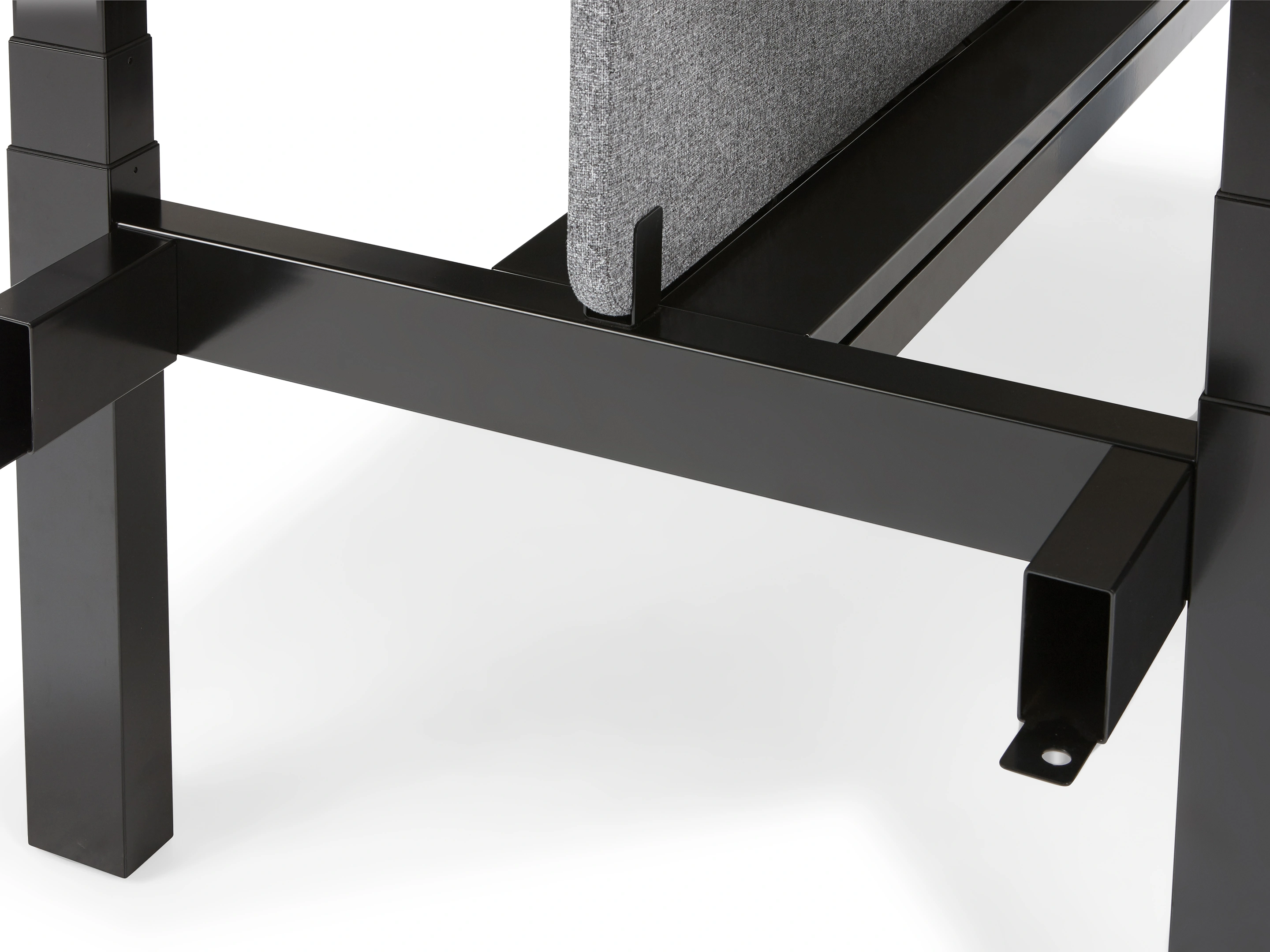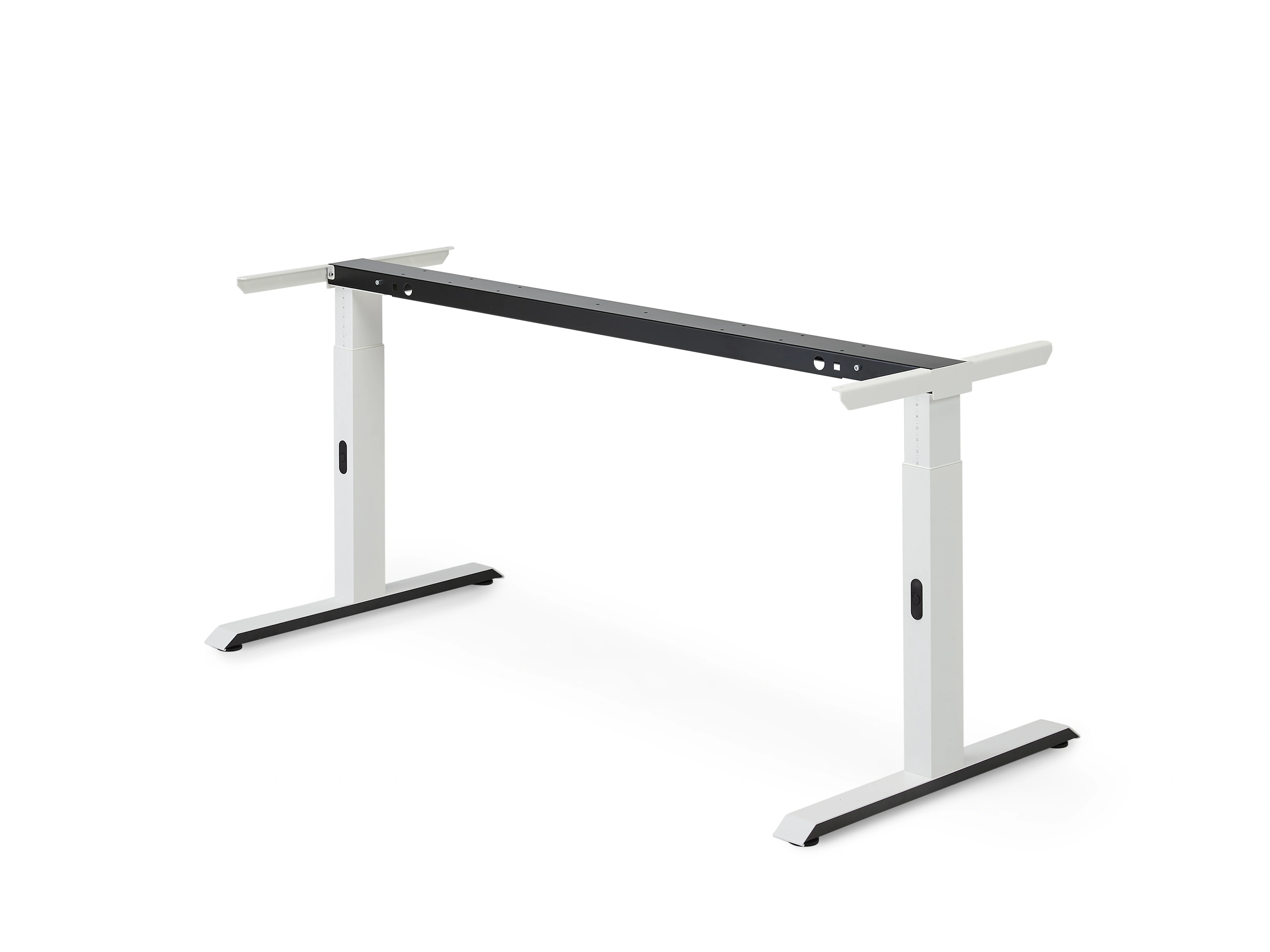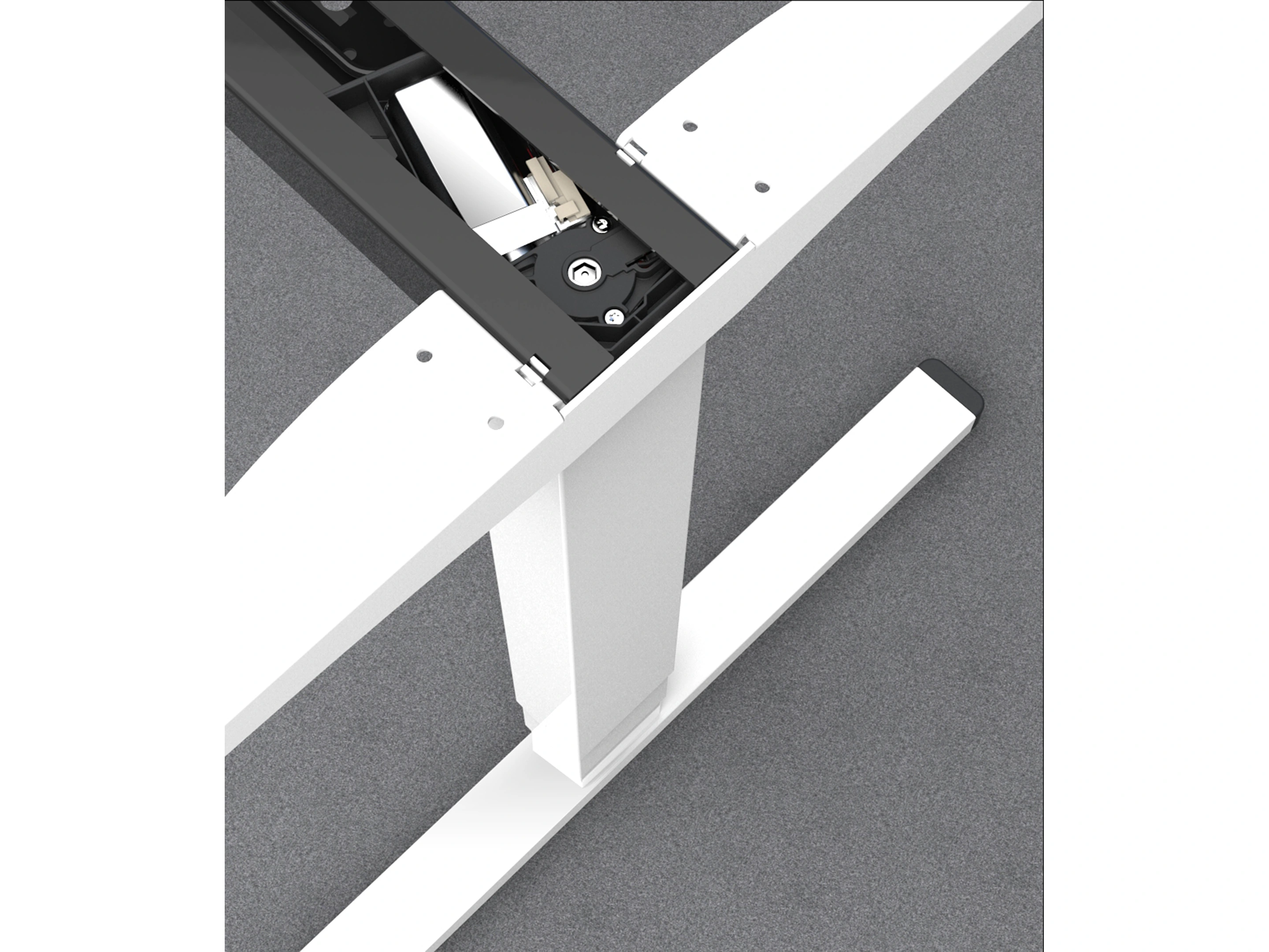Elektrisch verstelbaar onderstel, hoogte verstelbaar tussen: 65-125cm (incl. 25mm blad), vaste beam, voor meer stevigheid), Duitse OMT techniek, stille moteren, plug and play E-traverse verbergt beide motoren, controller en kabels.