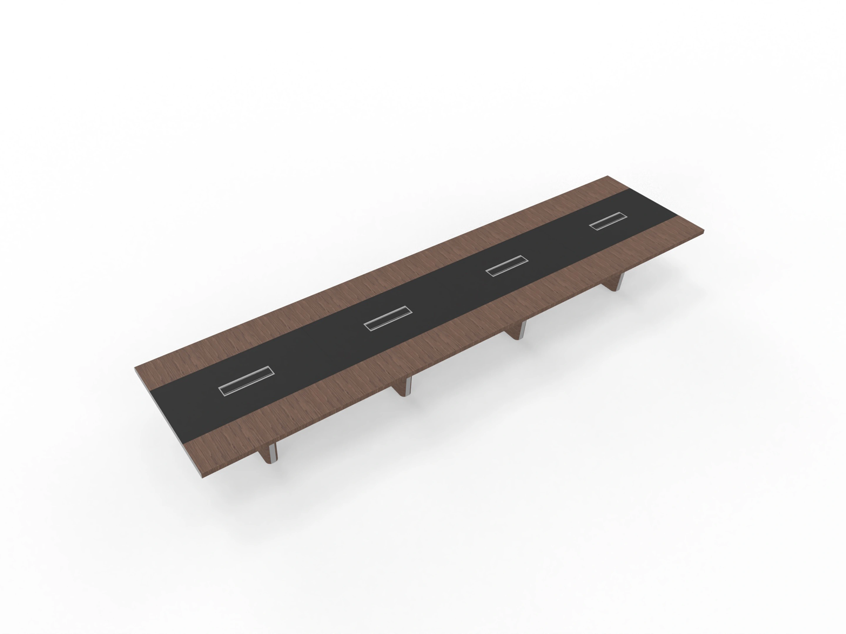 Volledig vervaardigd uit fineer, met een lederen inleg. Voor stabiliteit wordt de enkel-poots uitvoerd met een grondplaat. Deze is altijd uit geborsteld chroom