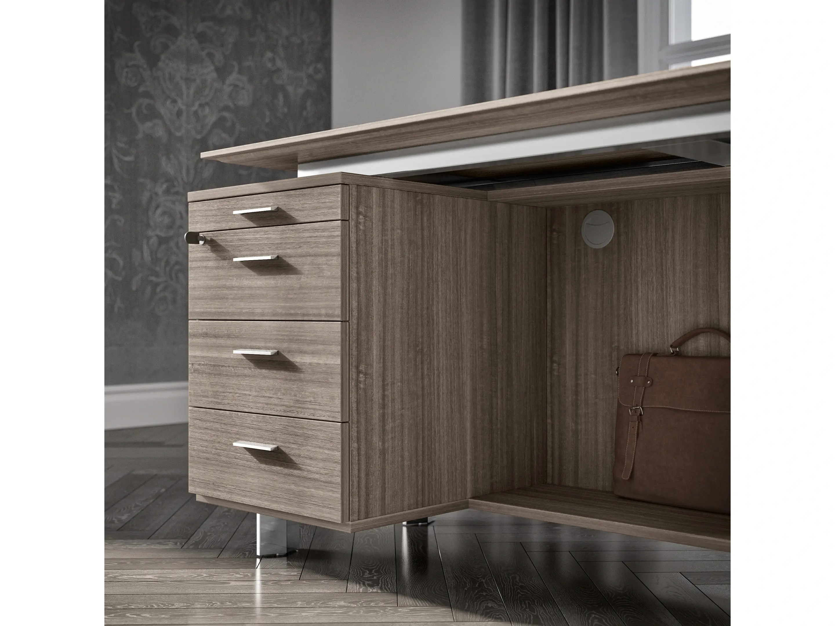 Inclusief hoekopstelling met kast (open kast) en ladenblok 3+1.