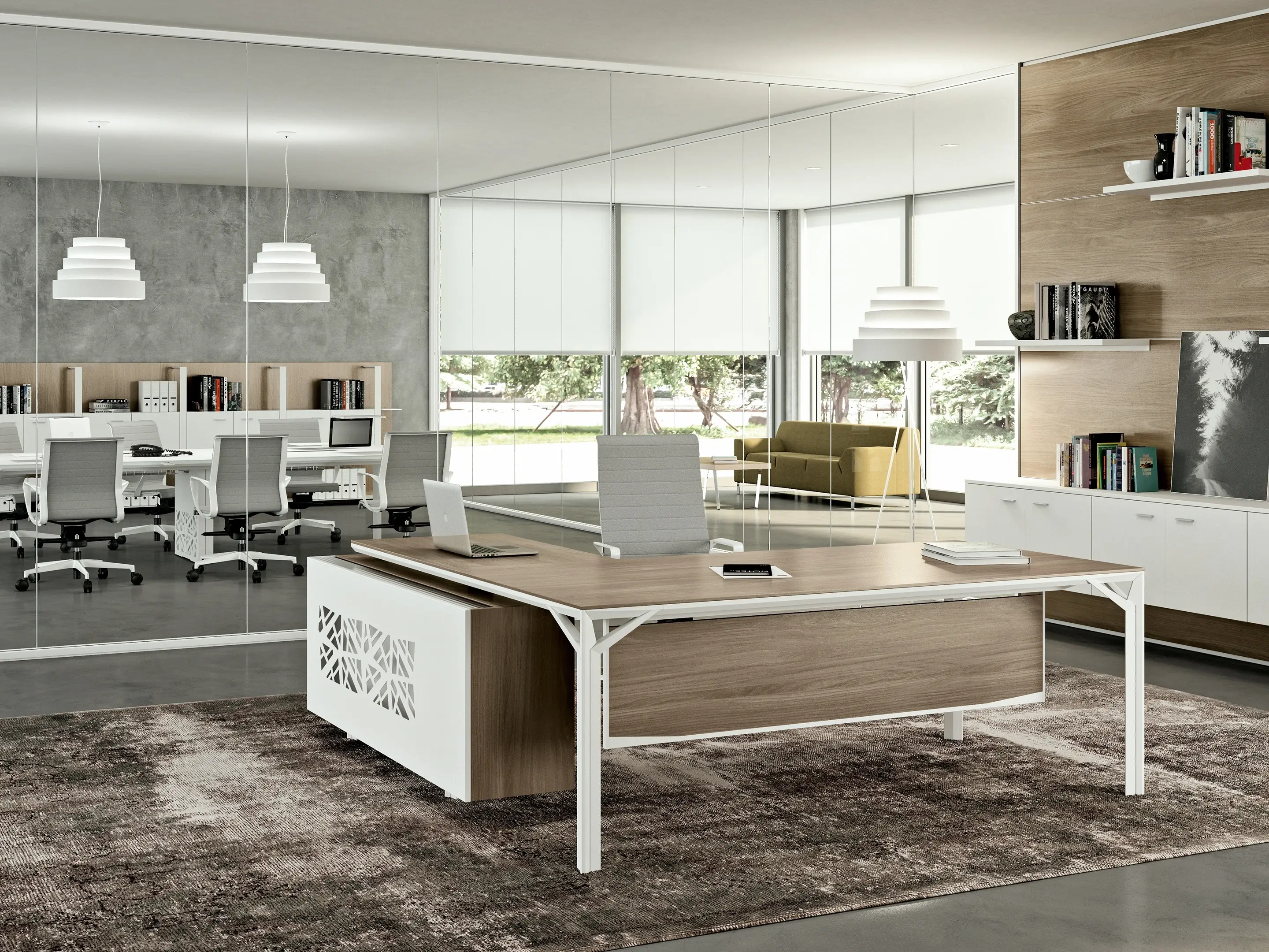 X8 directiebureau - Hoekbureau, schuifdeurkast rechts, 209x215x75cm