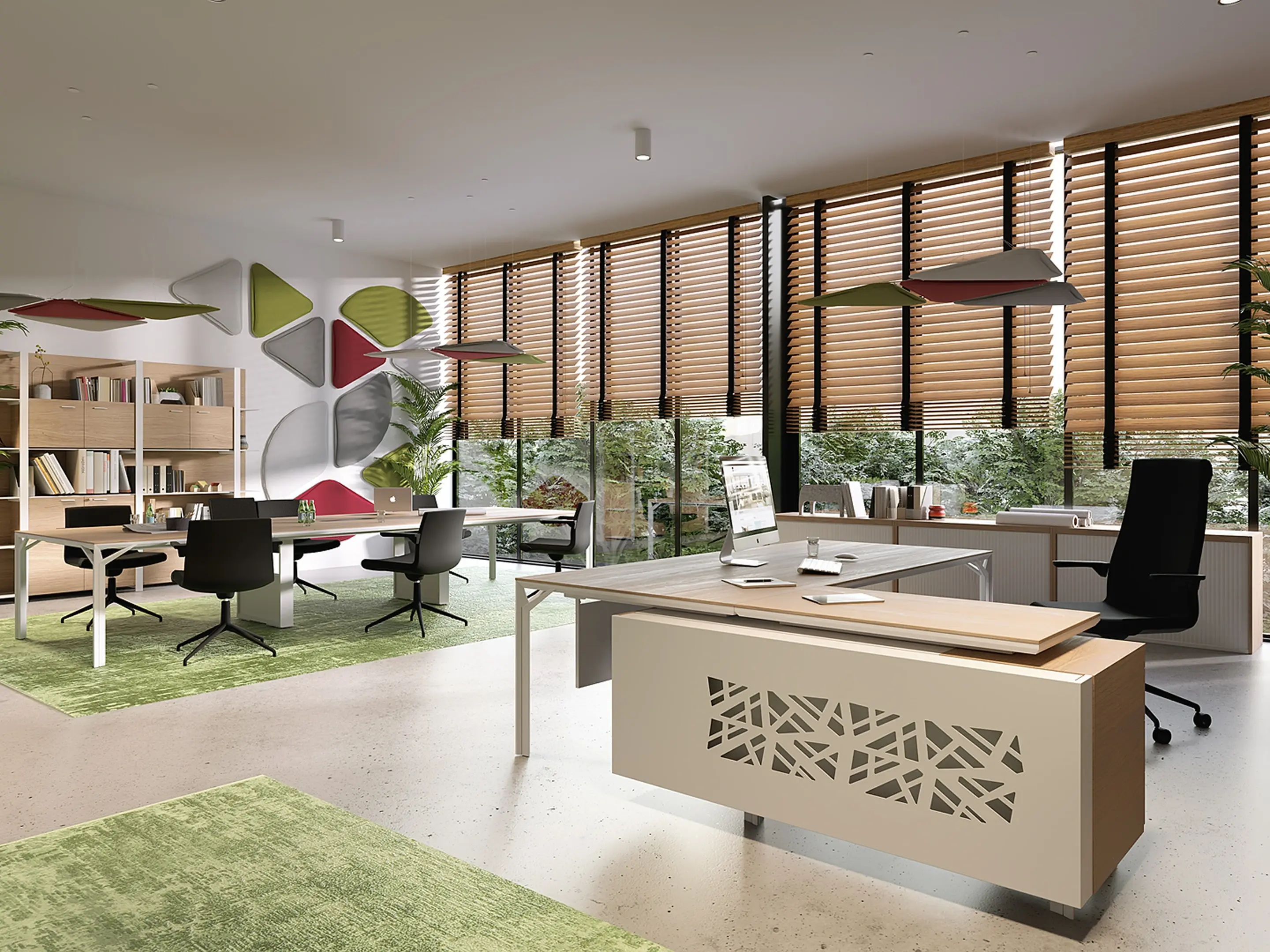 X8 directiebureau - Hoekbureau, schuifdeurkast rechts, 229x225x75cm