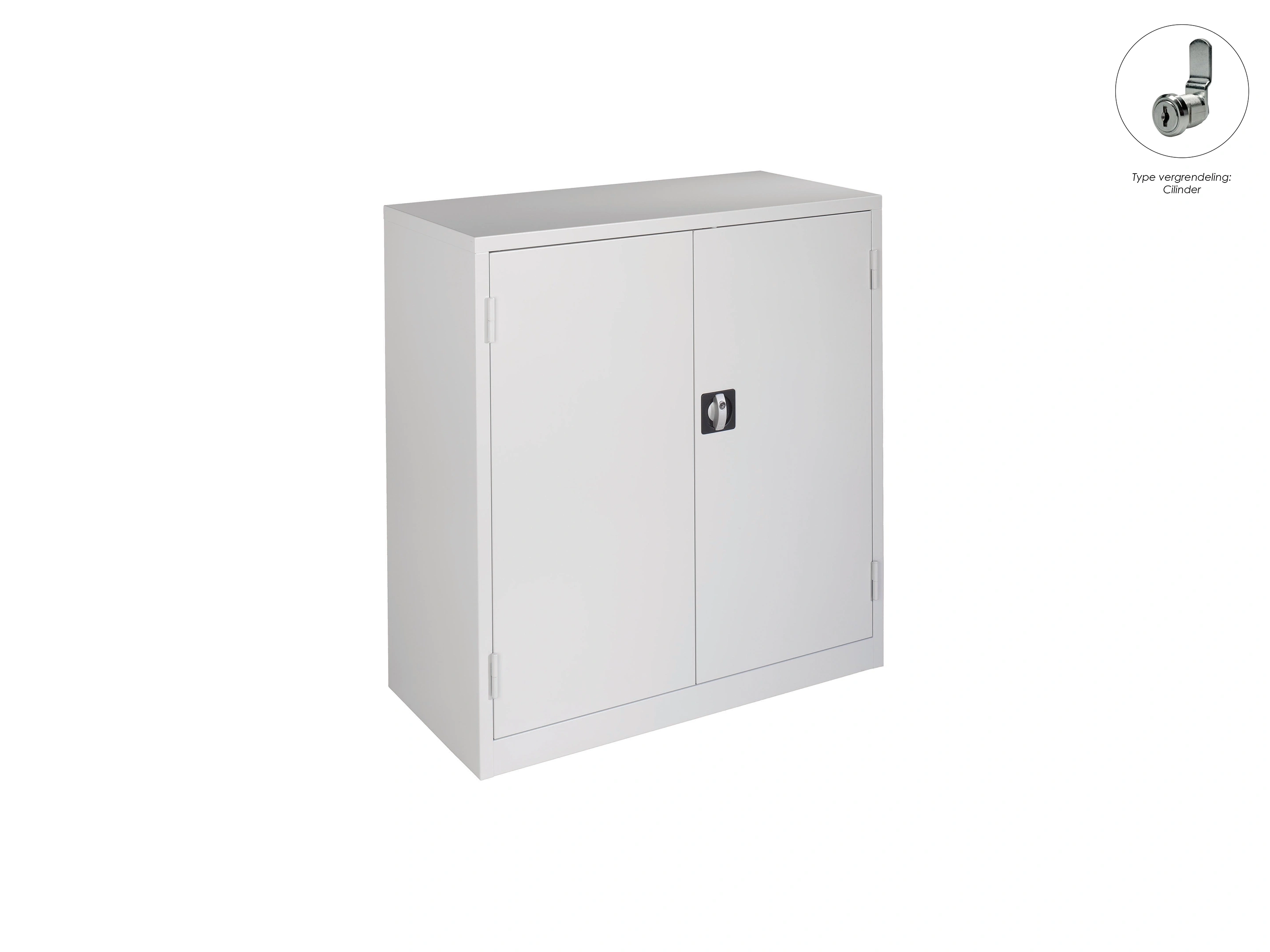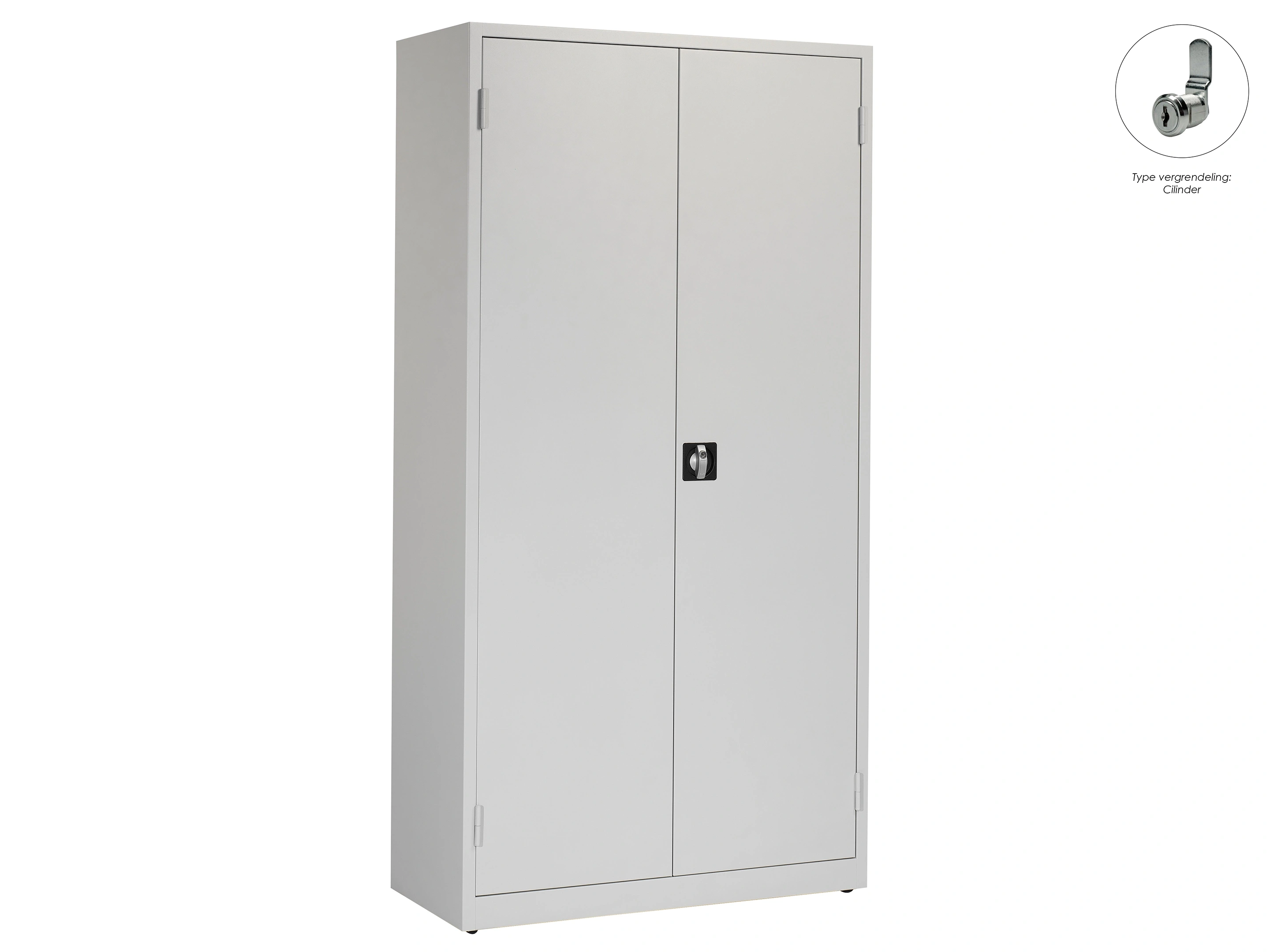 Zwaarlast draaideurkast met gelaste stalen constructie kleur romp: Grijs (RAL7035), kleur deuren: Grijs (RAL7035) voorzien van cilinderslot met verzonken handgreep Belasting per legbord: Max. 100 kg