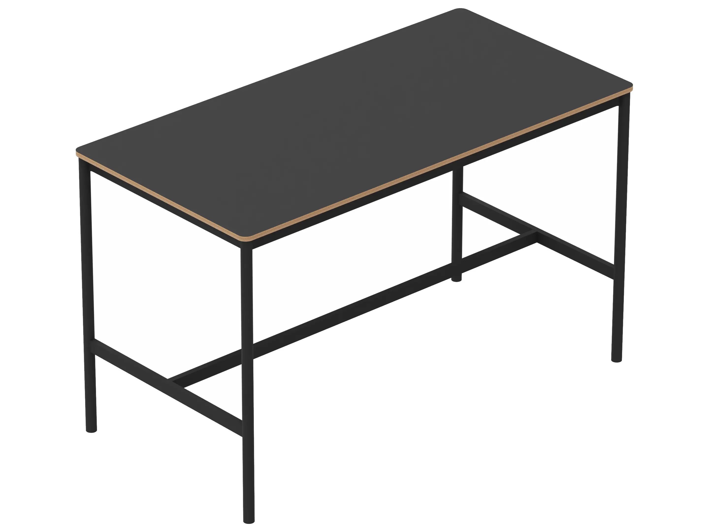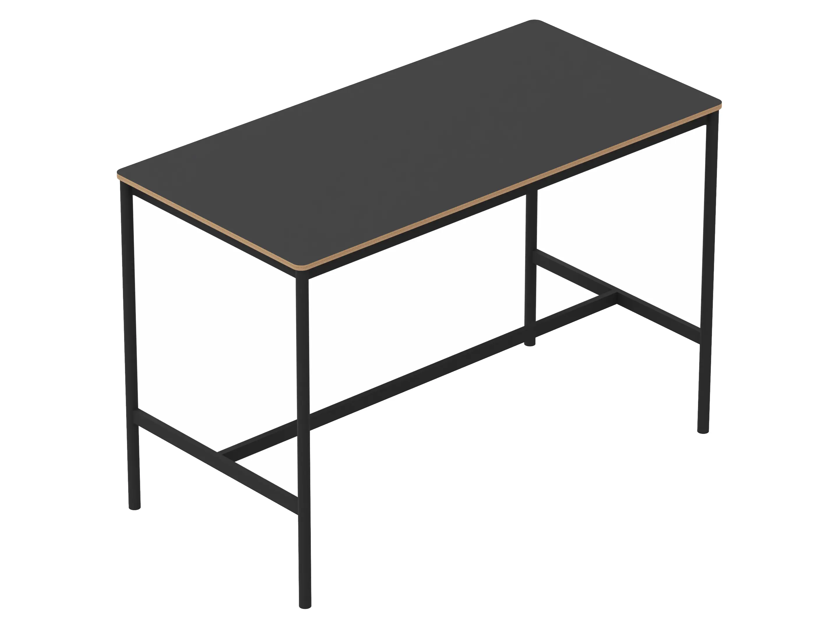 Statafel met een rechthoekig blad op een 4-poots frame met steunbalk. Hoogte: 1050mm.
