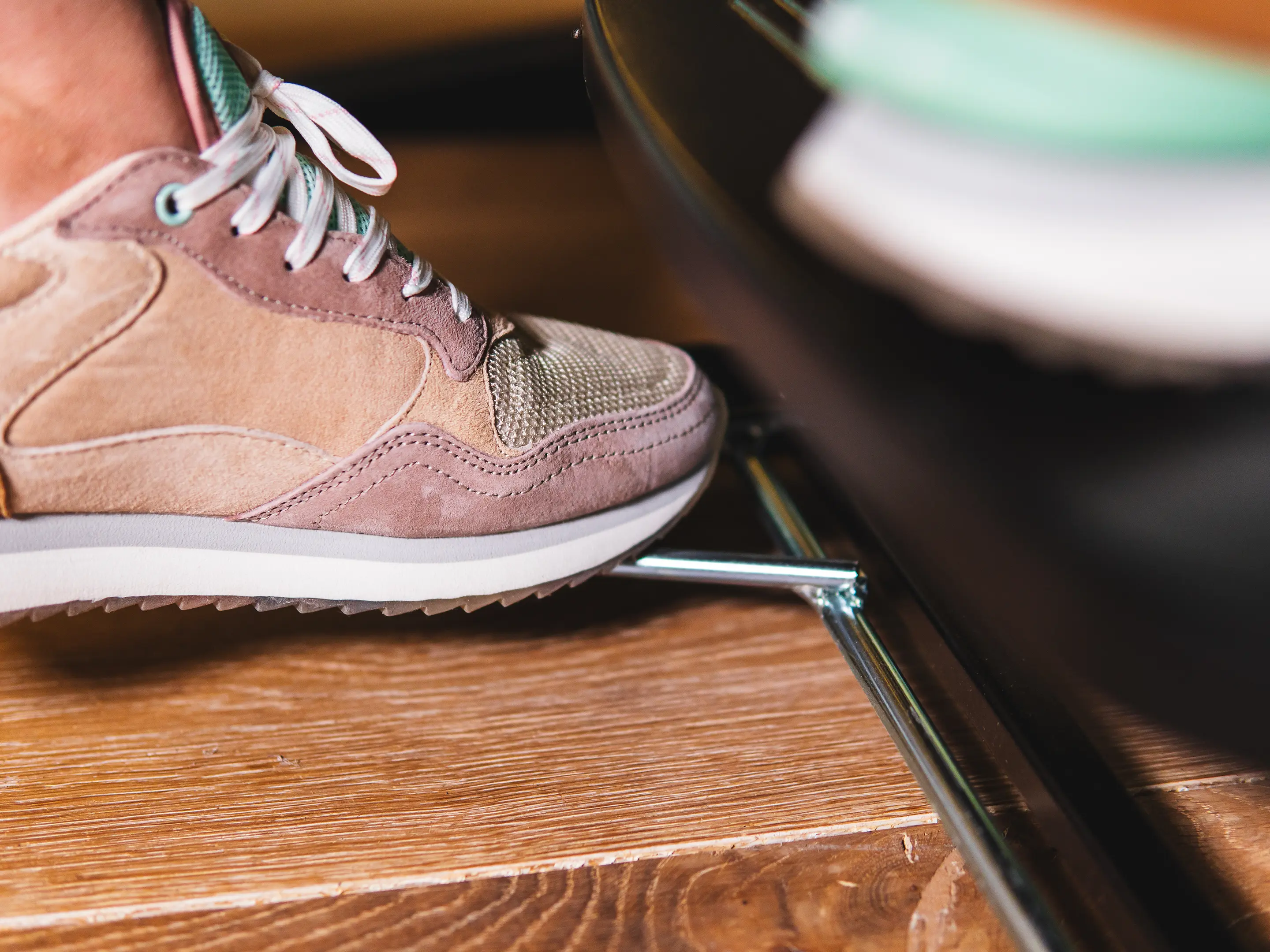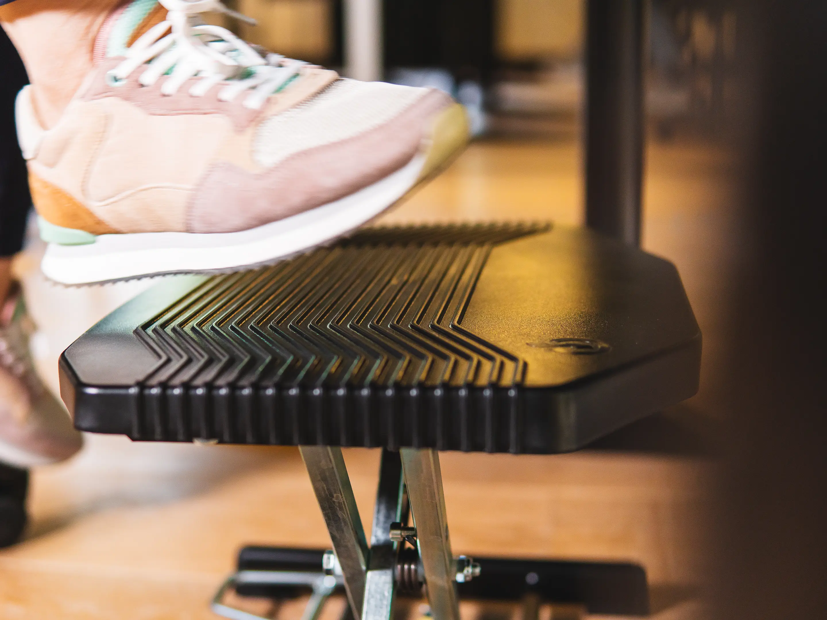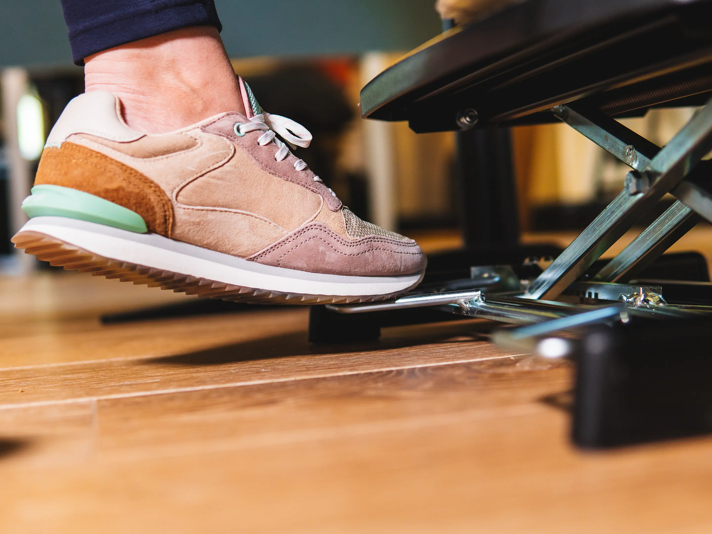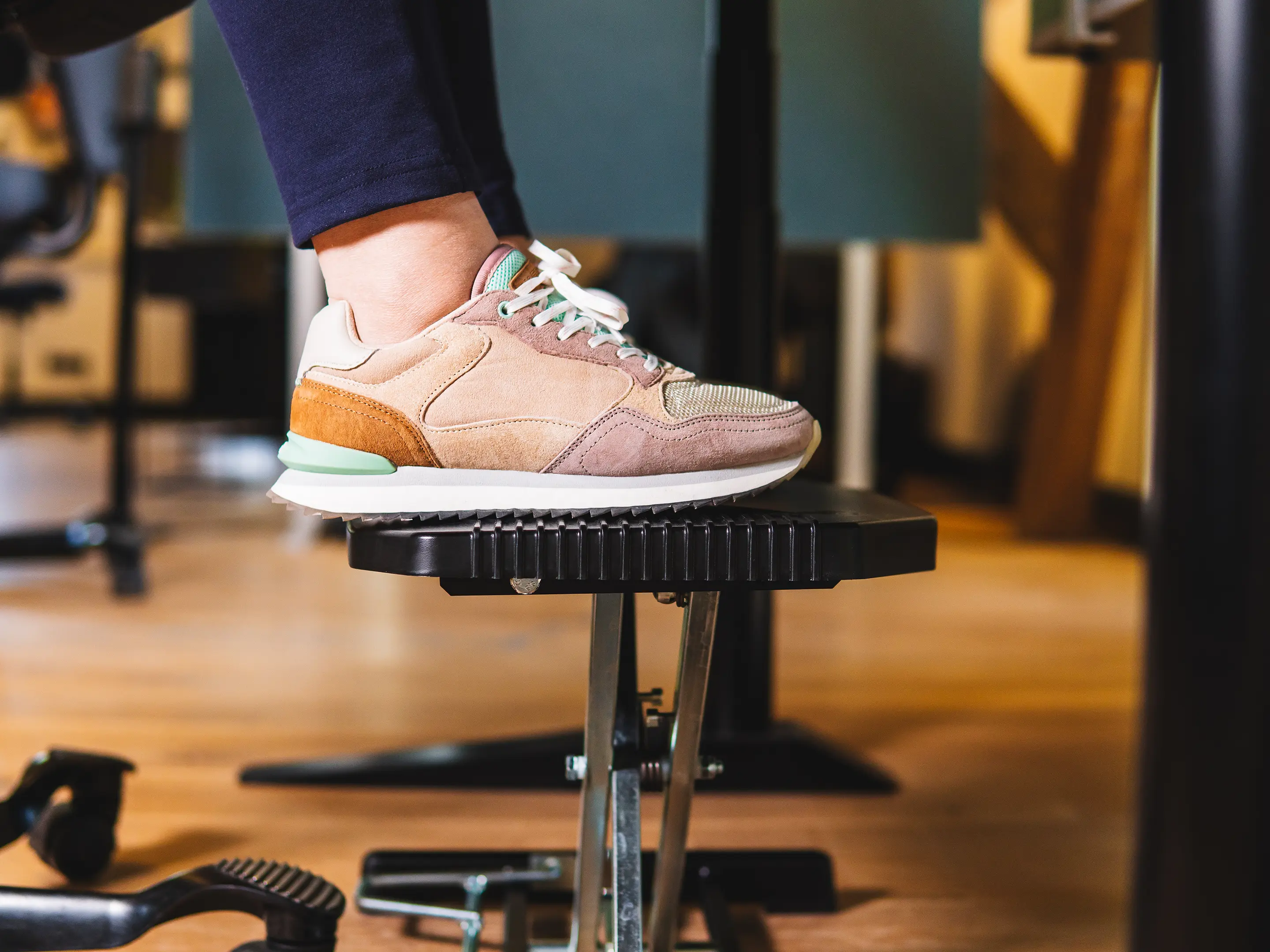 Een duurzame, ergonomische voetensteun met antislip oppervlak. Verstelbaar met de voeten in hoogte (80–290 mm) en hoek (0–48°), verbetert houding en bloedsomloop en is geschikt voor diverse werkplekken.