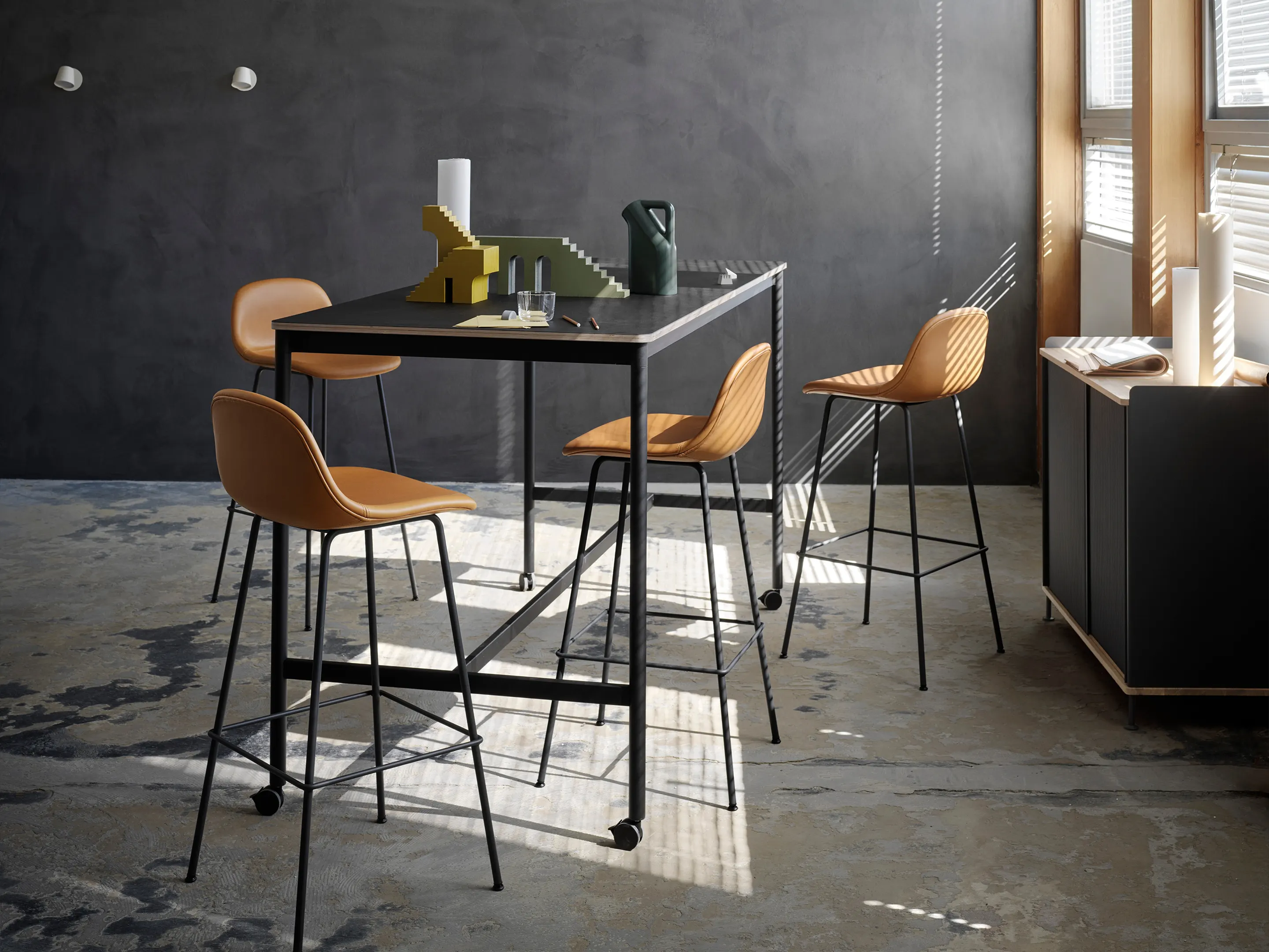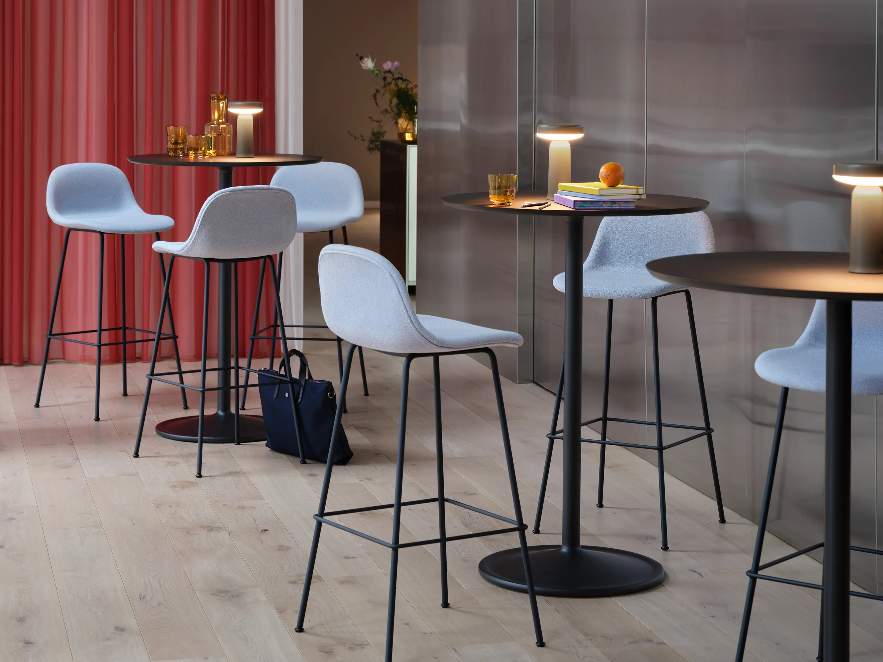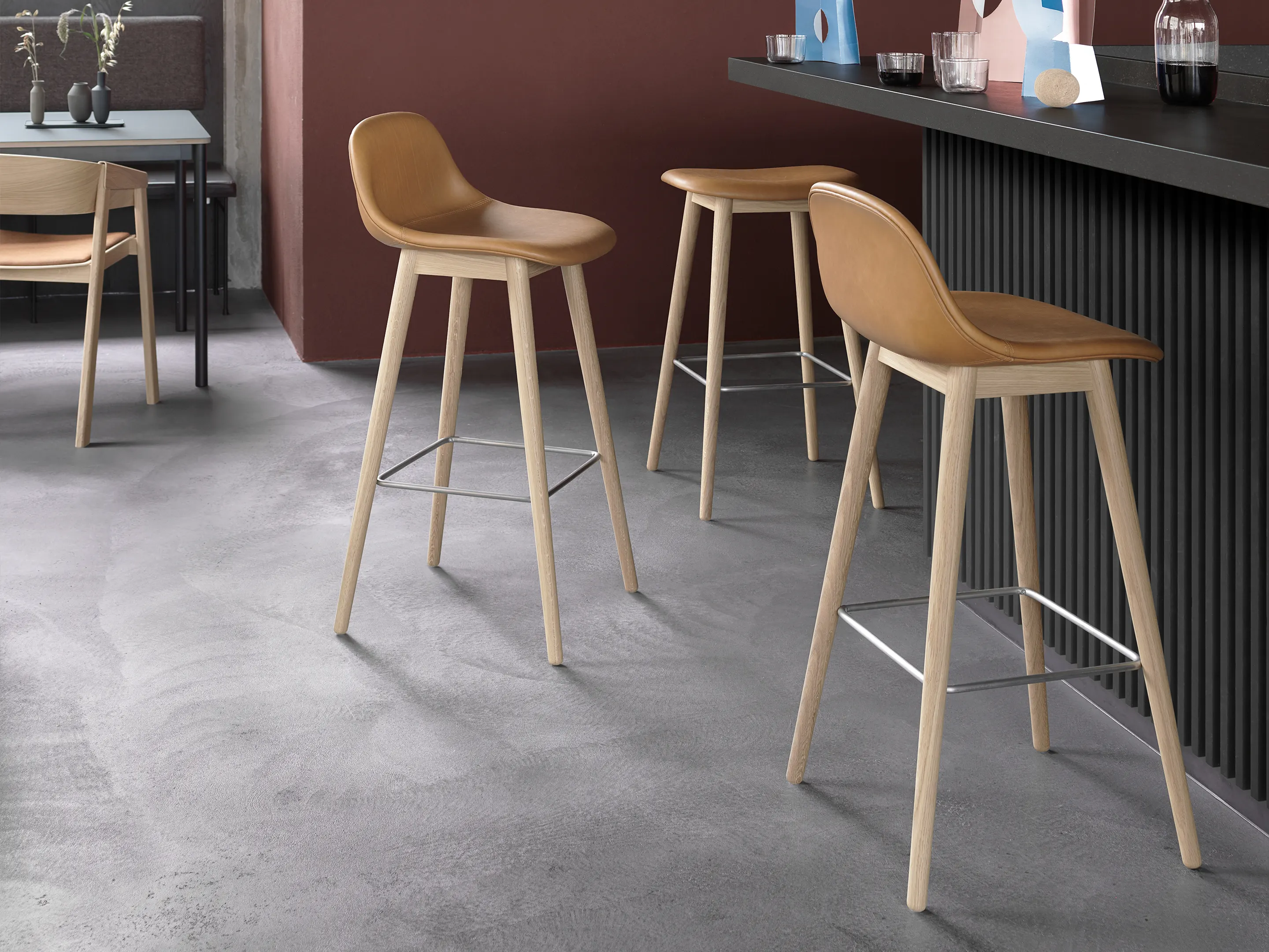 Fiber Stool - Barkruk, houten frame, gestoffeerd, met rug