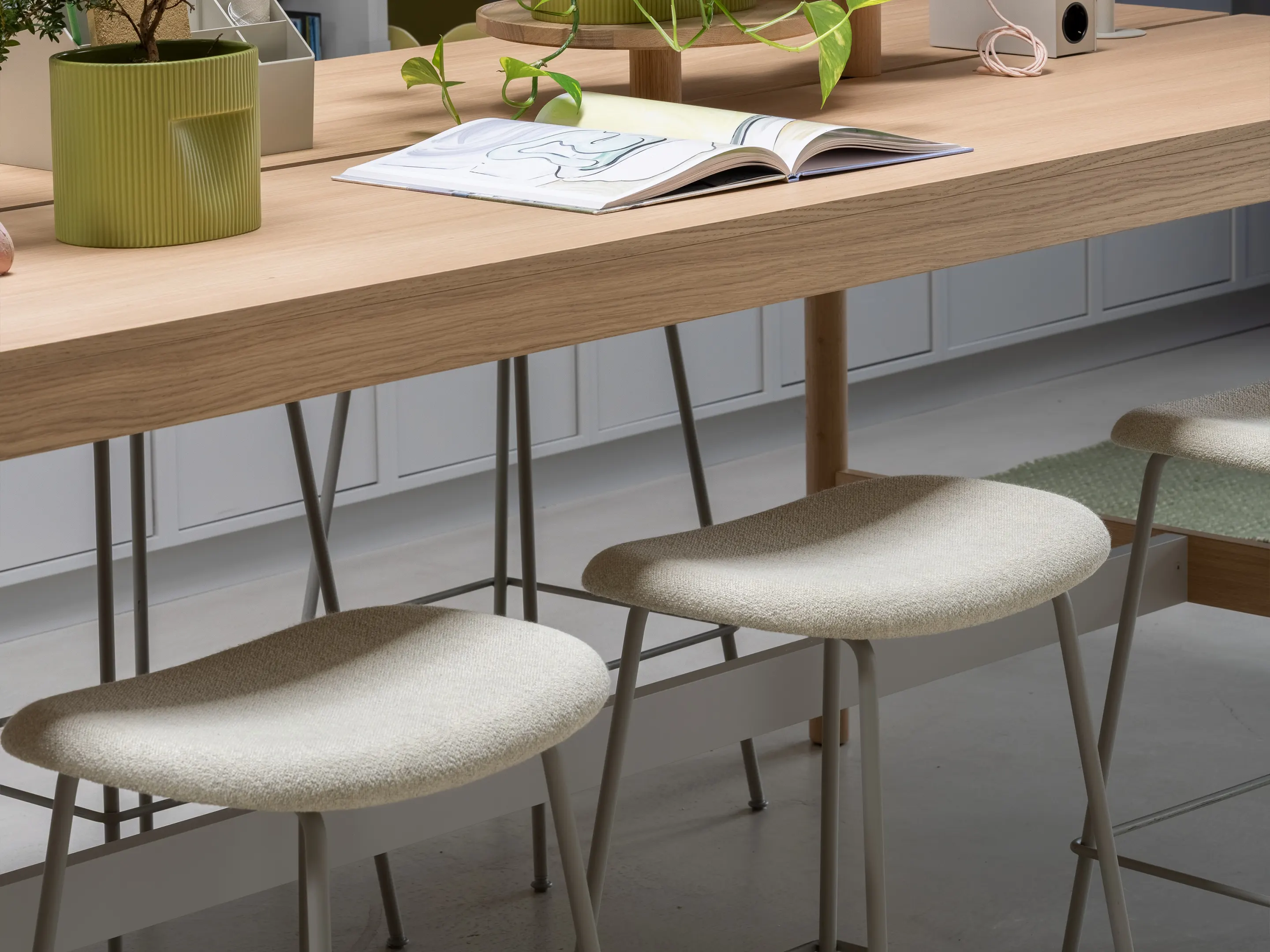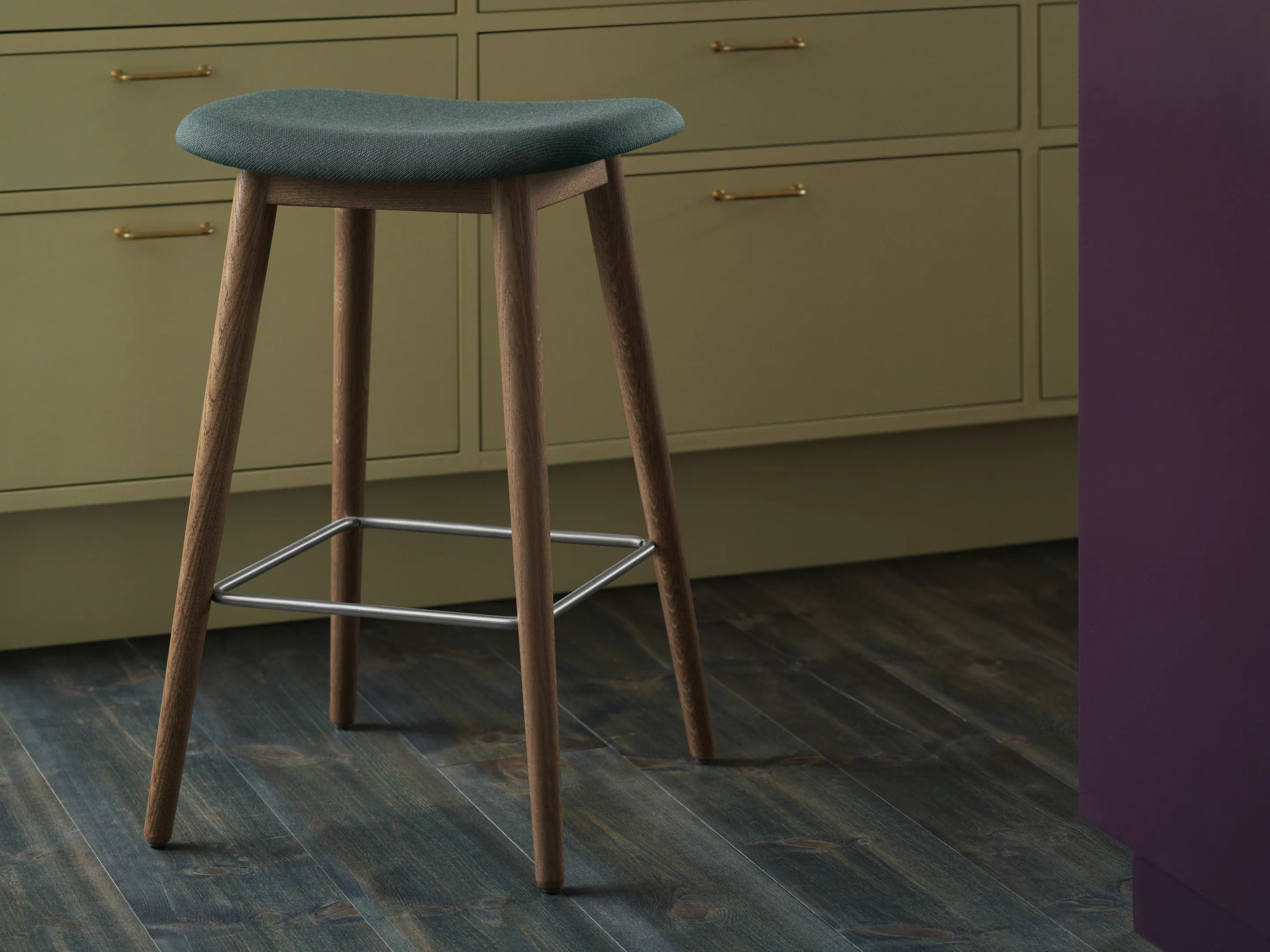 Fiber Stool - Counter kruk, houten frame, gestoffeerd, zonder rug