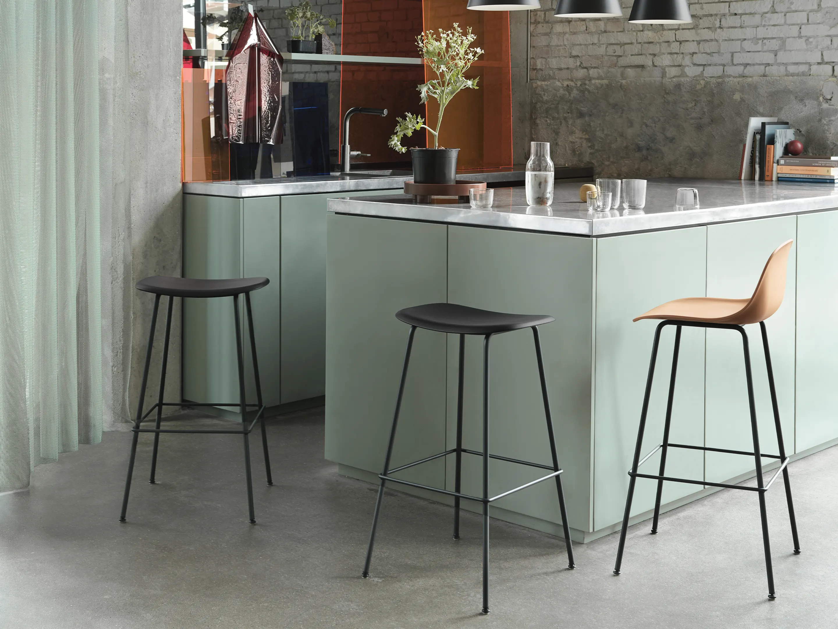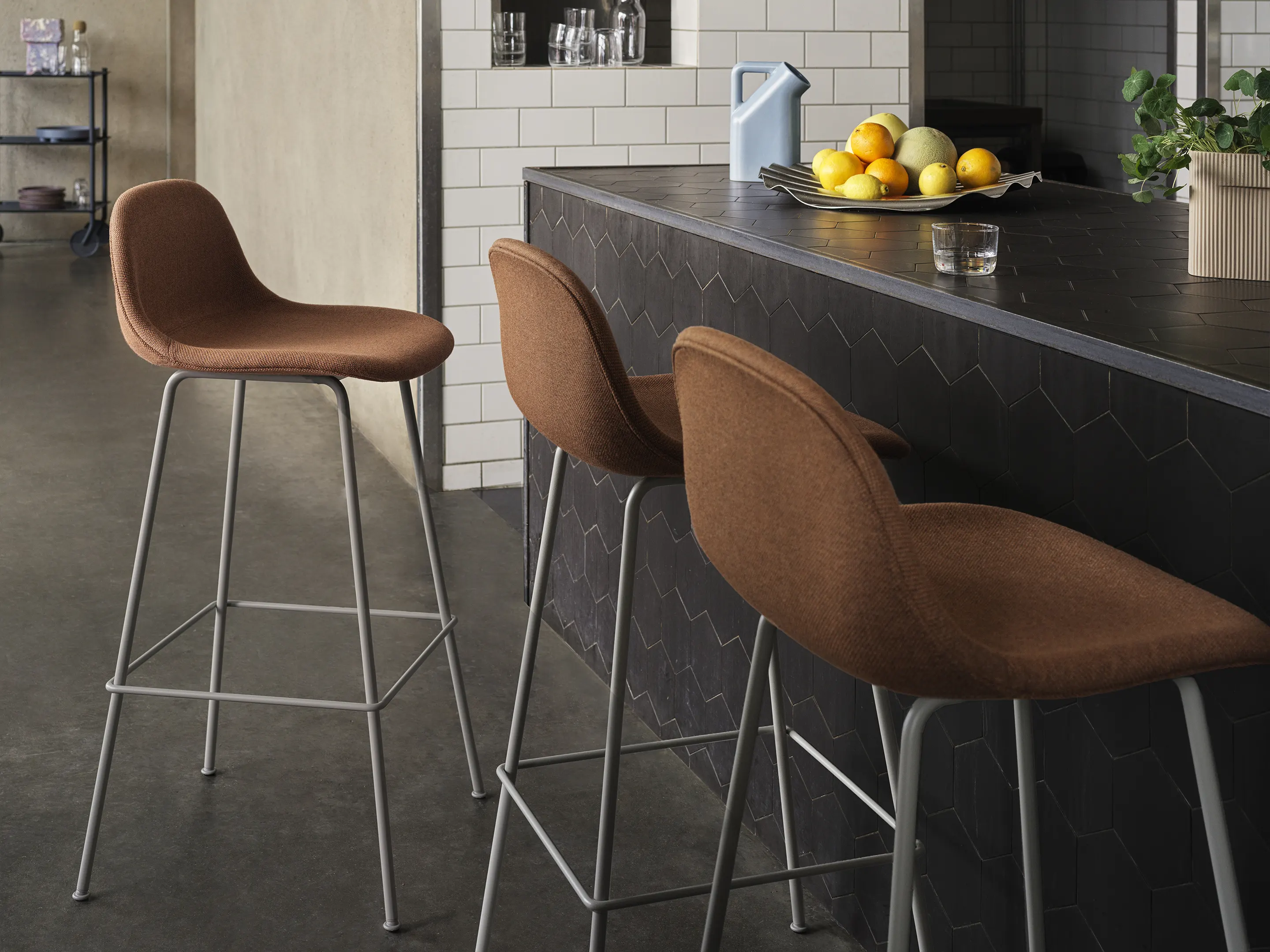 Fiber Stool - Counter kruk, 4-poots frame, gestoffeerd, zonder rug
