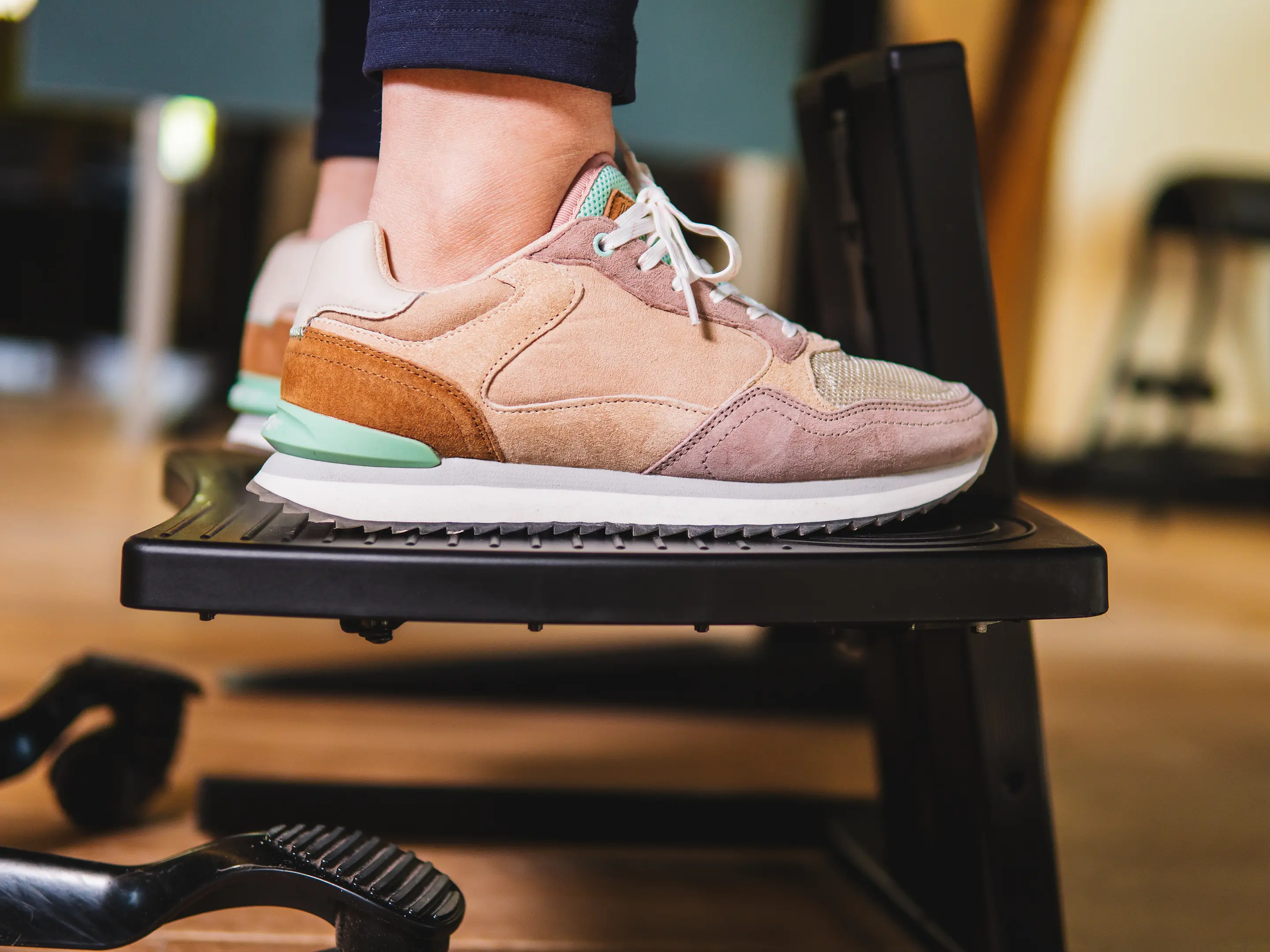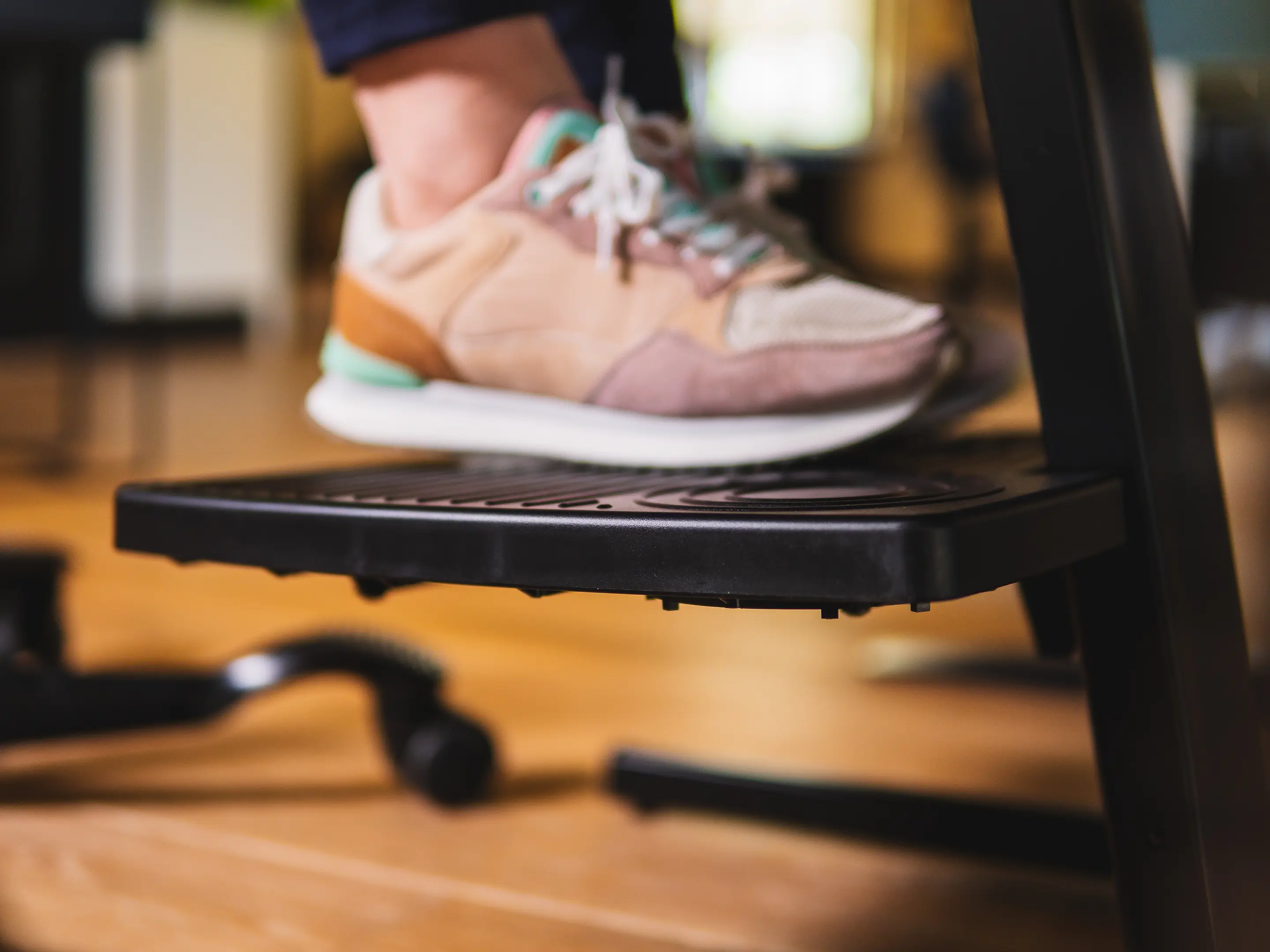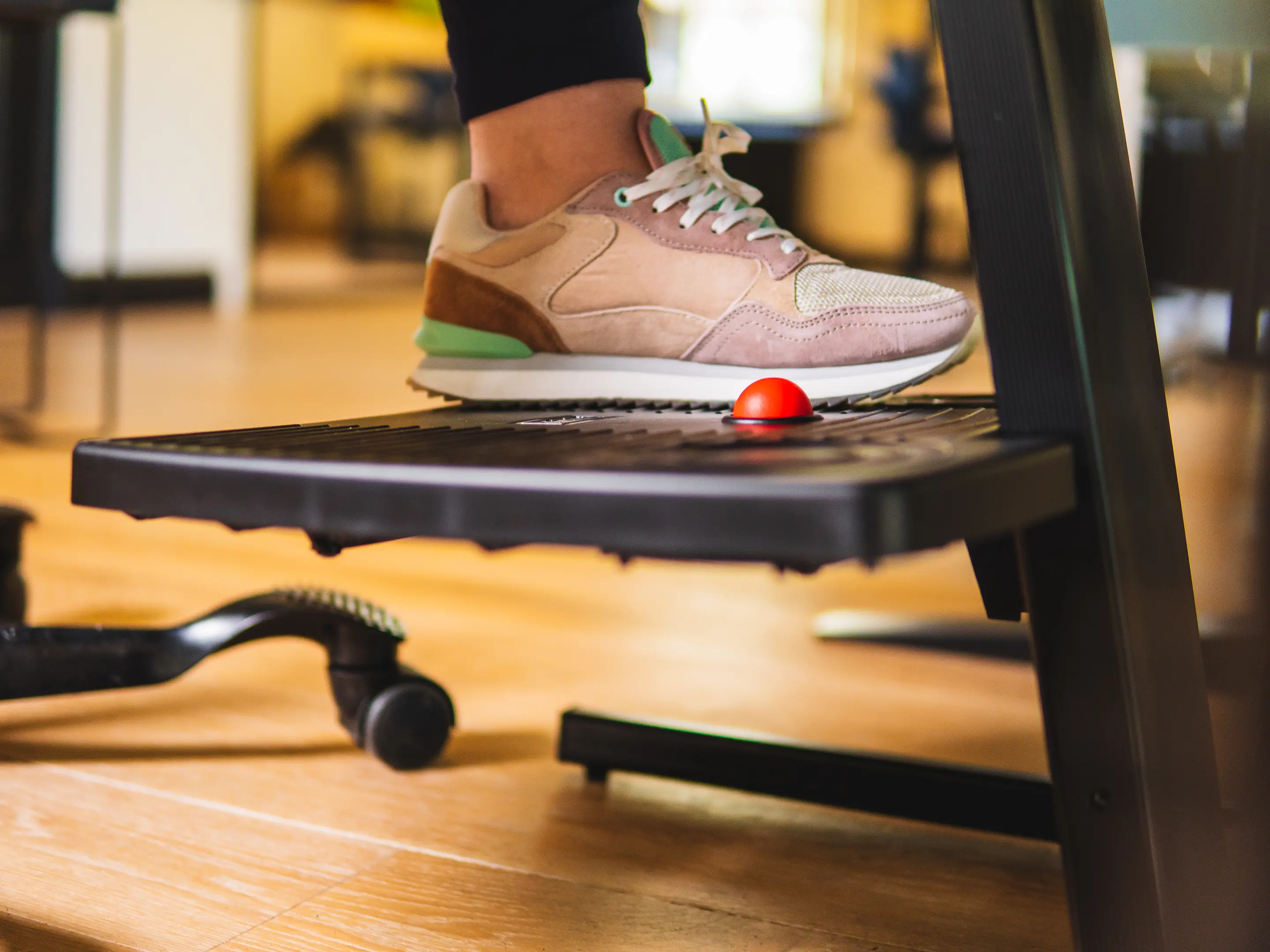 Een stabiele, ergonomische voetensteun met voetbediende hoogteverstelling. In hoogte verstelbaar van 40–170mm. Met antislip plateau en stalen frame verbetert hij houding, bloedsomloop en comfort op elke werkplek.