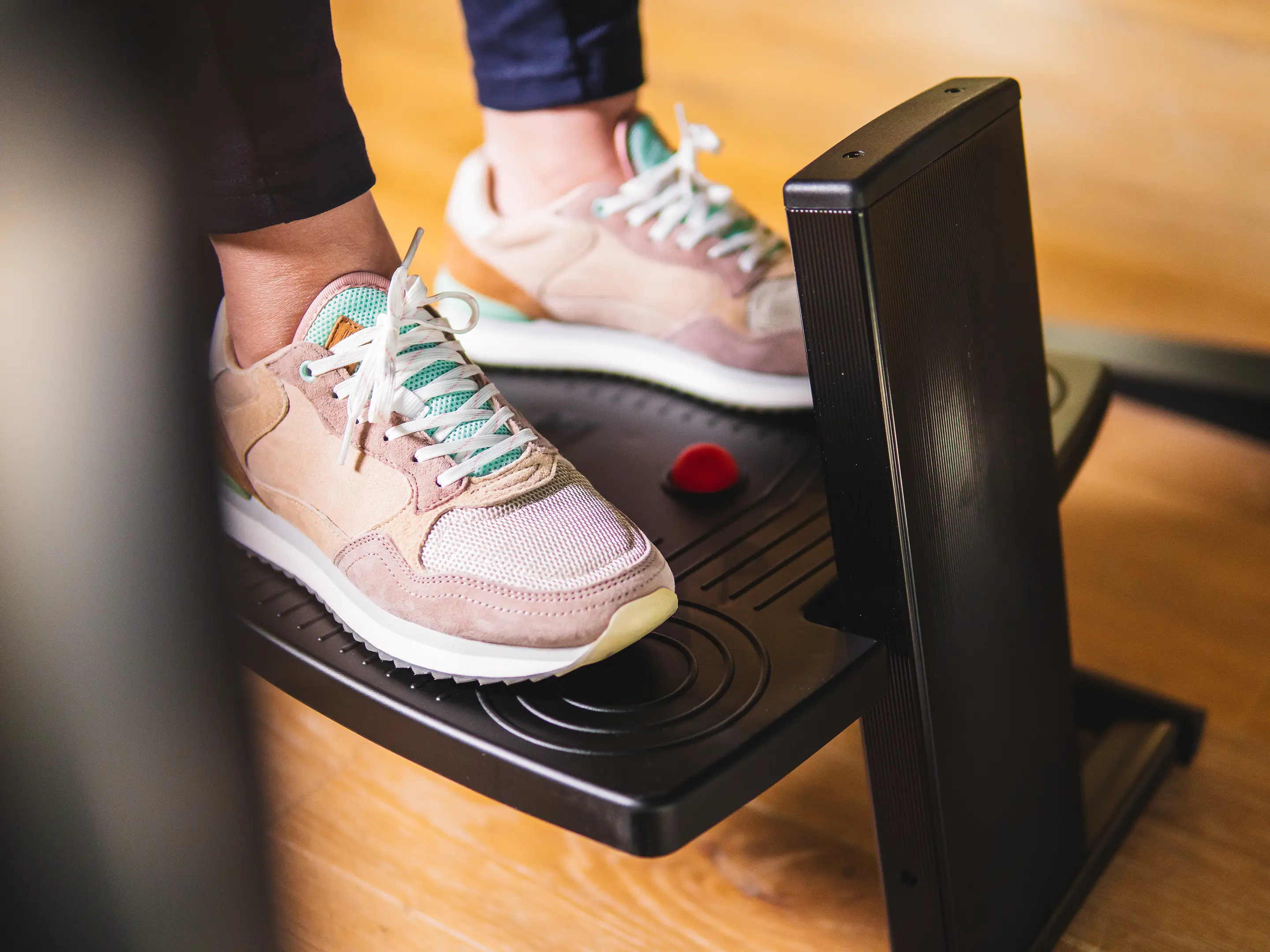 Een stabiele, ergonomische voetensteun met voetbediende hoogteverstelling. In hoogte verstelbaar van 40–300mm. Met antislip plateau en stalen frame verbetert hij houding, bloedsomloop en comfort op elke werkplek.