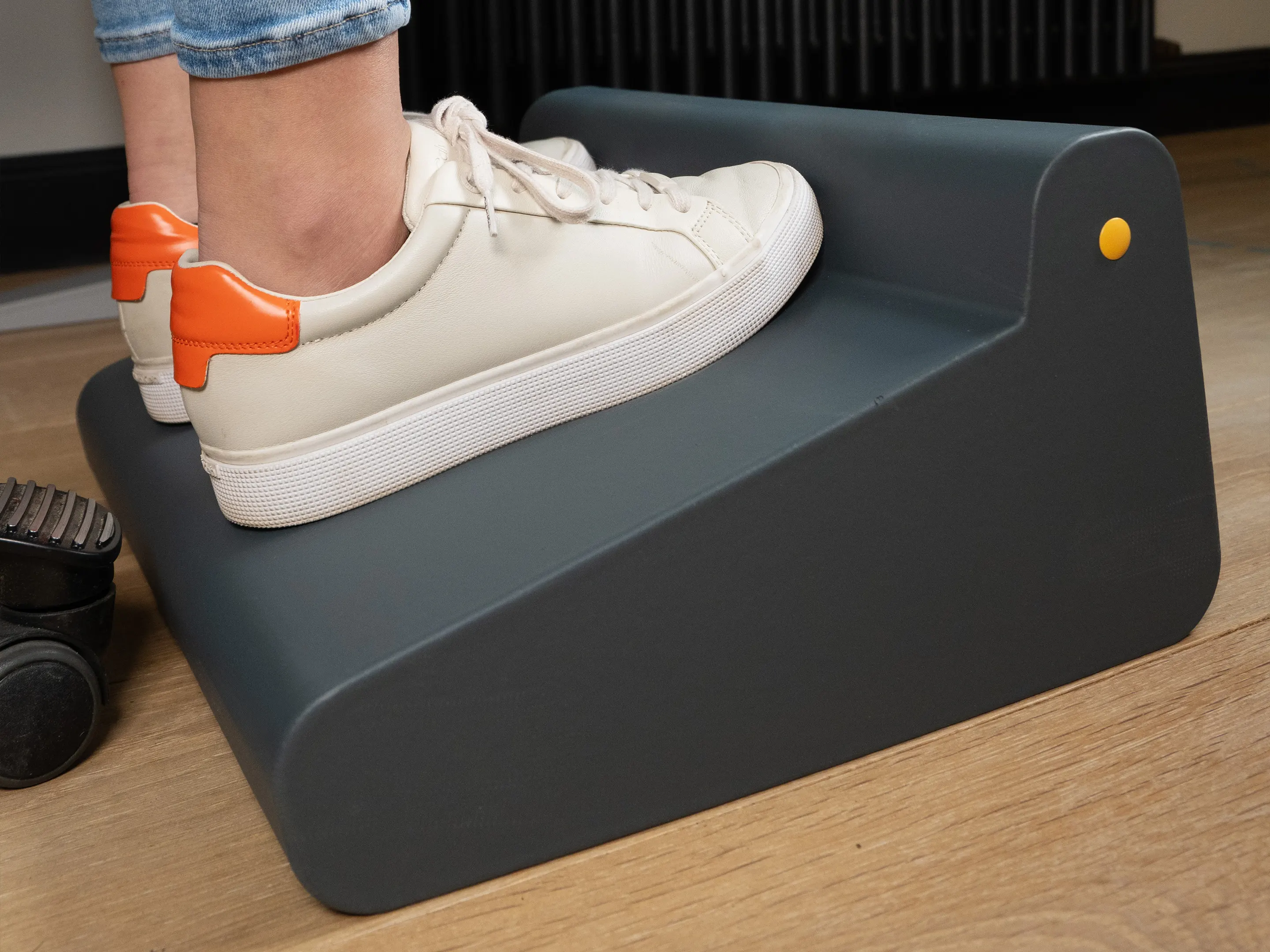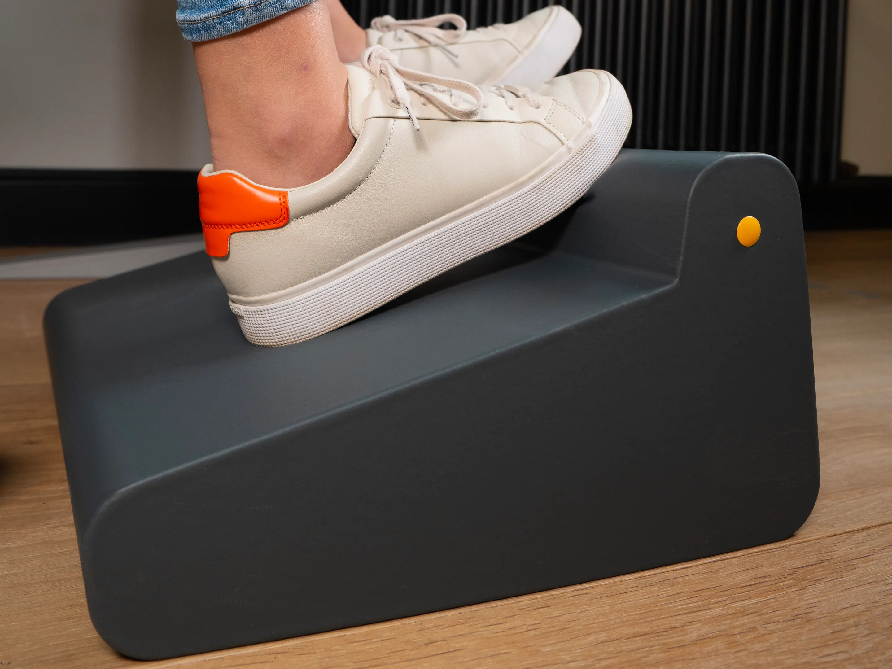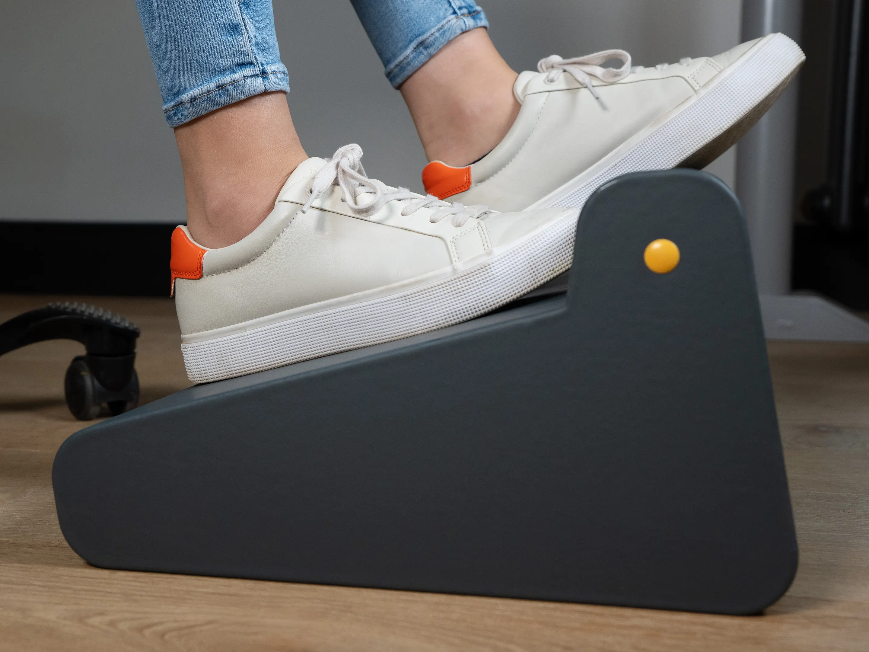 Een stille, lichte en comfortabele voetensteun die beweging stimuleert tijdens het zitten. Verbetert houding, bloedsomloop en comfort, is veilig, duurzaam en ideaal voor thuis en kantoor.