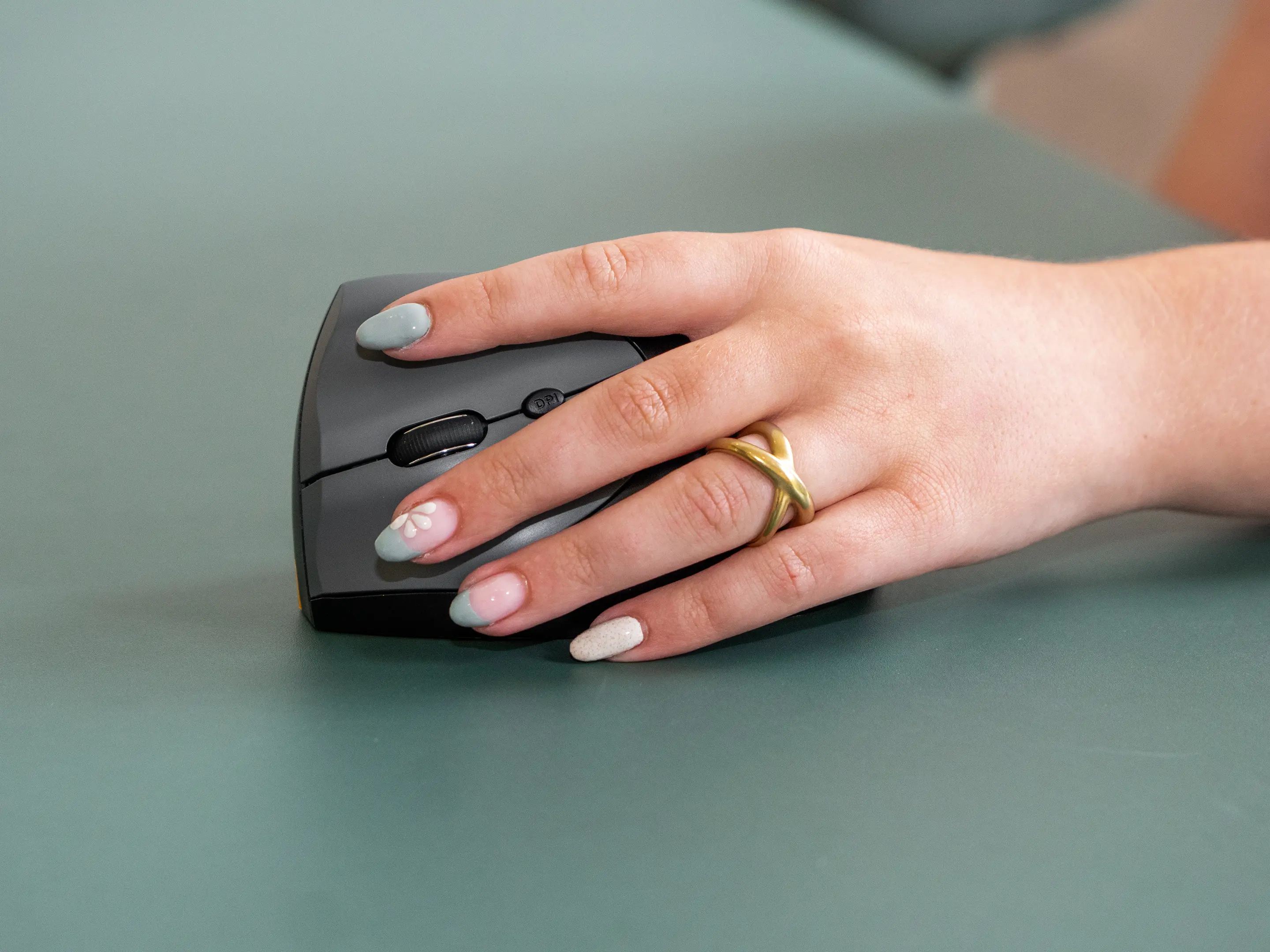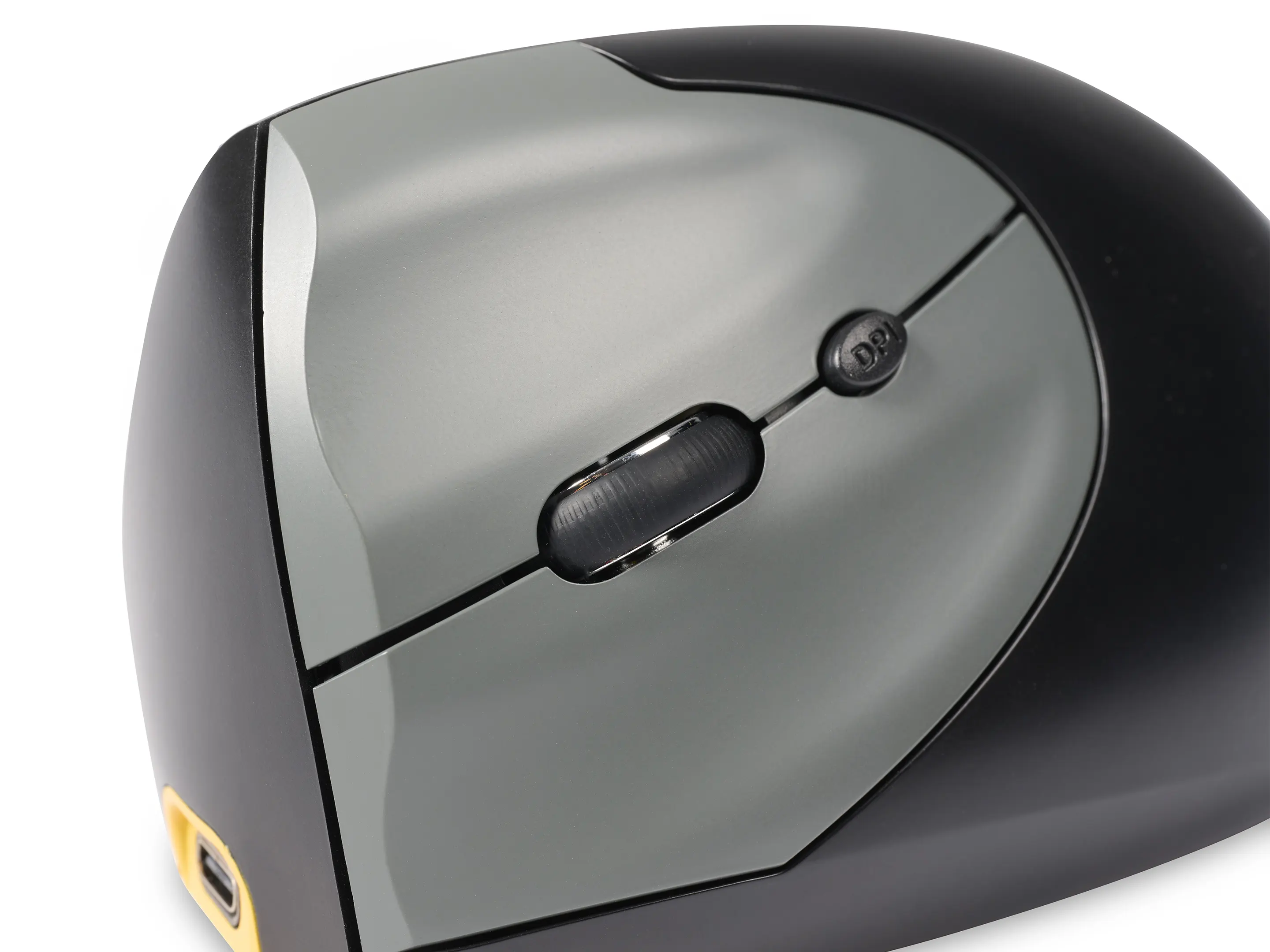 Geschikt voor kleine tot middelgrote handen. Afstand top middelvinger tot onderzijde palm tot 170mm. Verticaal + horizontaal scrollen, DPI instelbaar en klikbaar scrollen.