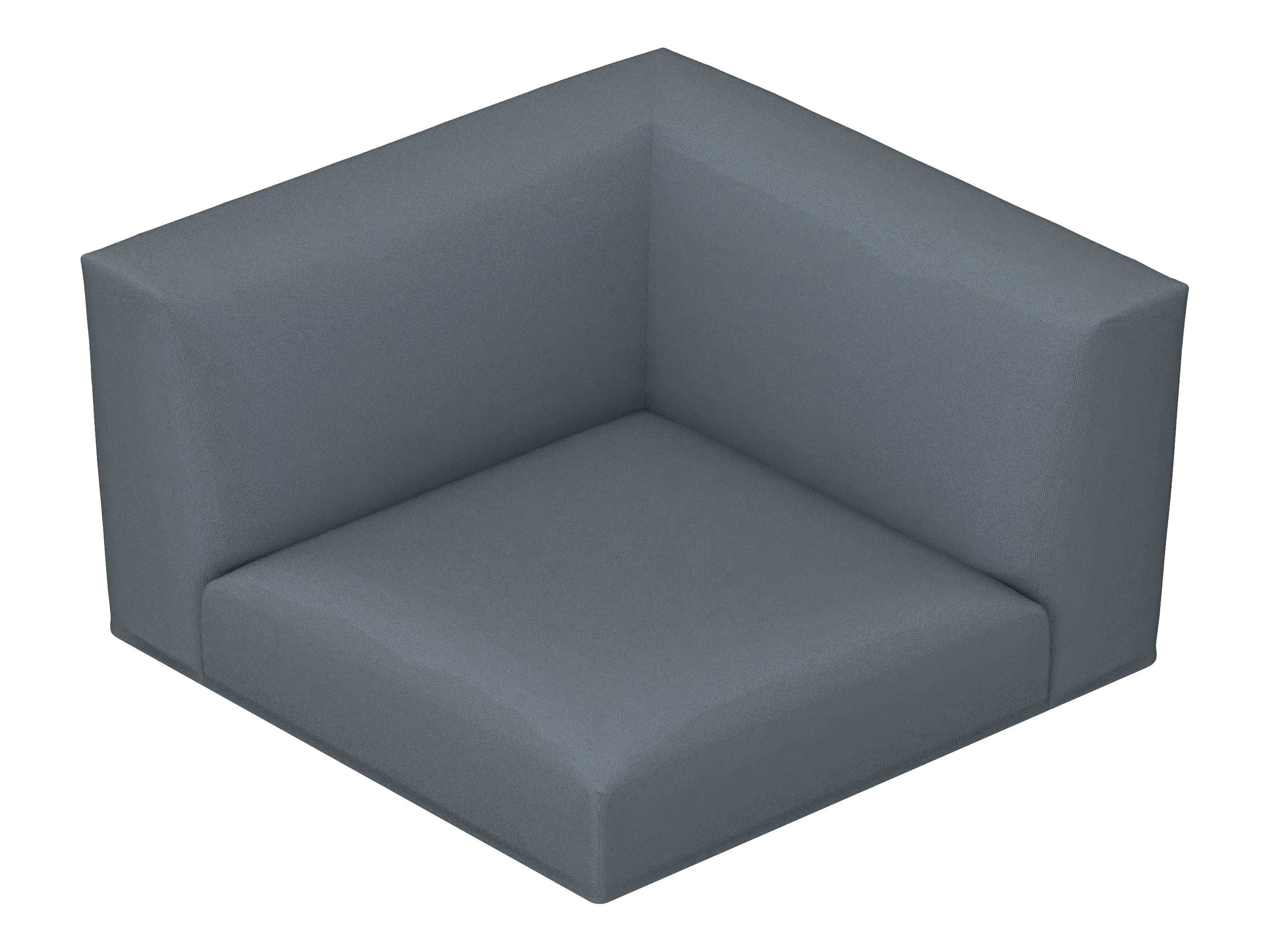 Volledig gestoffeerd hoekstuk met armleuning en rugleuning, zonder onderstel. Onderstel moet los worden bijbesteld. Afmeting: 1070 x 1070 x 700mm (BxD), zithoogte: 380mm.