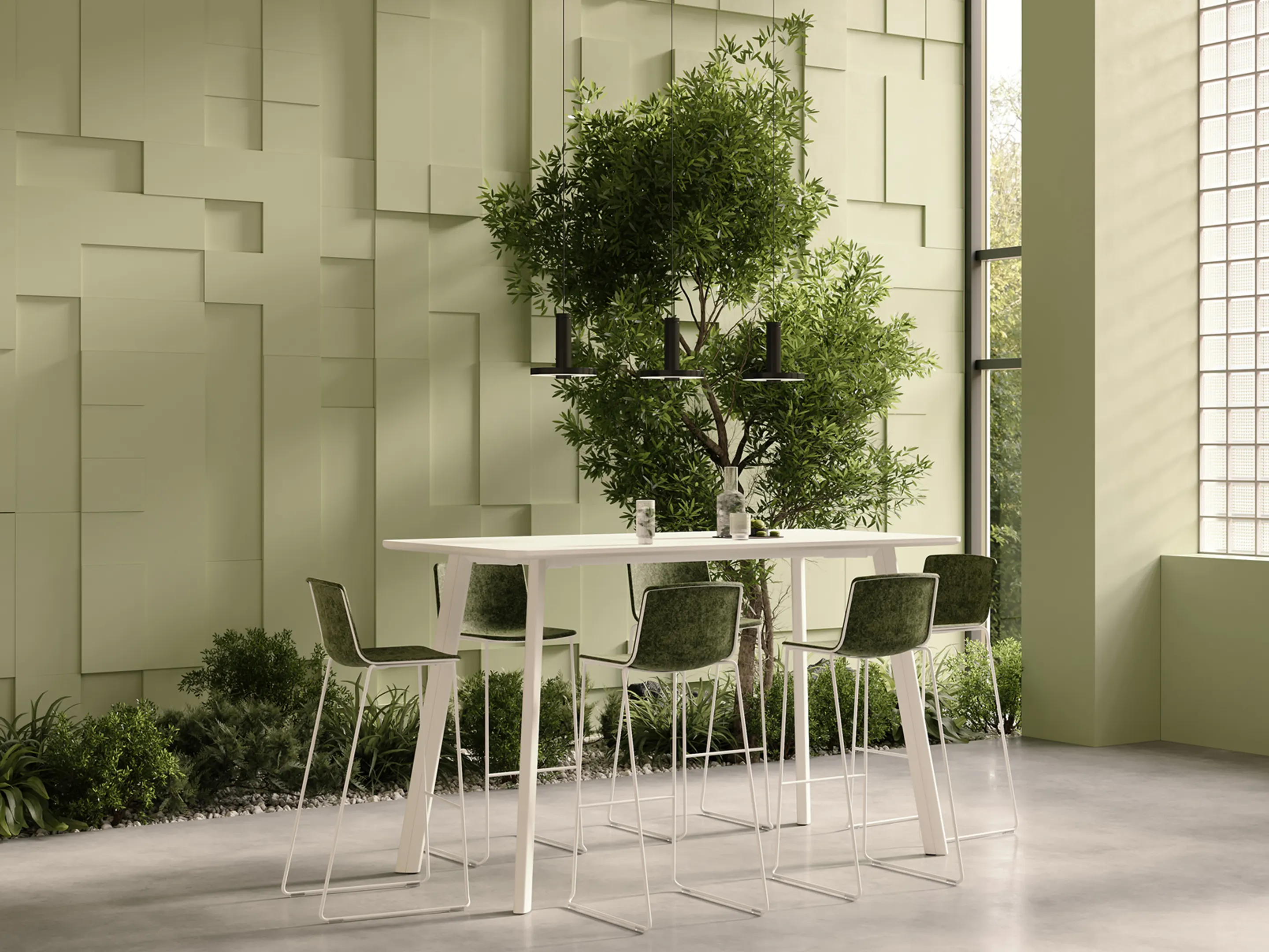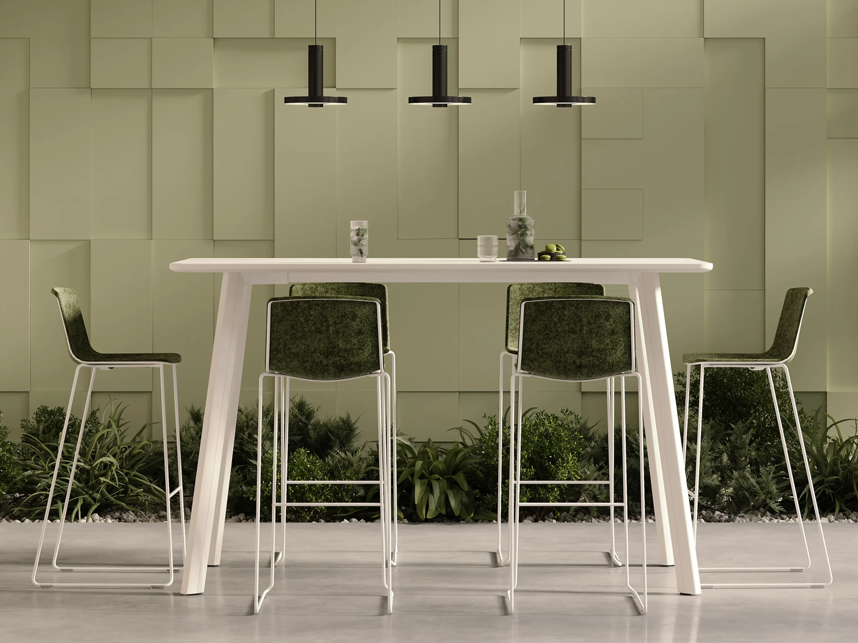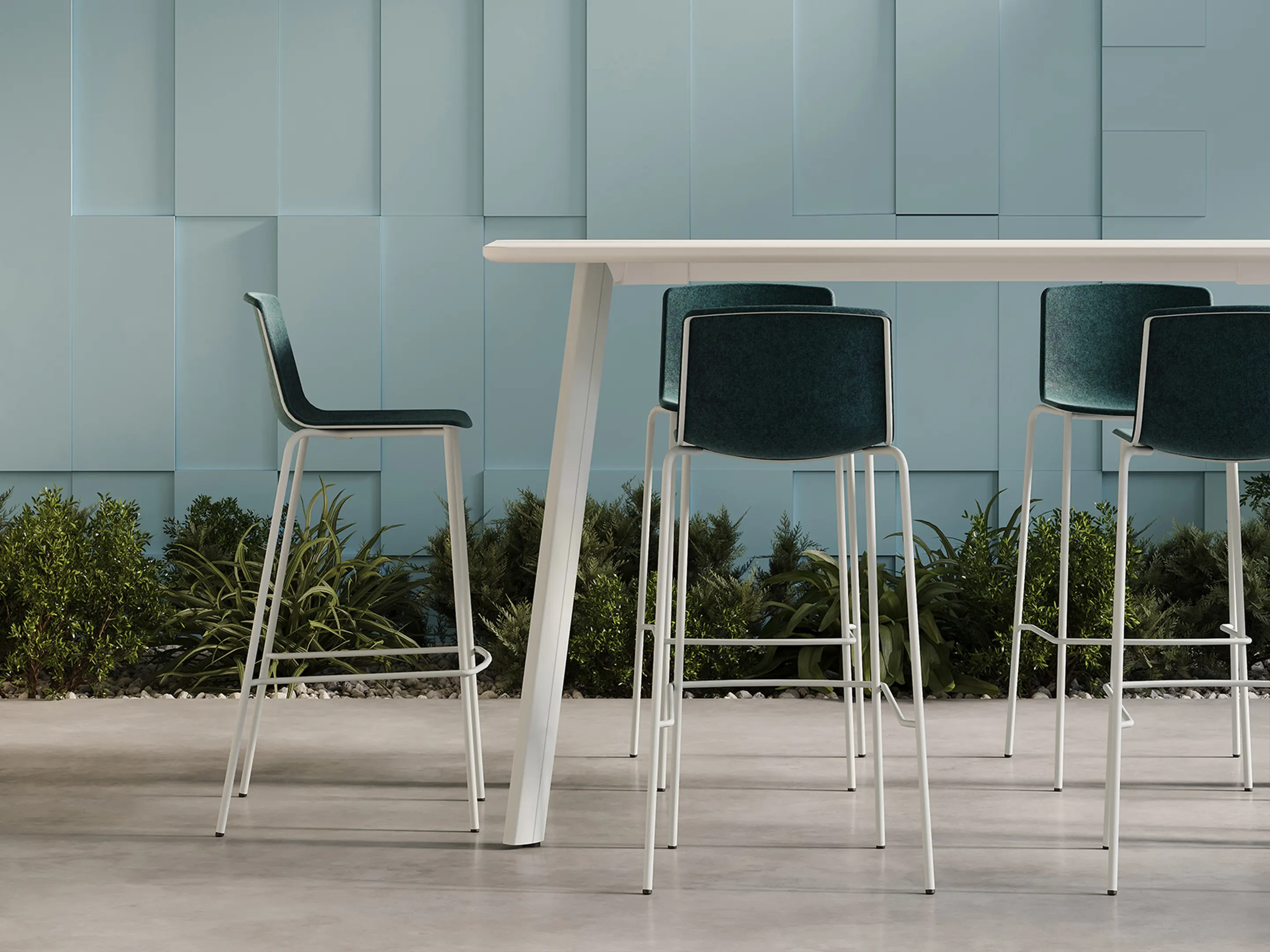 Barstoel op een 4-poots frame met zithoogte van 740mm en een volledig vilten kuip. Stapelbaar tot 4 stuks.