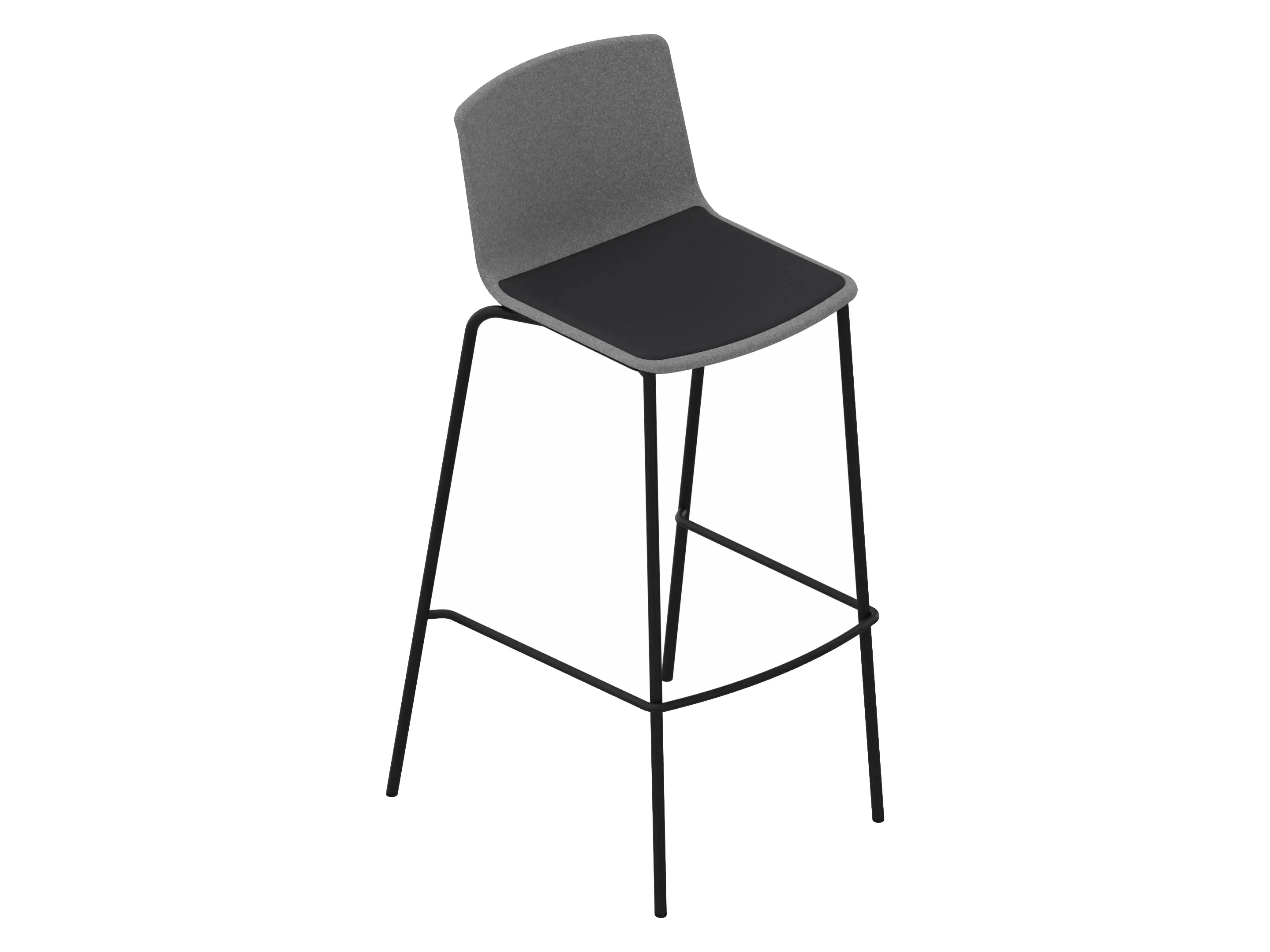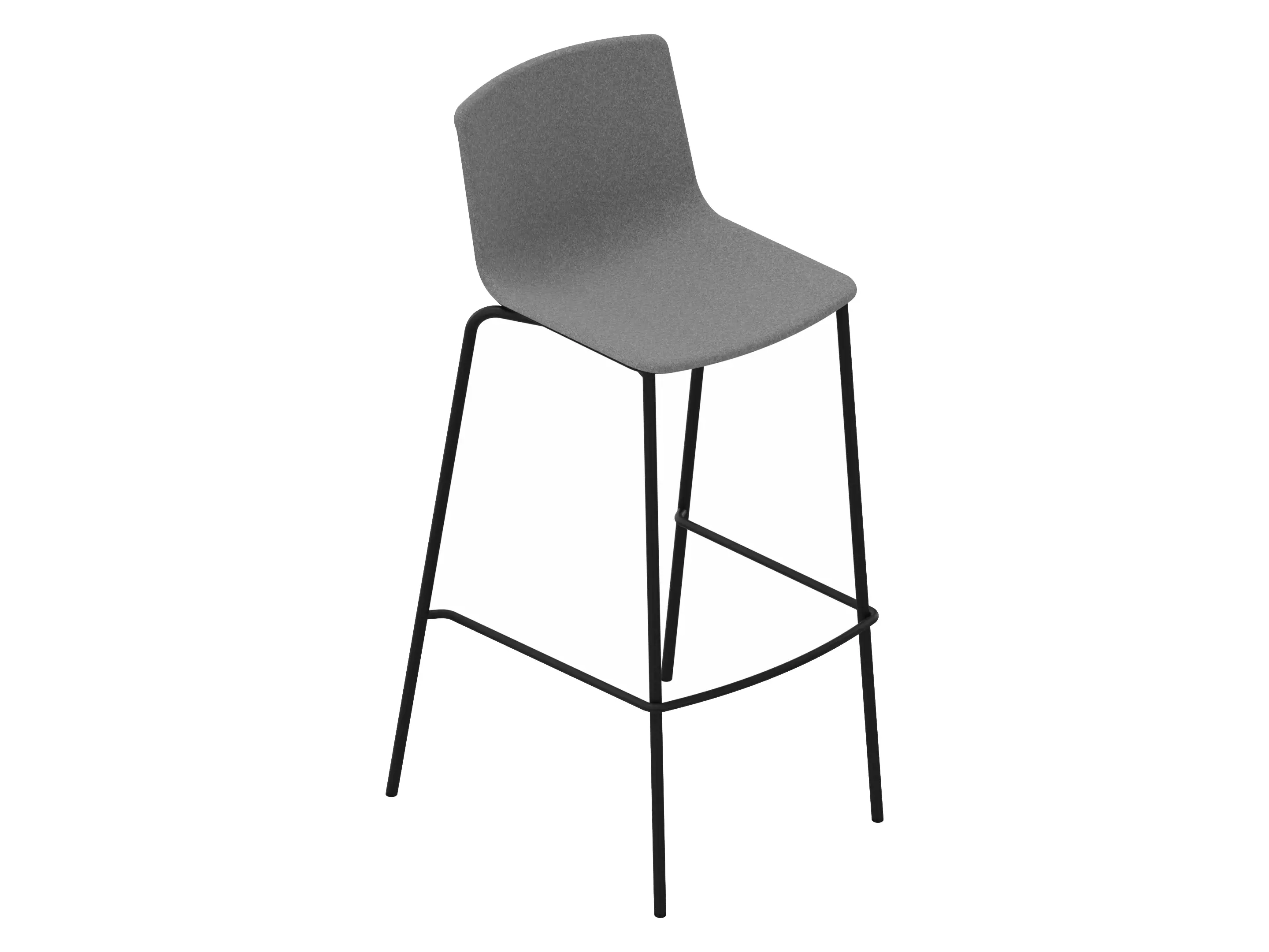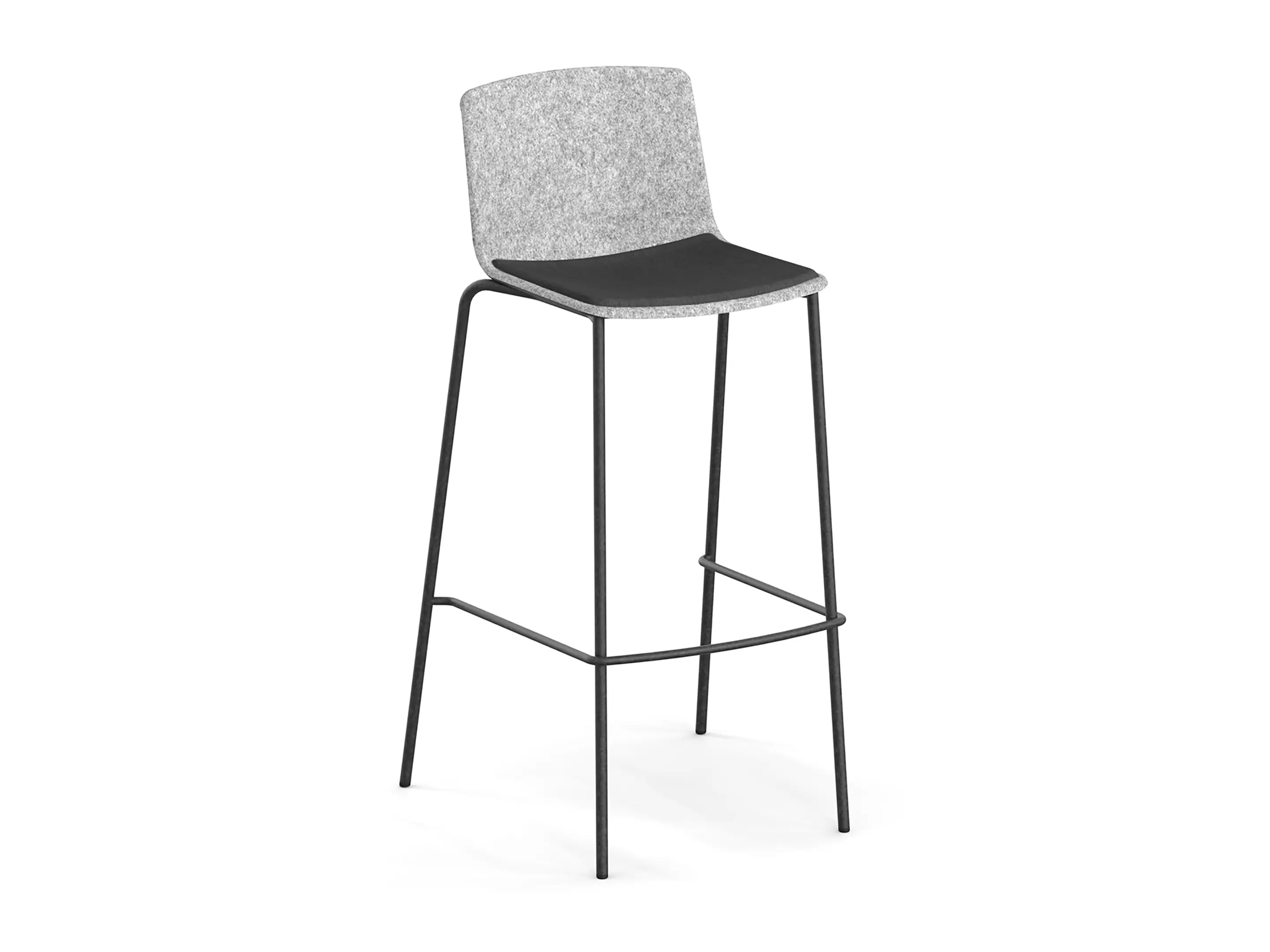 Barstoel op een 4-poots frame met zithoogte van 740mm en een vilten kuip met opdekstoffering op de zitting. Stapelbaar tot 4 stuks.