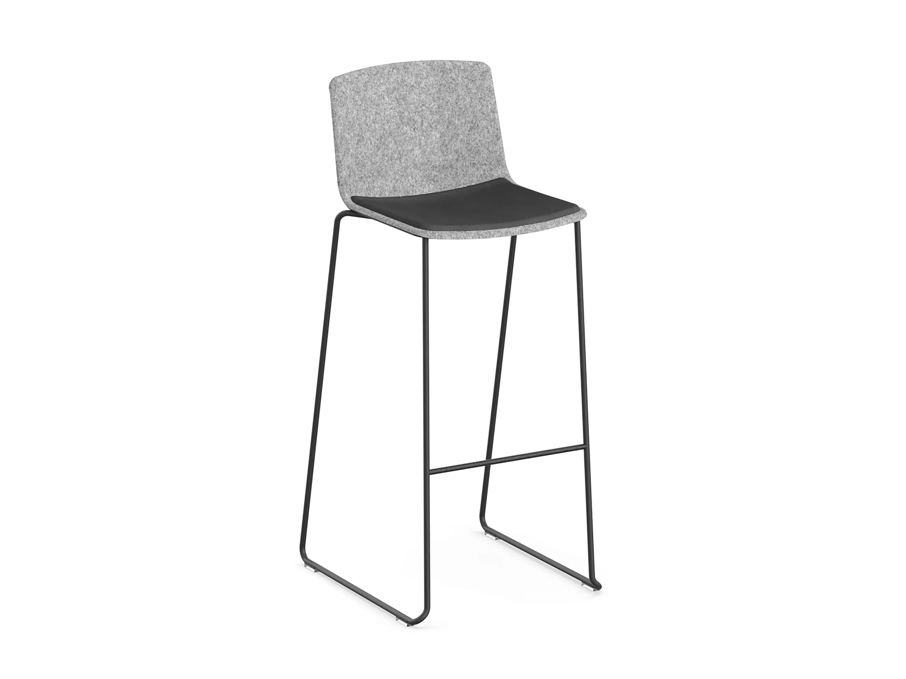 Barstoel op een sledeframe met zithoogte van 740mm en een volledig vilten kuip. Stapelbaar tot 4 stuks.