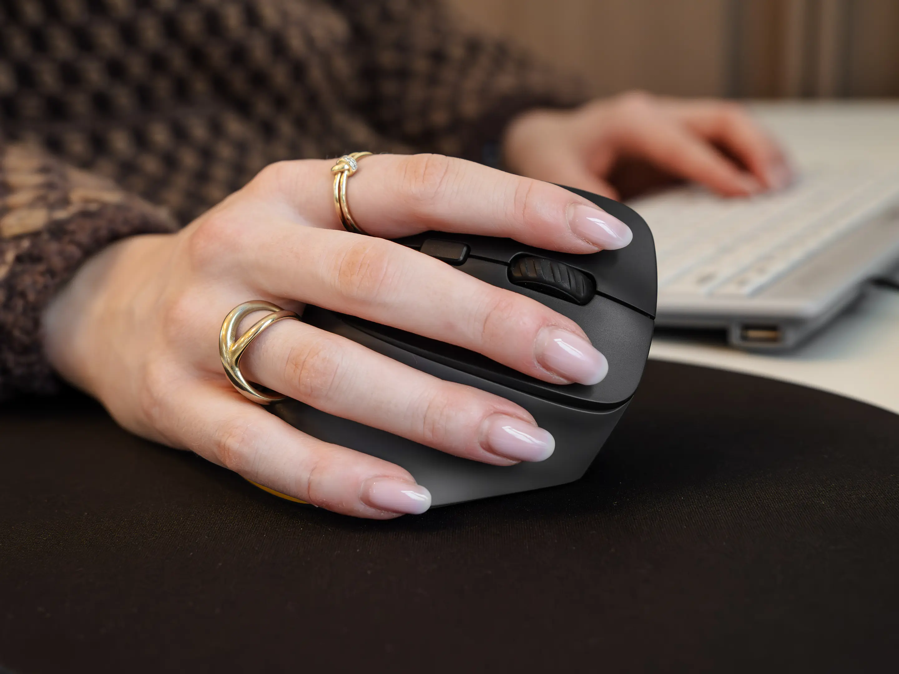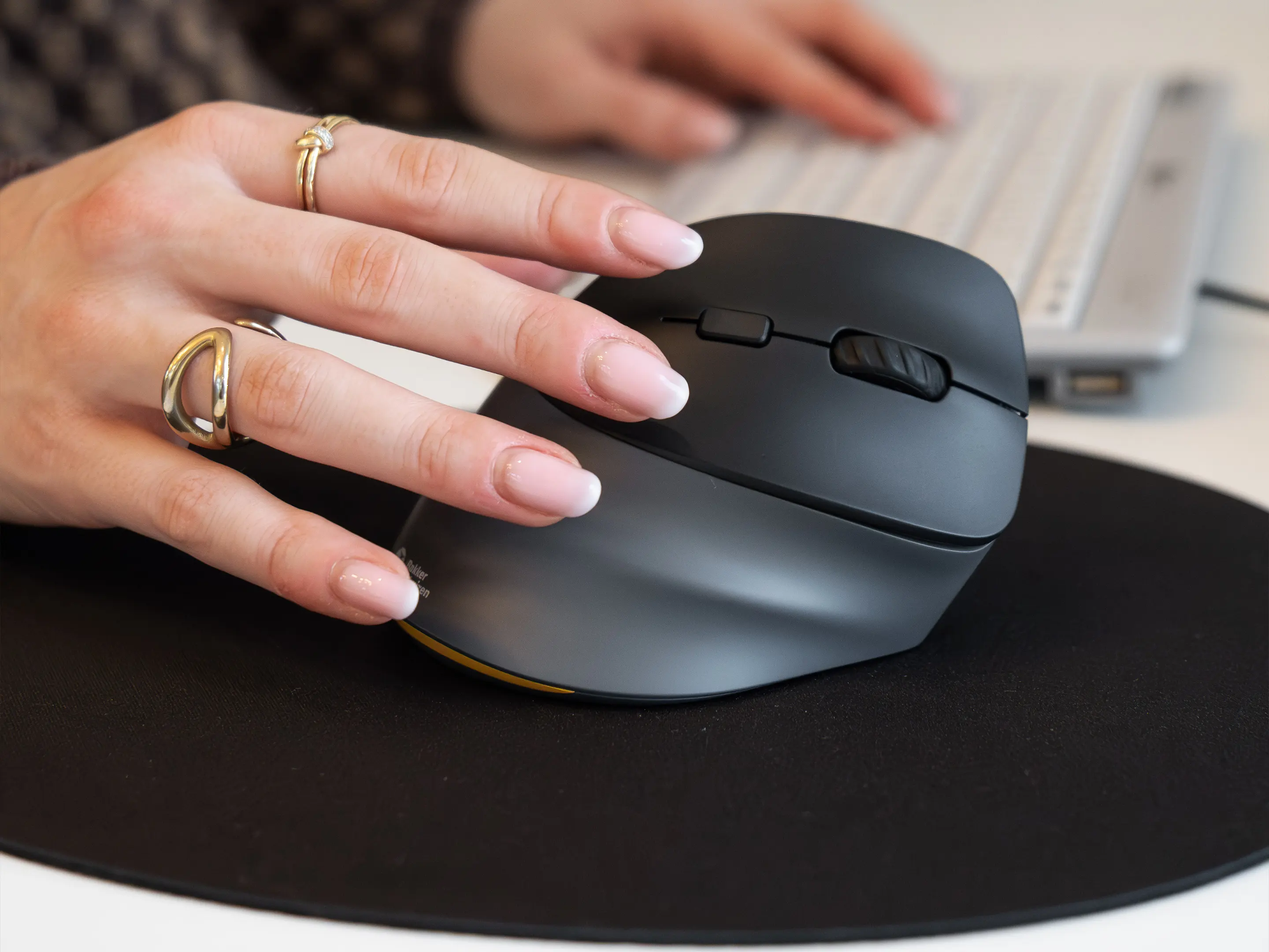 Verbinding mogelijk via: USB-C kabel, draadloos via USB-C dongle en bluetooth. Verticaal scrollen, DPI instelbaar, vorige/volgende duimknoppen.