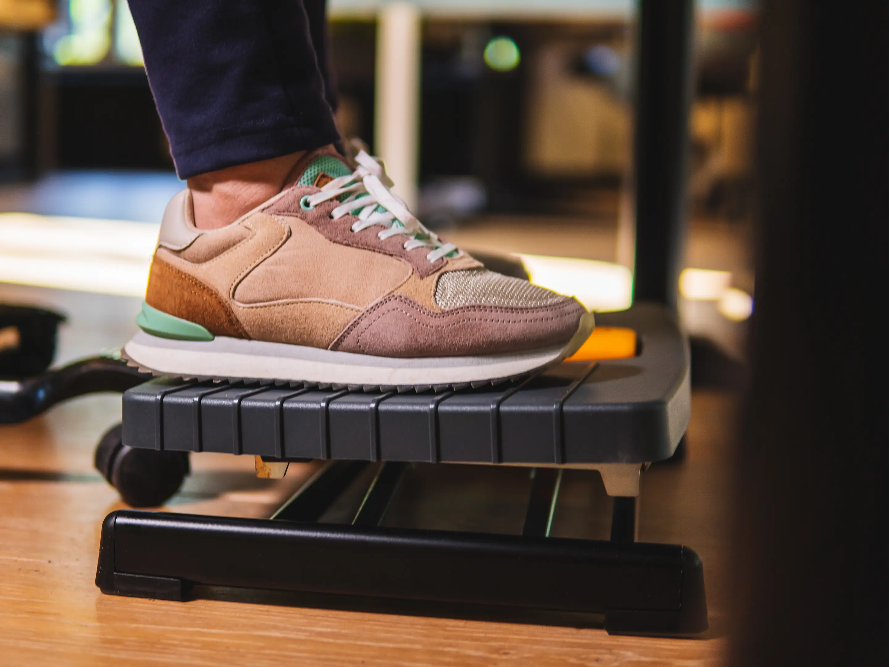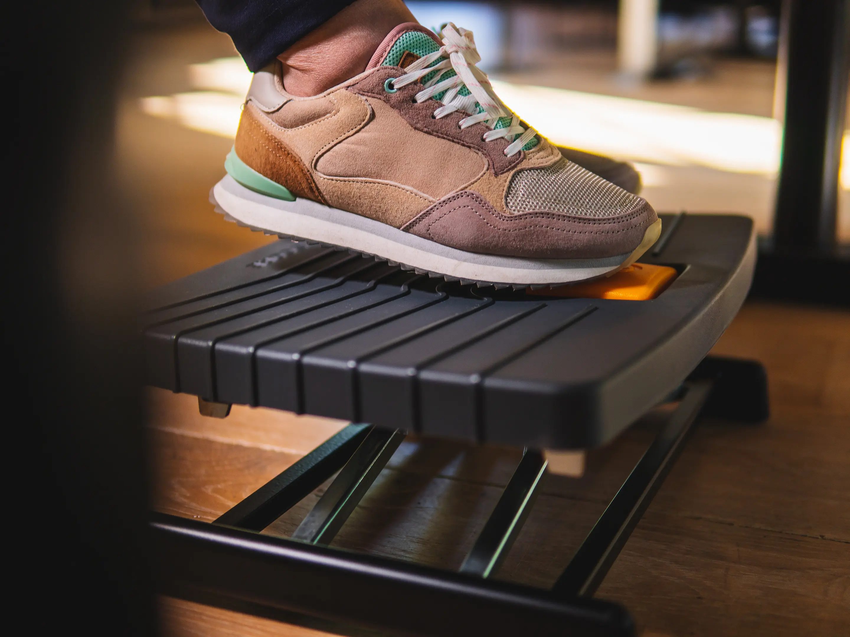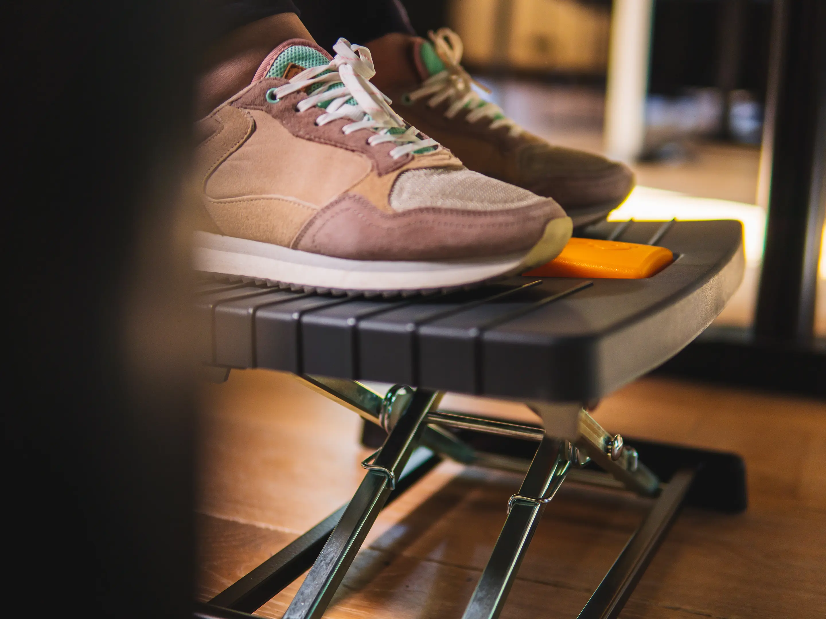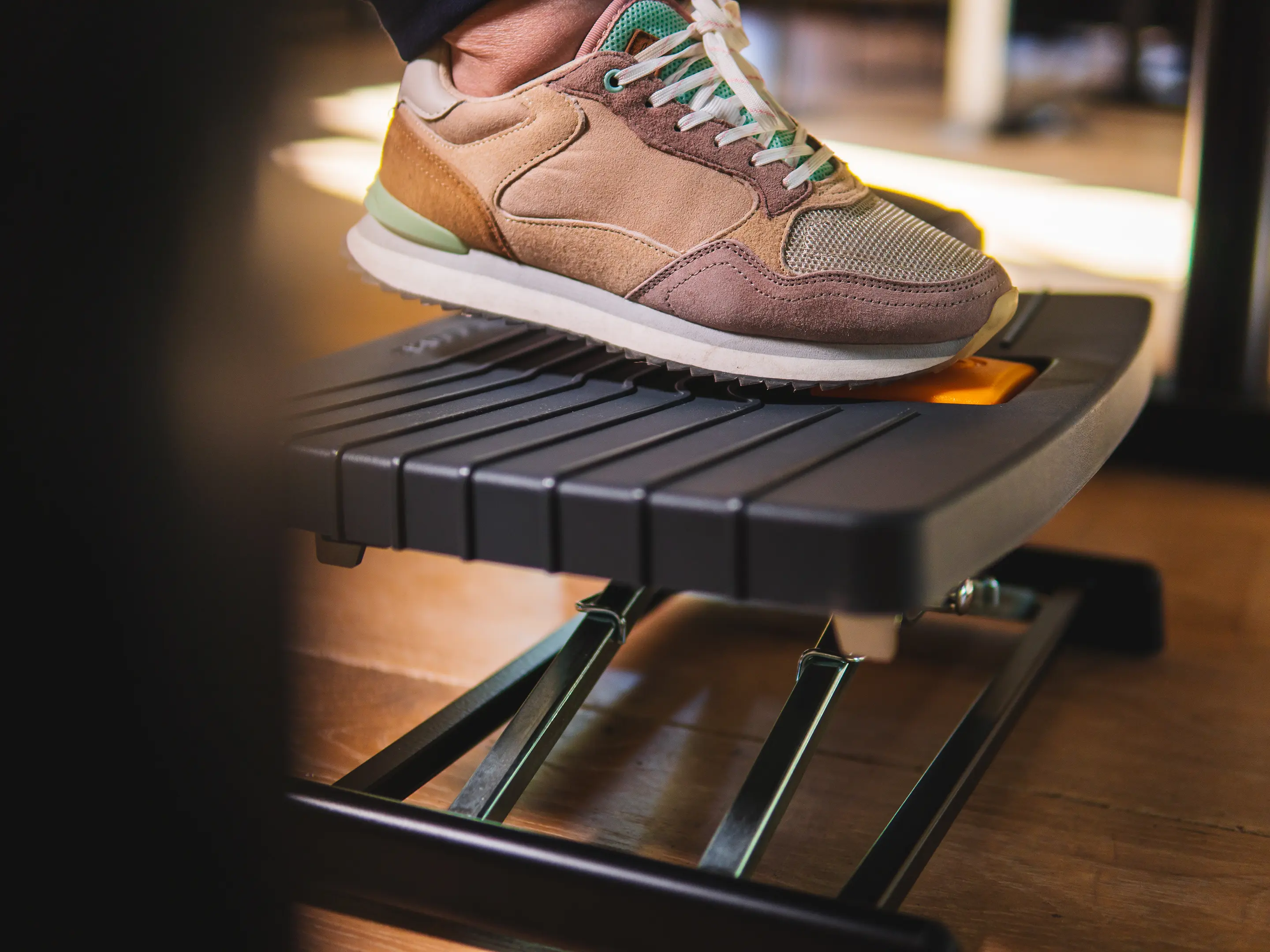 Een compacte, robuuste voetensteun die benen ondersteunt en de bloedsomloop verbetert. Eenvoudig met één voet verstelbaar in hoogte (80–300 mm) en hoek (0–90°), met antislip oppervlak voor comfortabel en ergonomisch werken.