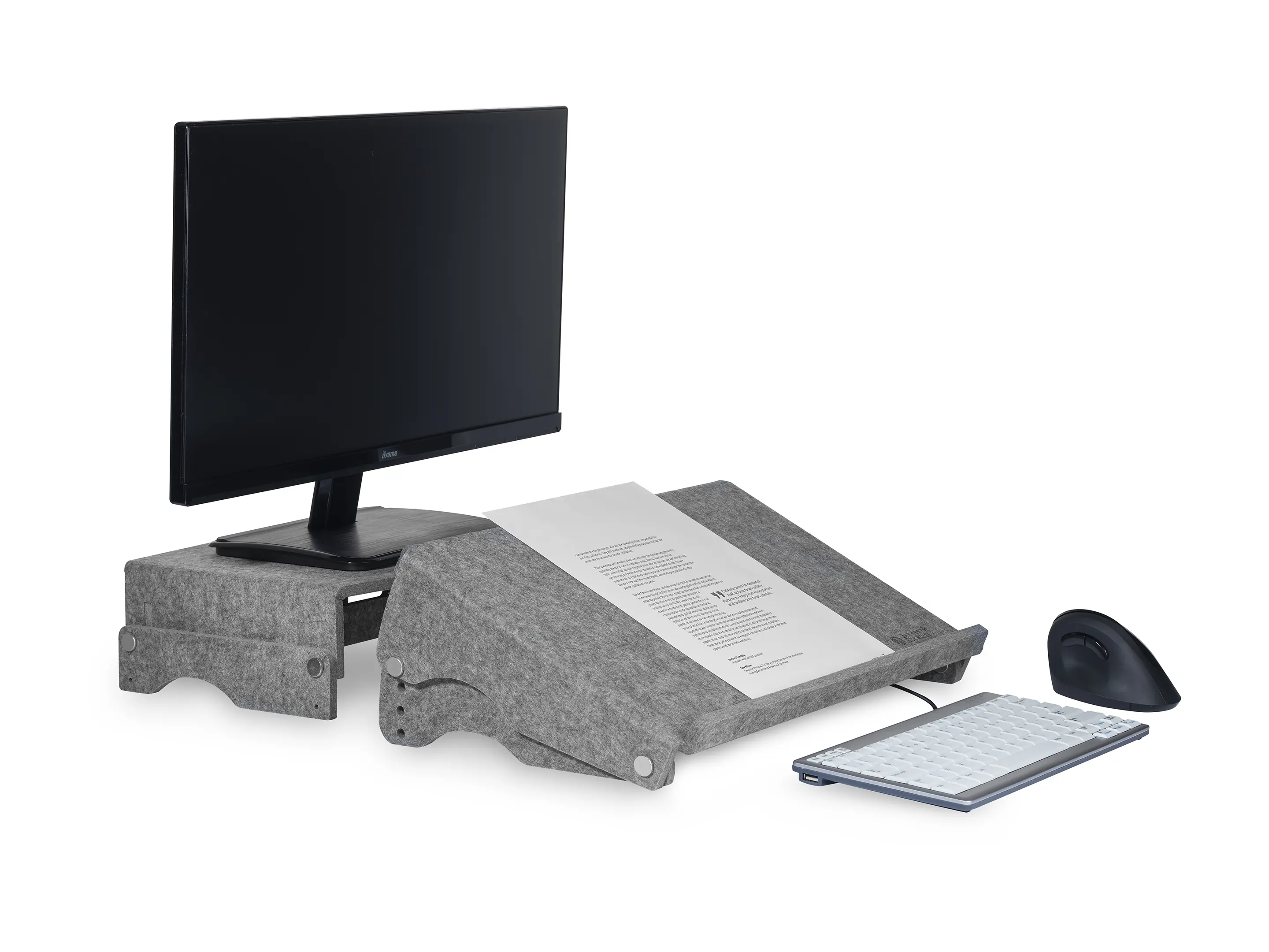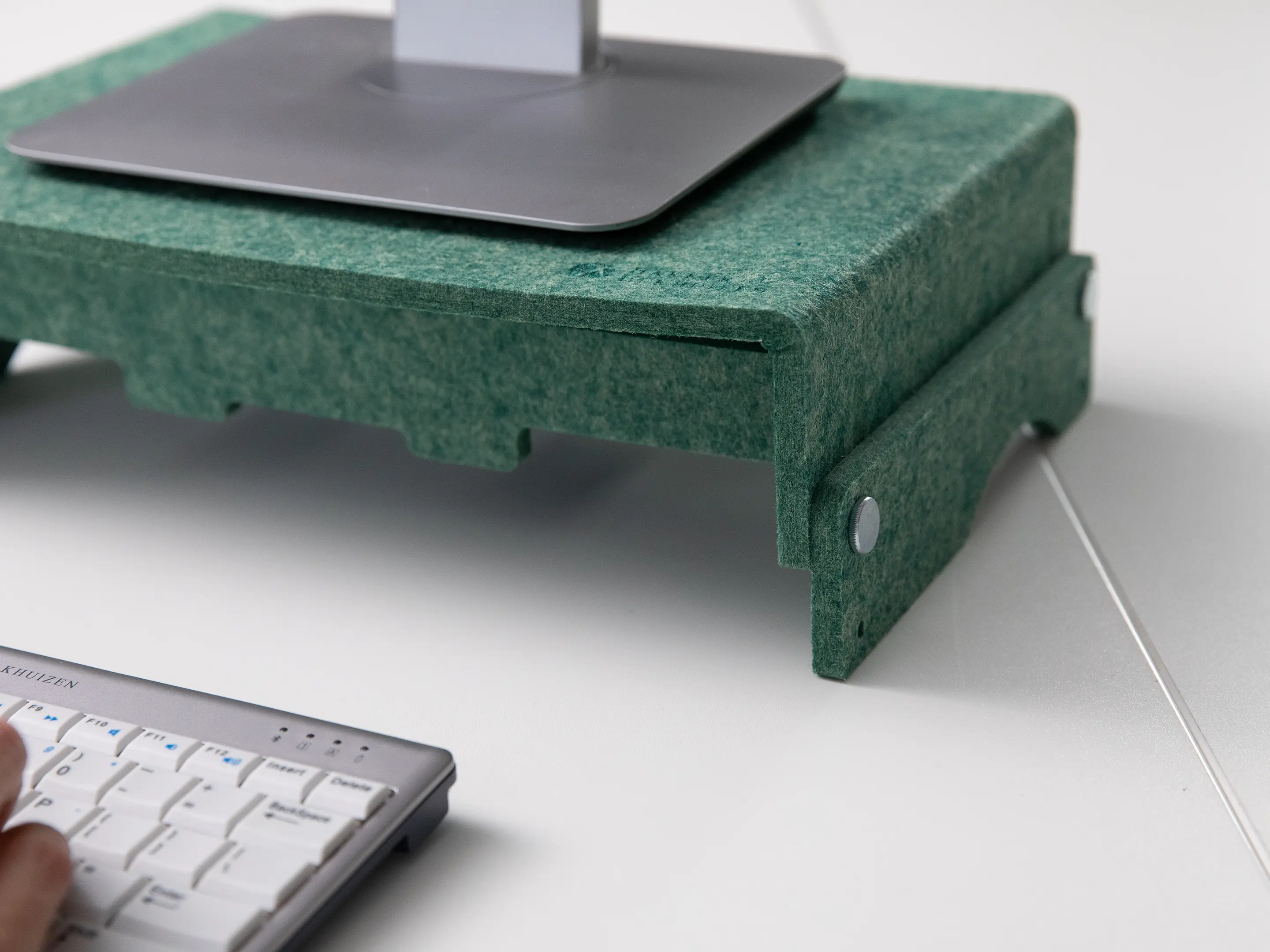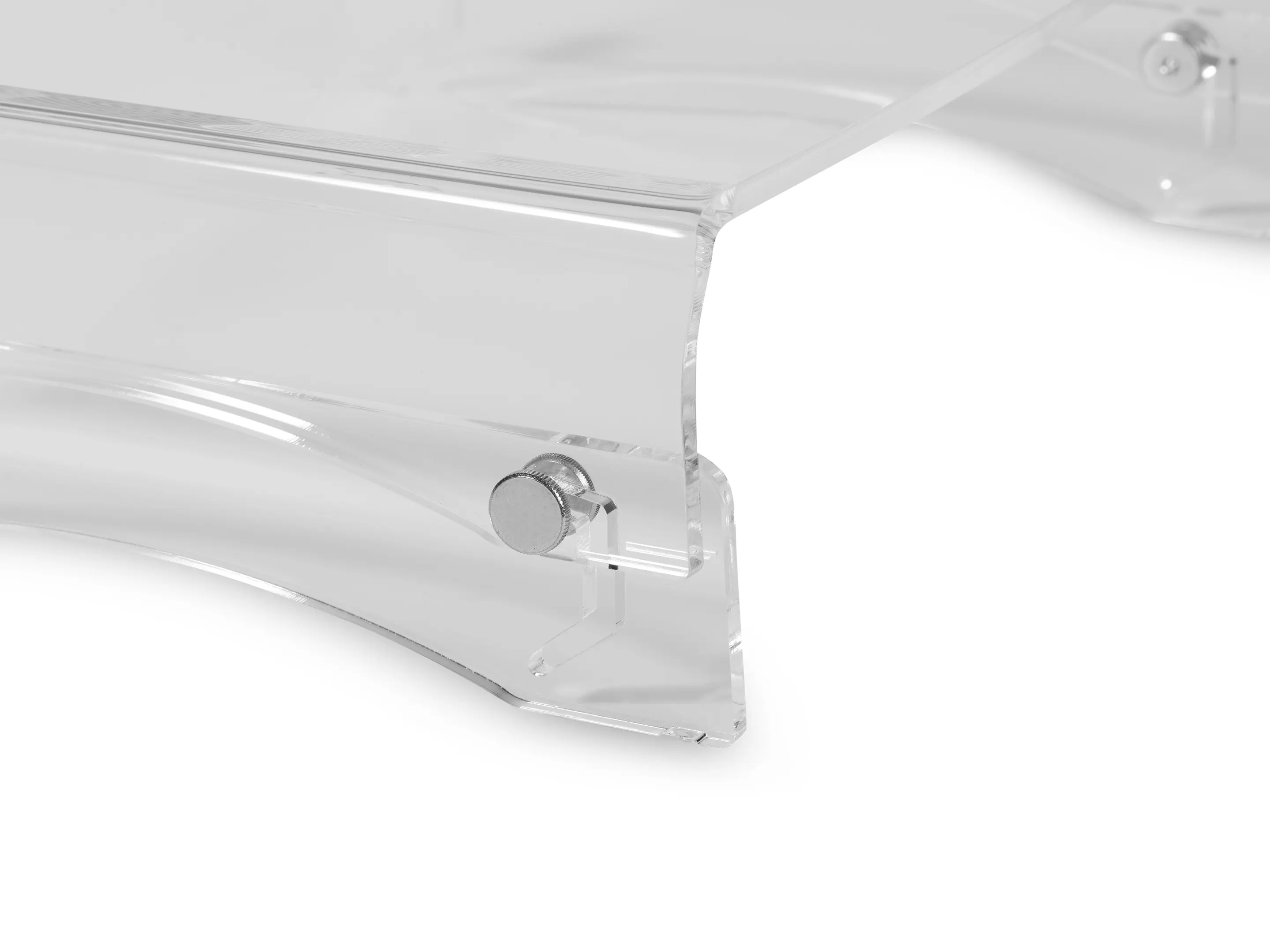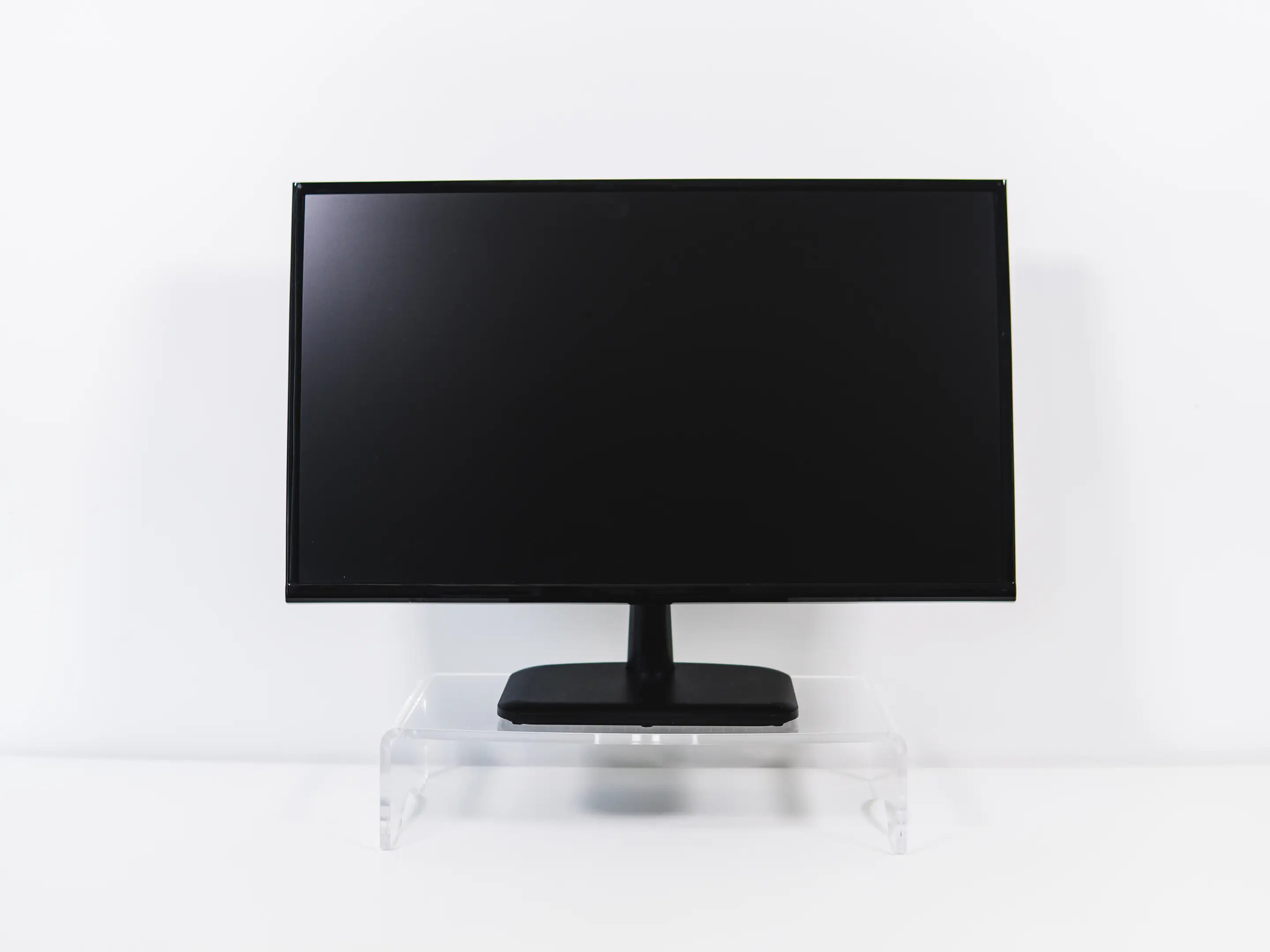 Een in hoogte verstelbare monitorstandaard van transparant acryl. Met twee hoogtes (75 en 105 mm) zorgt hij voor een ergonomische werkhouding, stabiele opstelling tot 10 kg, extra bureauruimte en netjes kabelbeheer.