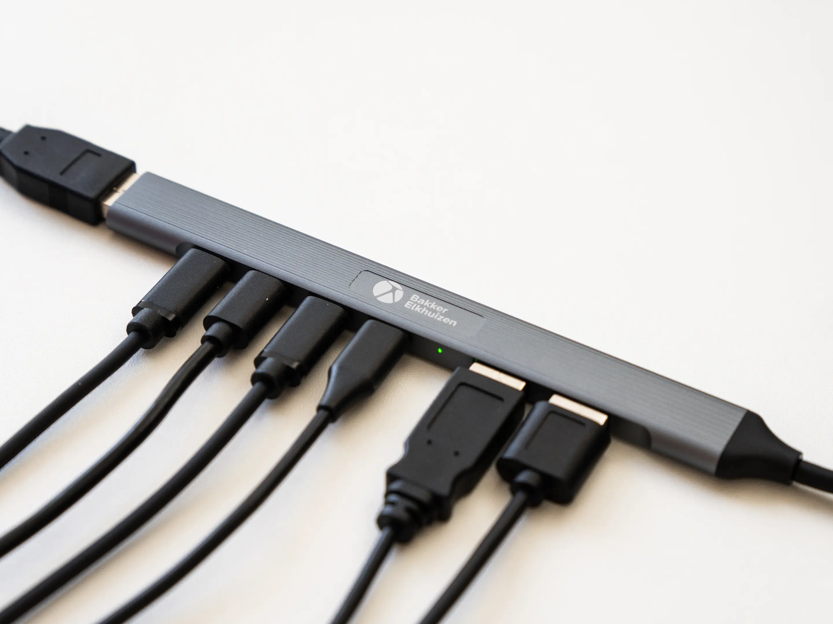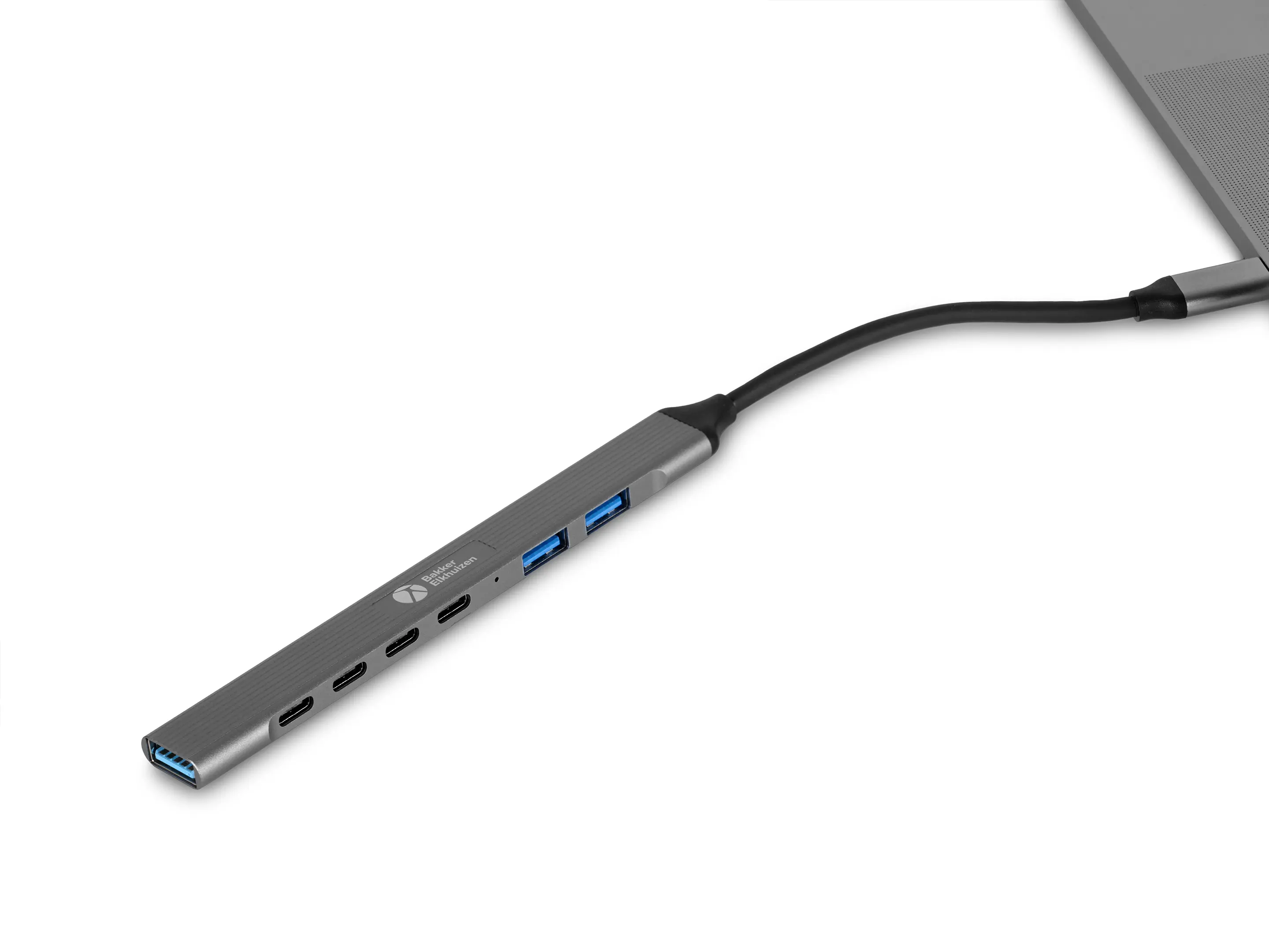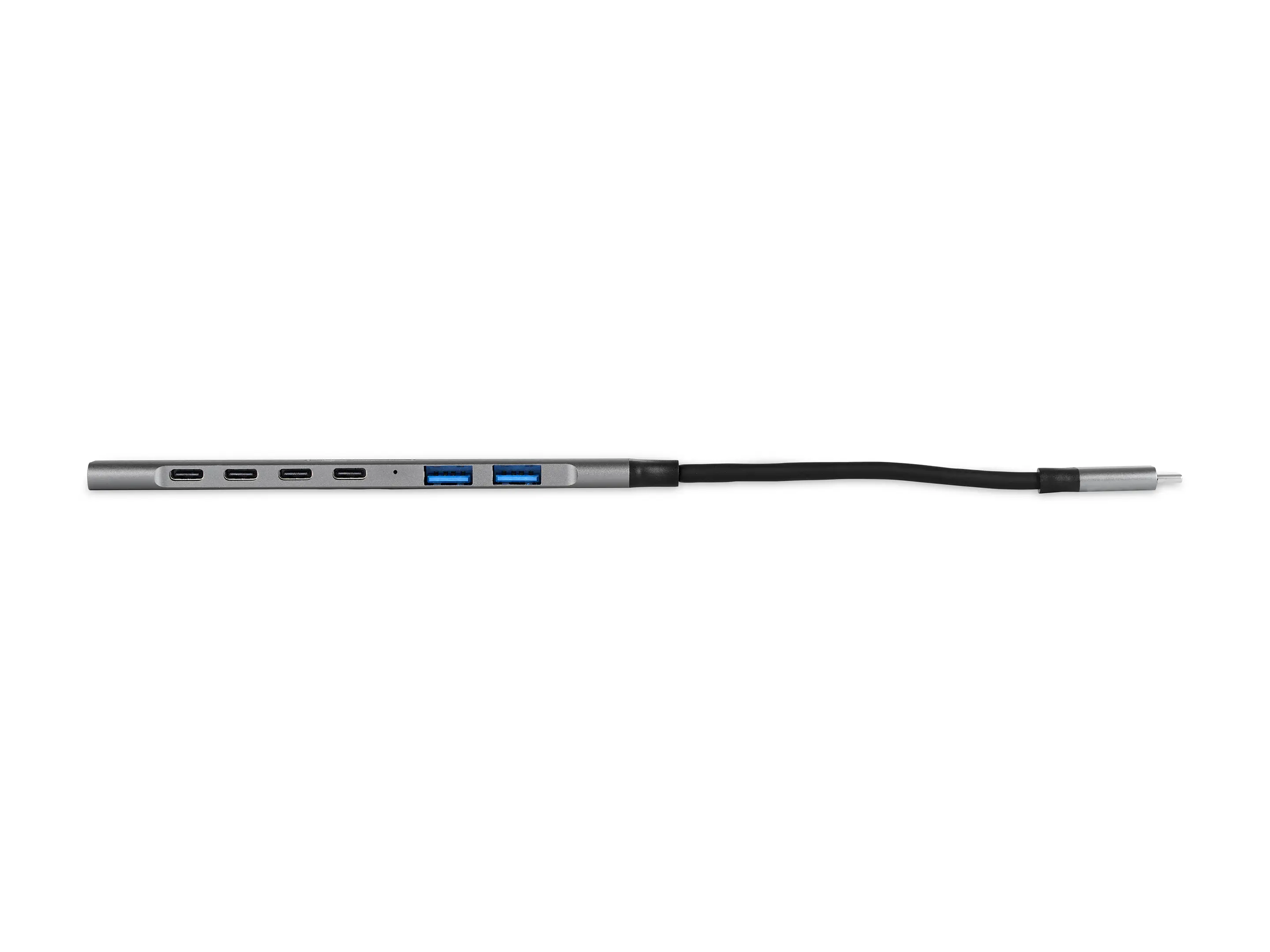 USB-hub met 4x USB-C 480 Mbps-poorten, 2x USB-A 480 Mbps-poorten en 1x USB-A USB 3.0, 5 Gbps-poort voor snelle transfers via SSD of harde schijf.