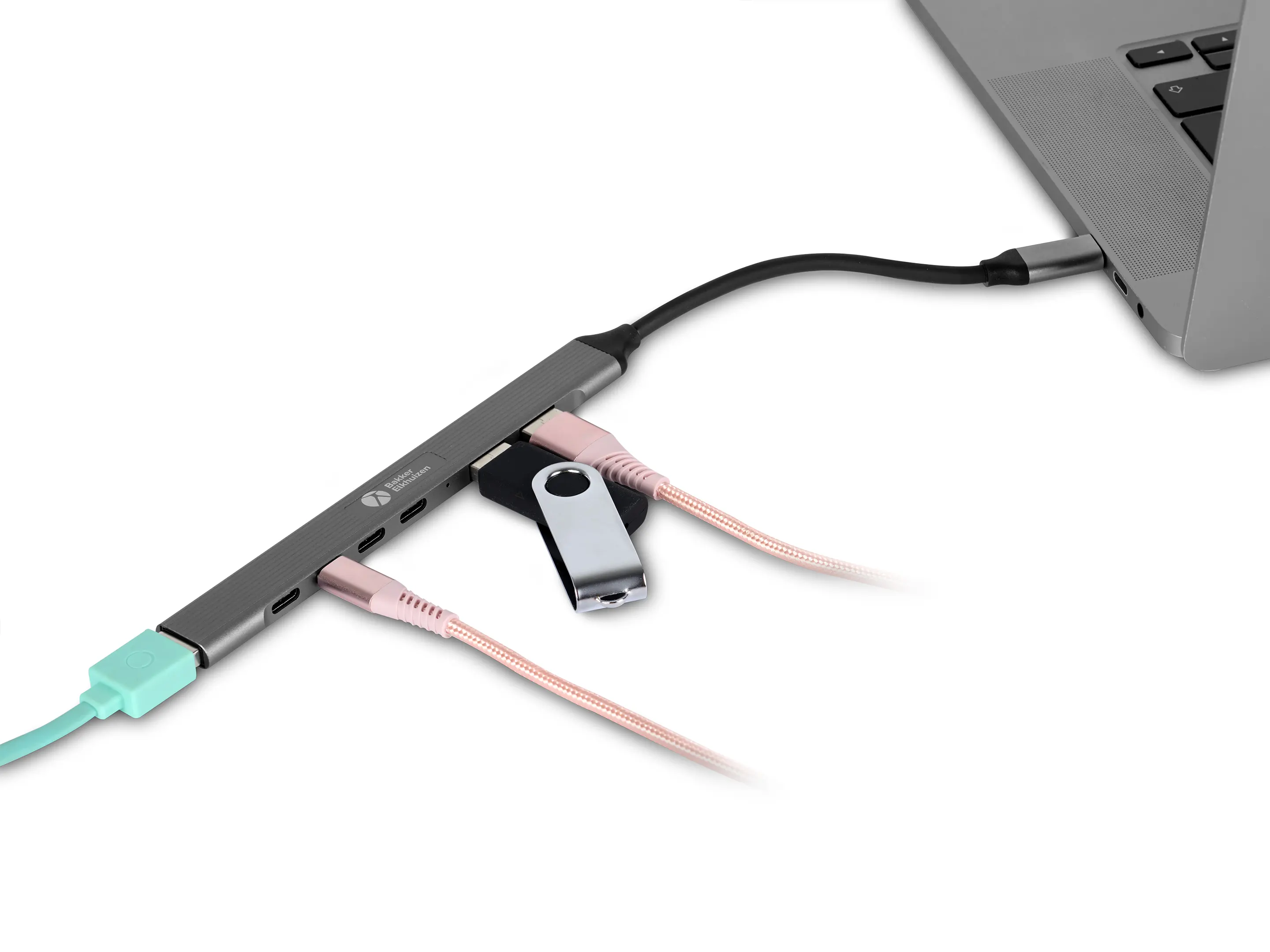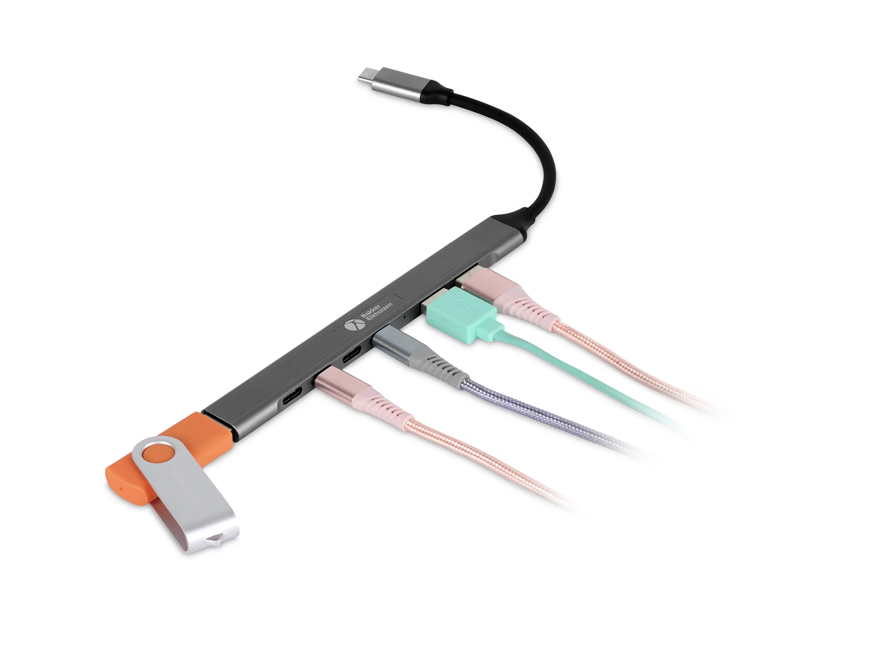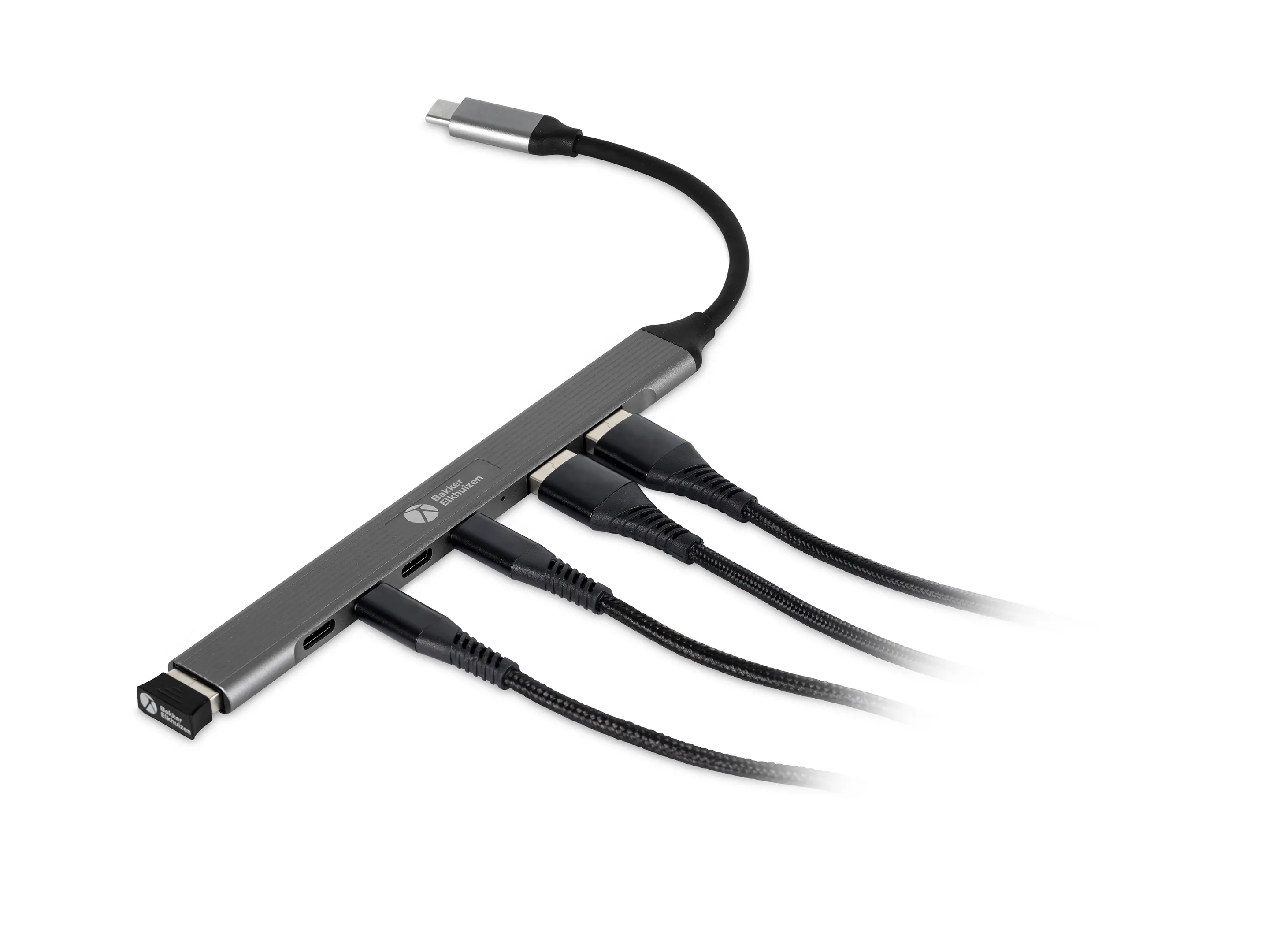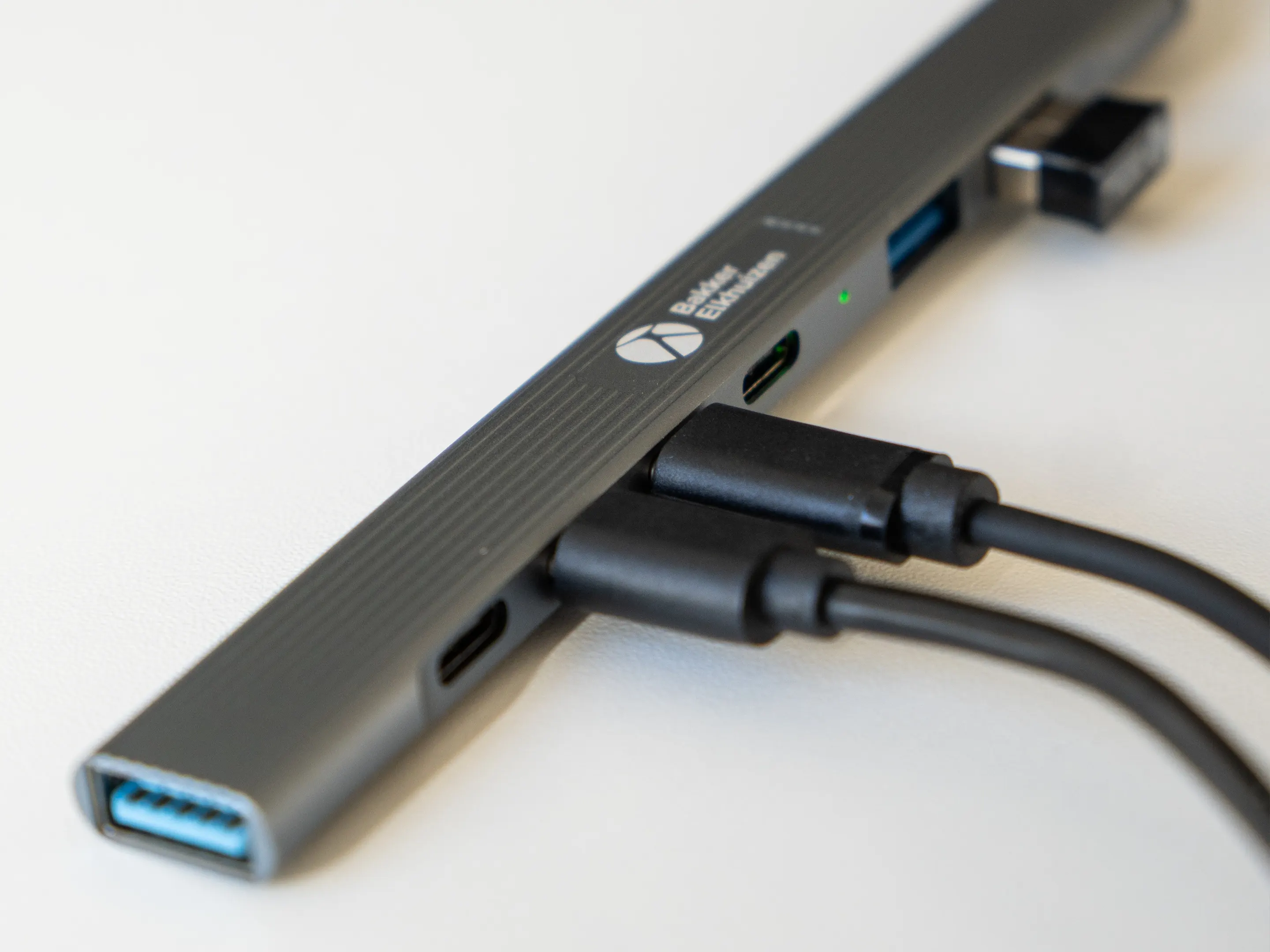 USB-hub met 4x USB-C 480 Mbps-poorten, 2x USB-A 480 Mbps-poorten en 1x USB-A USB 3.0, 5 Gbps-poort voor snelle transfers via SSD of harde schijf.