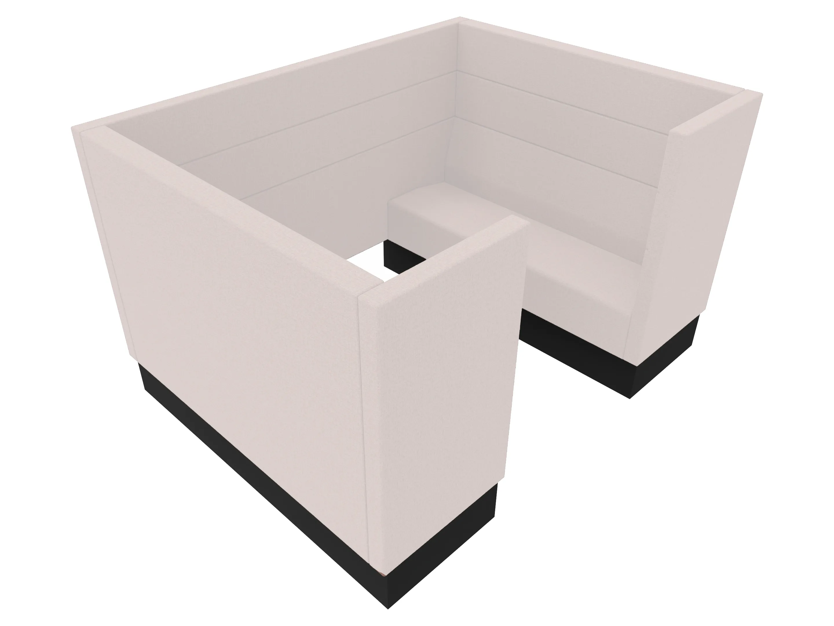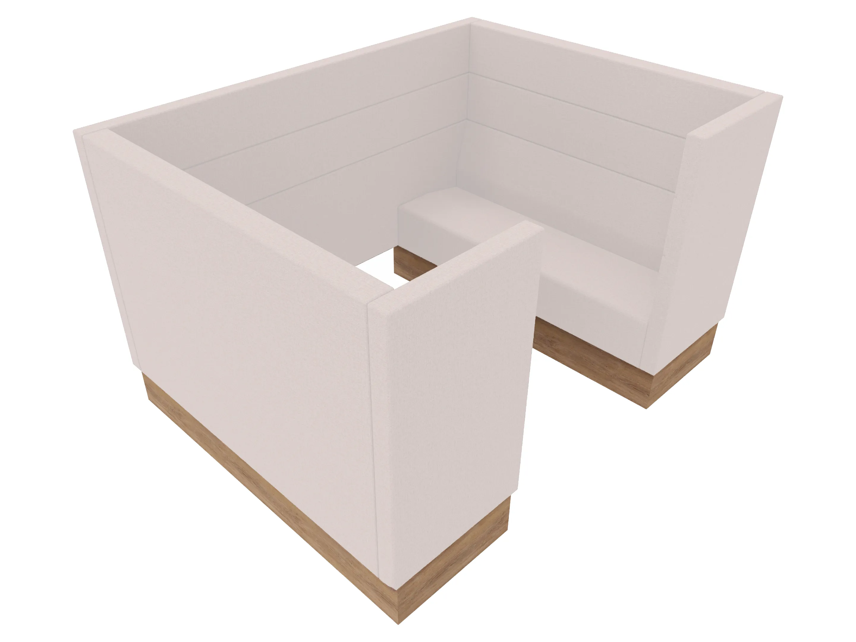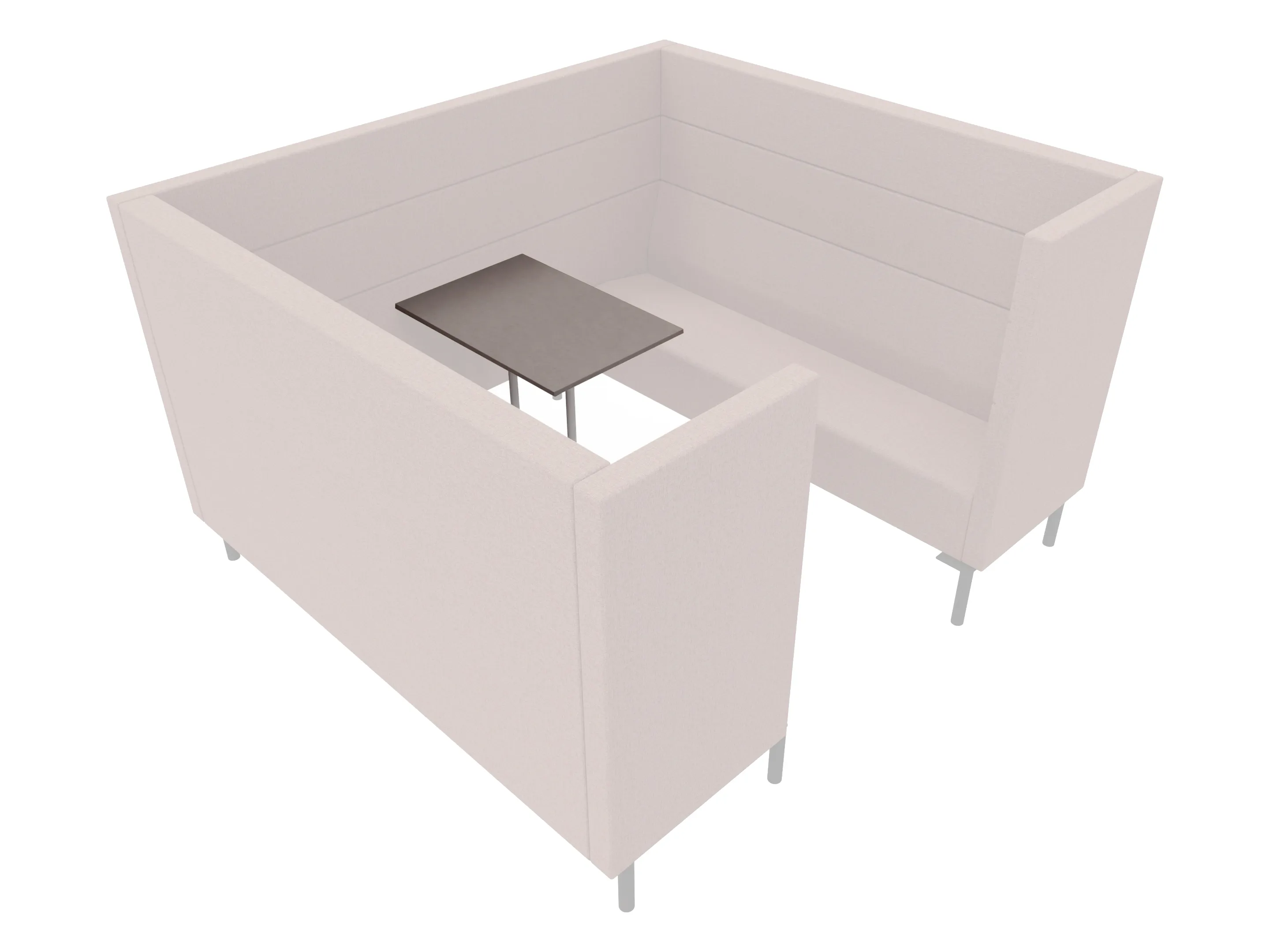 Volledig gestoffeerde POD met 2x 2-zits bank tegenover elkaar met extra hoge ombouw aan de zijkanten en achterkant op een 8-poots onderstel. 2150 x 1650 x 1280 mm (B x D x H). Excl. tafel. Deze moet los worden bijbesteld.