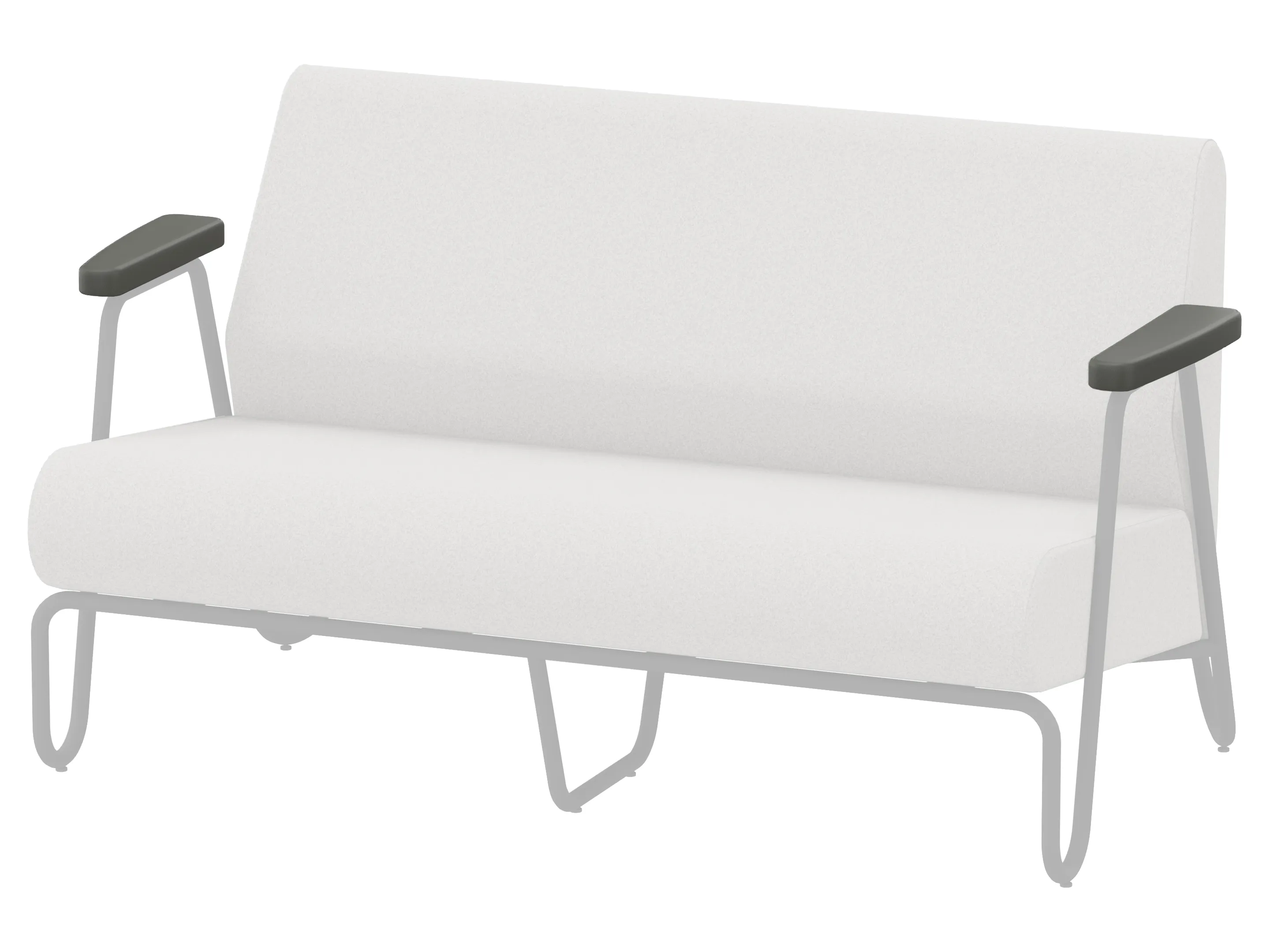 Volledig gestoffeerde 2-zits bank op een doorlopend 5-poots draadframe. Incl. armleuningen. Afmeting: 790 x 805 x 780mm (B x D x H). Zithoogte 420mm.