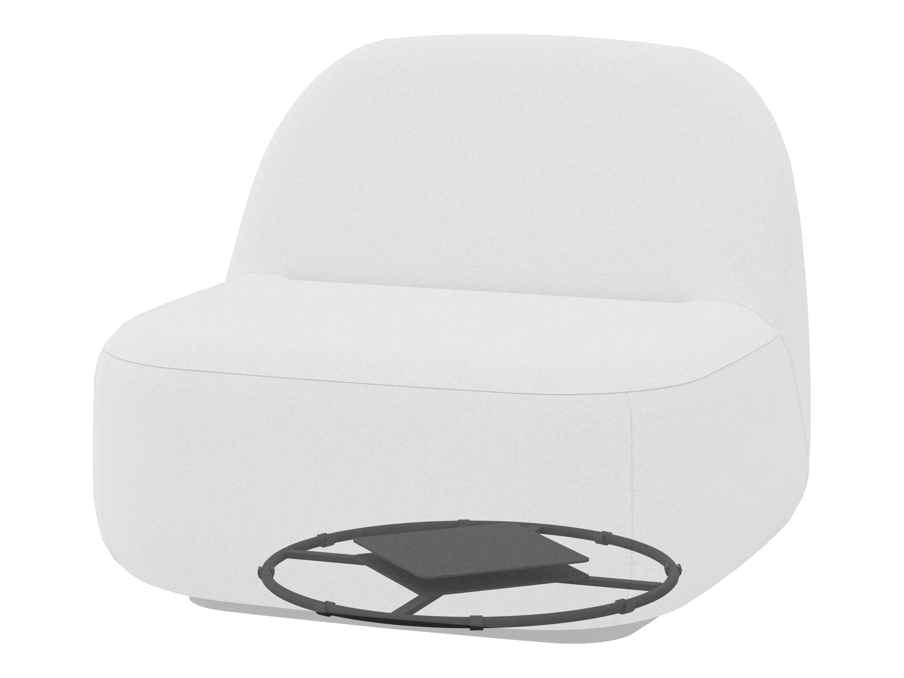 Volledig gestoffeerde poef met tafelblad. Afmeting: 890 x 890 x 365mm (B x D x H).