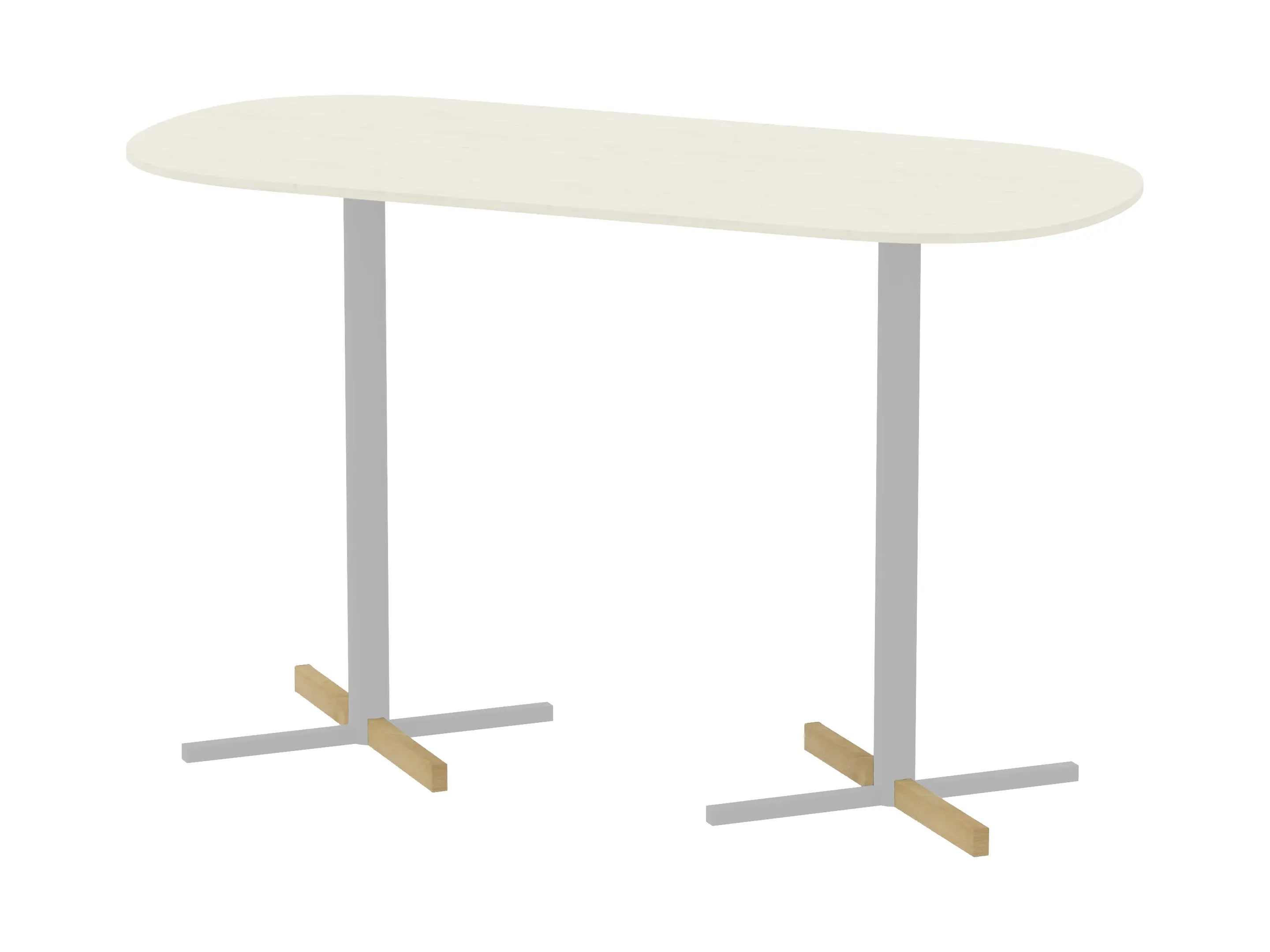 Ovale statafel op 2 4-teens kruizen. Afmeting: 1800 x 800 x 1100mm (B x D x H).
