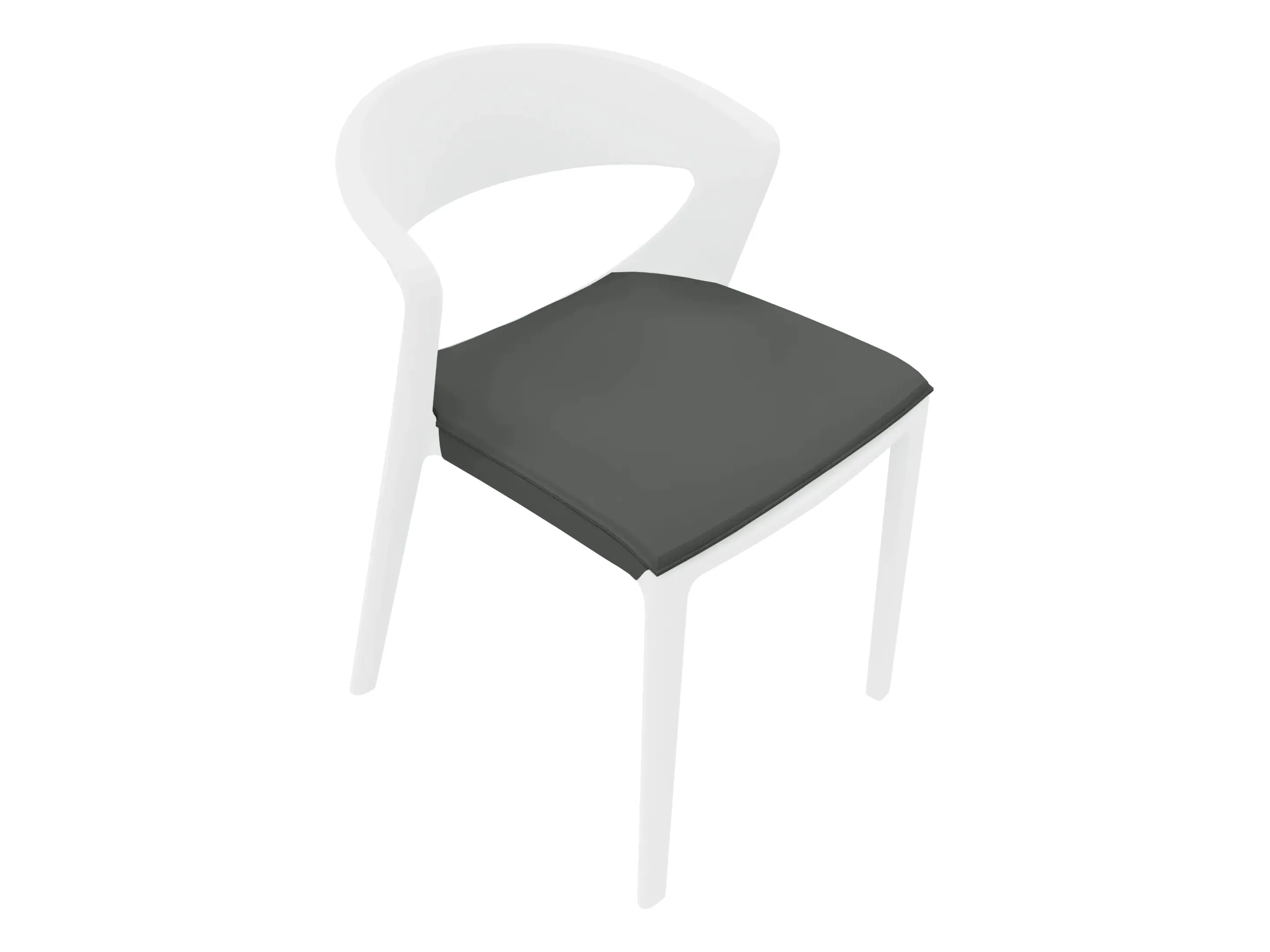 Stoel van monoblock gekleurd glasvezelversterkt polypropyleen op een 4-poots frame. Stapelbaar tot 10 stuks zonder trolley en tot 12 stuks op trolley.