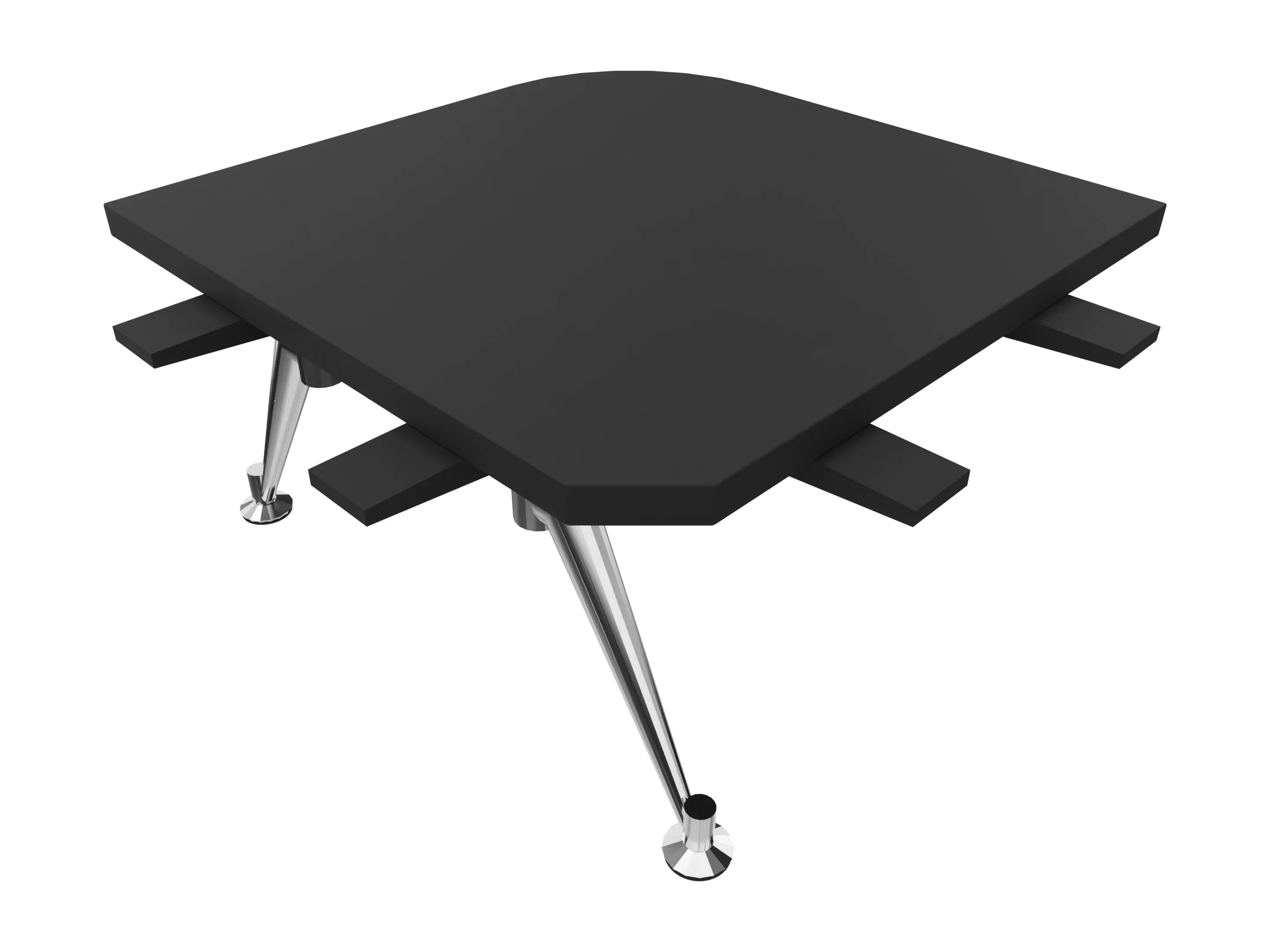 Vierkant tafelblad om in de hoek van een hoekopstelling te plaatsen met behulp van koppelplaatjes. Incl. 2 koppelplaatsen en 2 aluminium gepolijste poten. Koppelplaatjes moeten los worden bijbesteld.