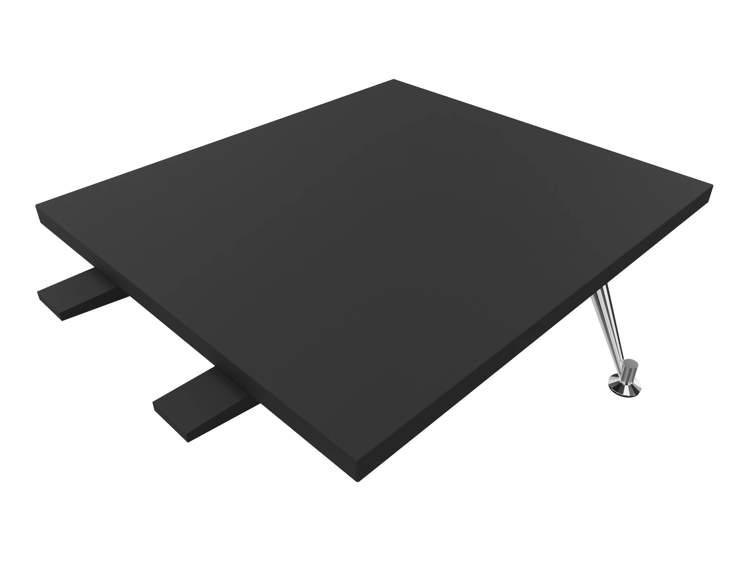 Vierkant tafelblad om in de hoek van een hoekopstelling te plaatsen met behulp van koppelplaatjes. Incl. 2 koppelplaatsen en 2 aluminium gepolijste poten. Koppelplaatjes moeten los worden bijbesteld.