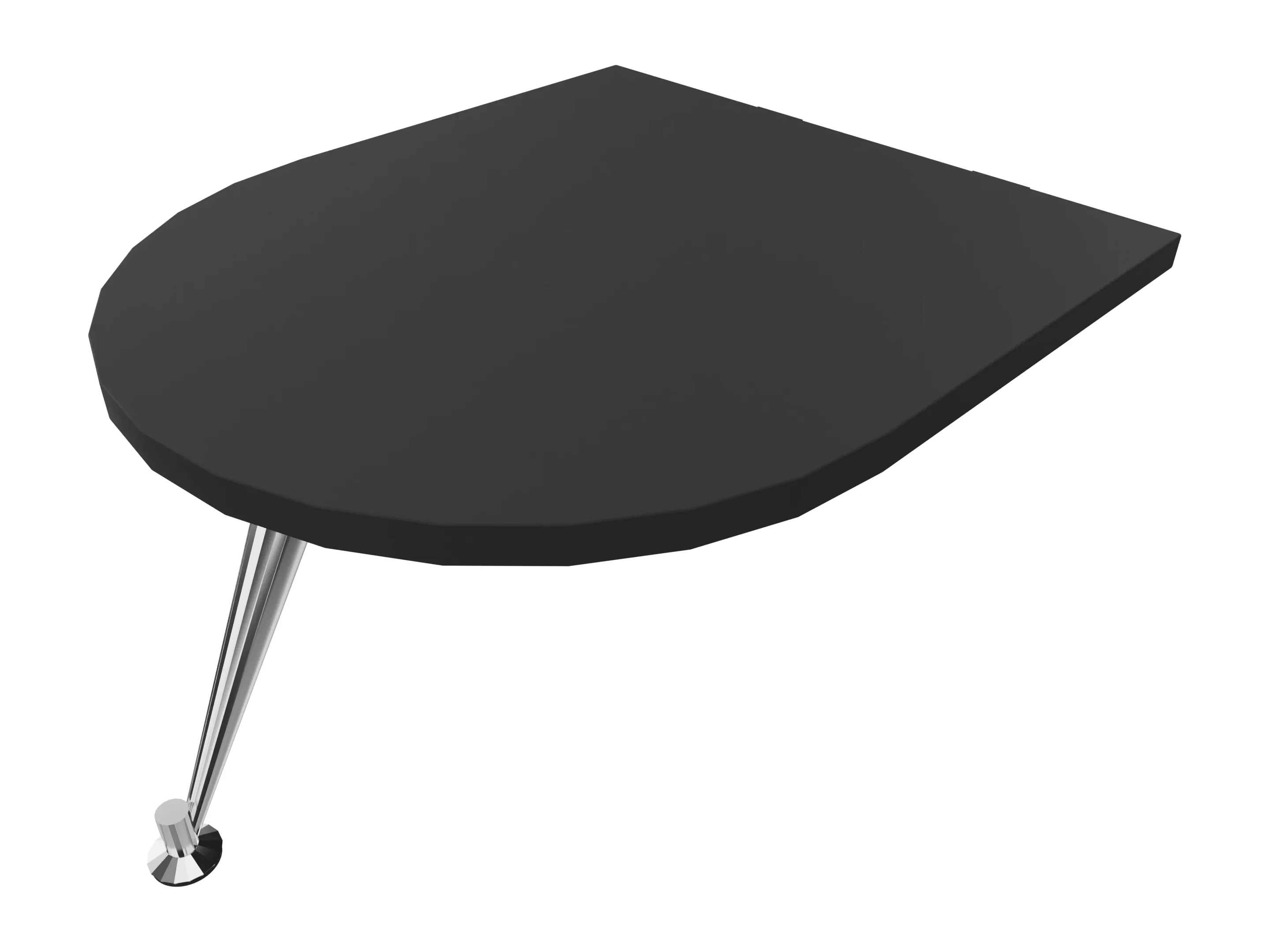 Semi-ovaal tafelblad van 600mm breed om als eindelement te plaatsen met behulp van een koppelplaatje. Inclusief 1 koppelplaats en 1 aluminium gepolijste poot. Koppelplaatje moet los worden bijbesteld.