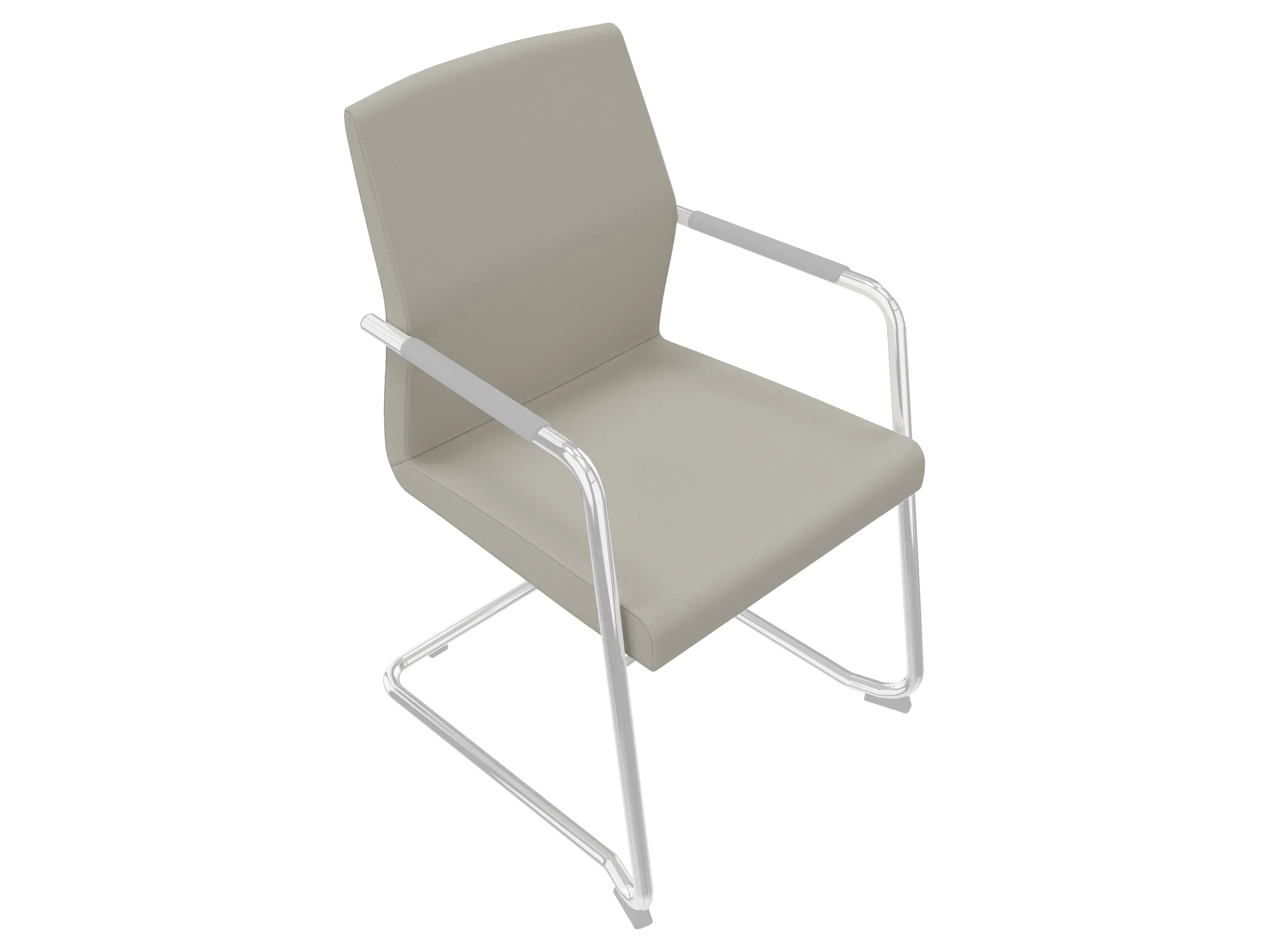 Volledig gestoffeerde vergaderstoel met armleggers met beklede pad op een sledeframe. Stapelbaar.