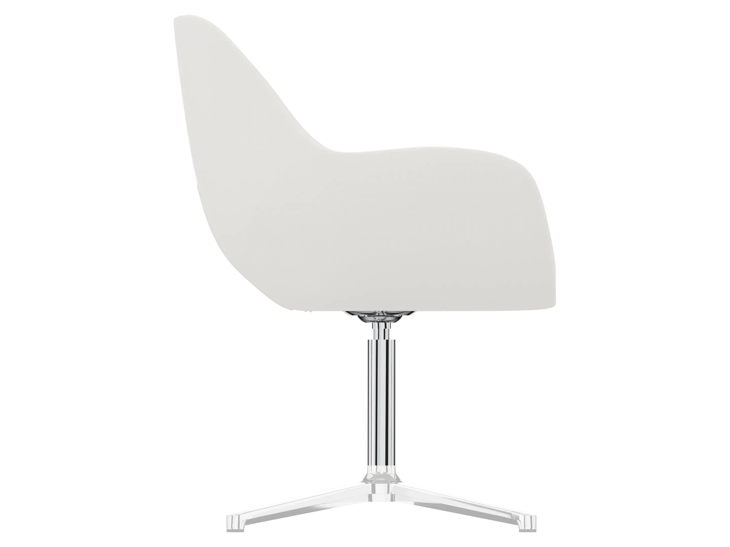 Volledig gestoffeerde fauteuil op een 4-teens kruis. Draaibaar.