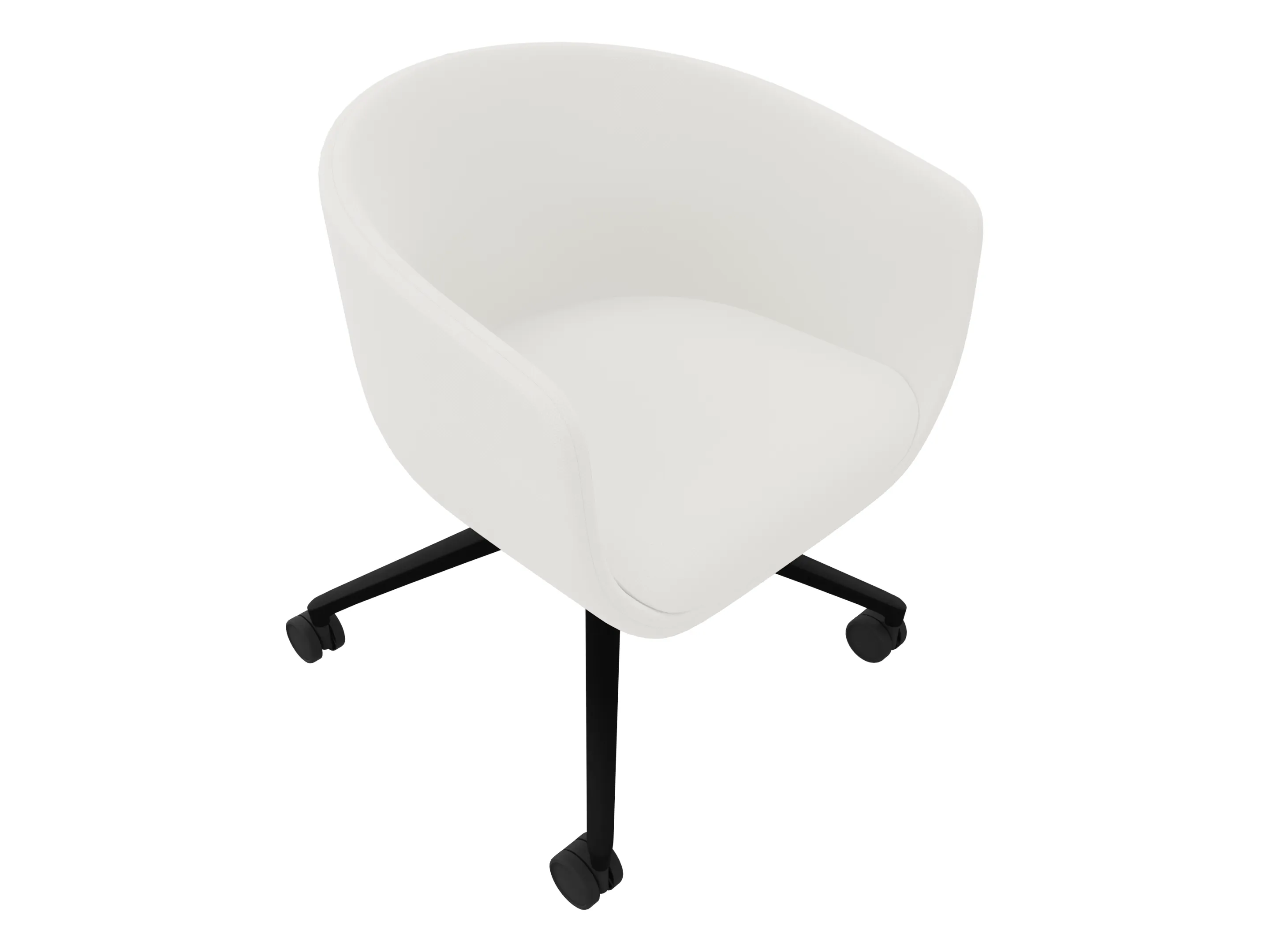 Volledig gestoffeerde fauteuil op een 4-teens kruis op glijders met draaifunctie.
